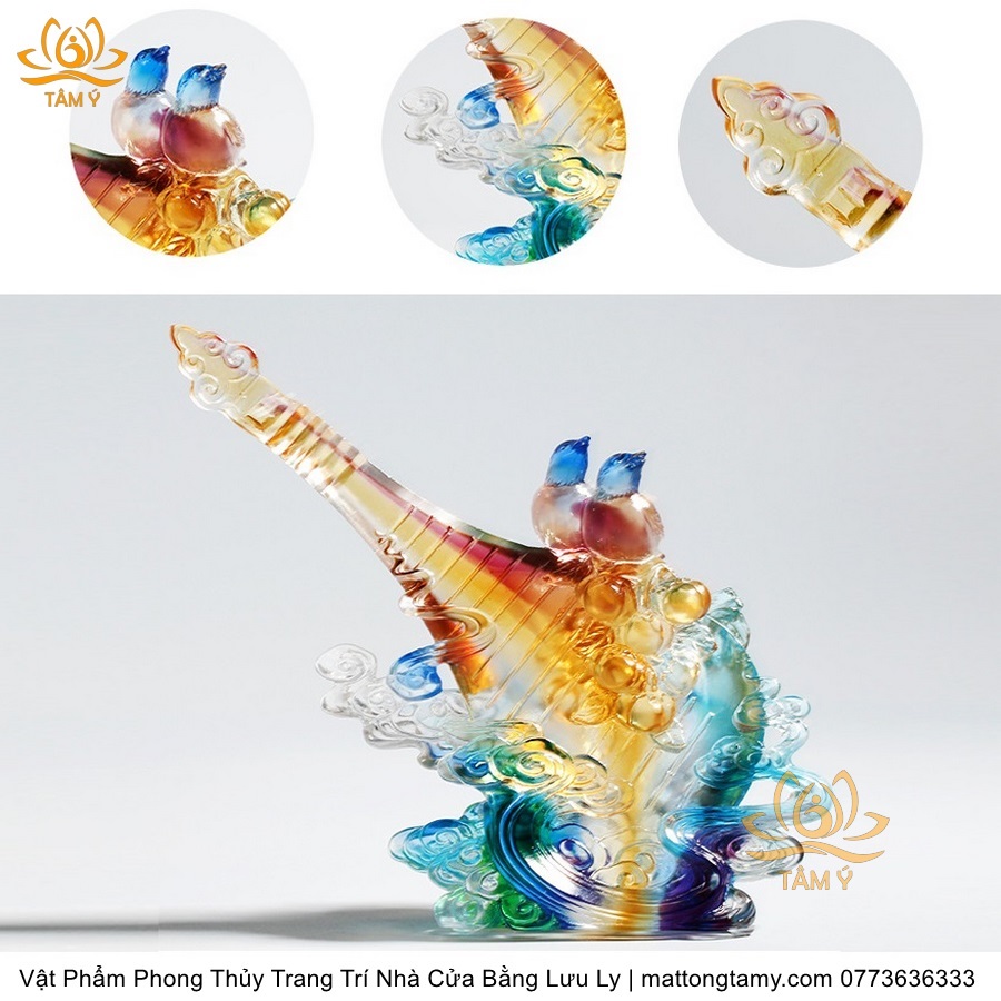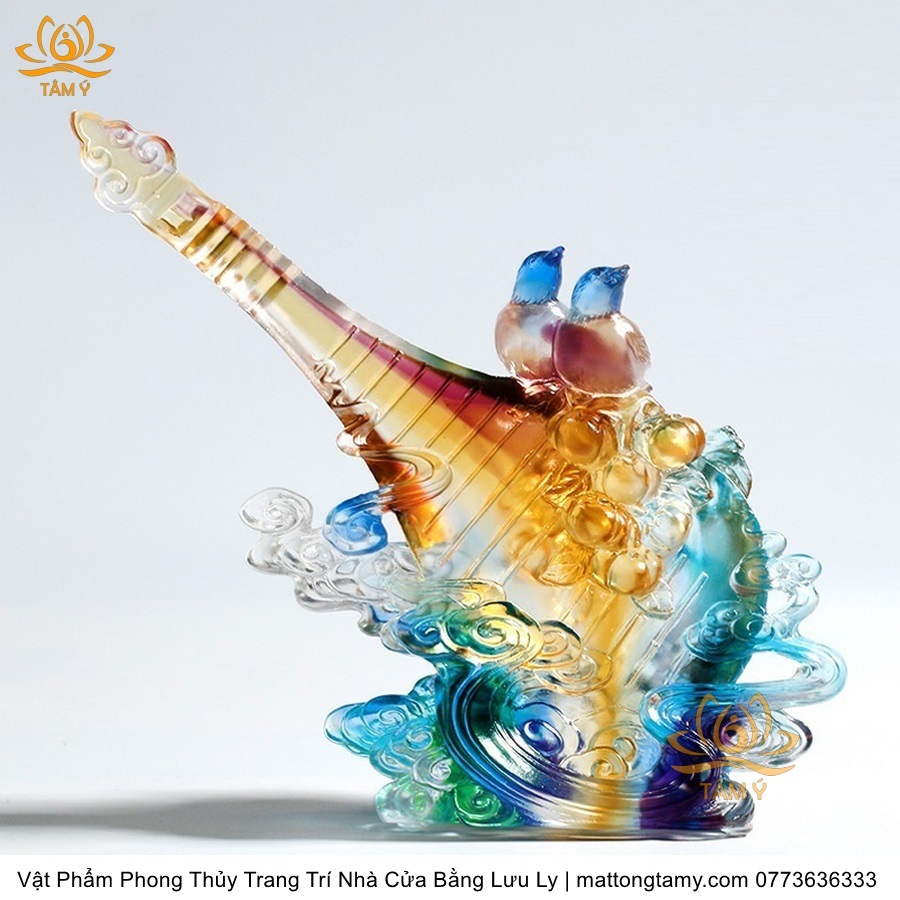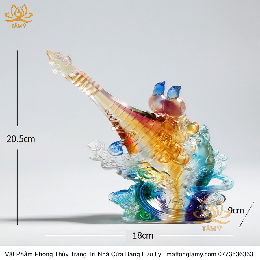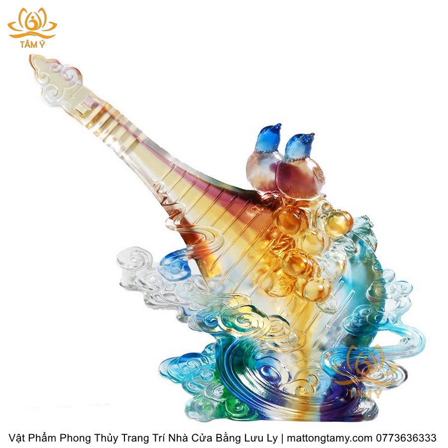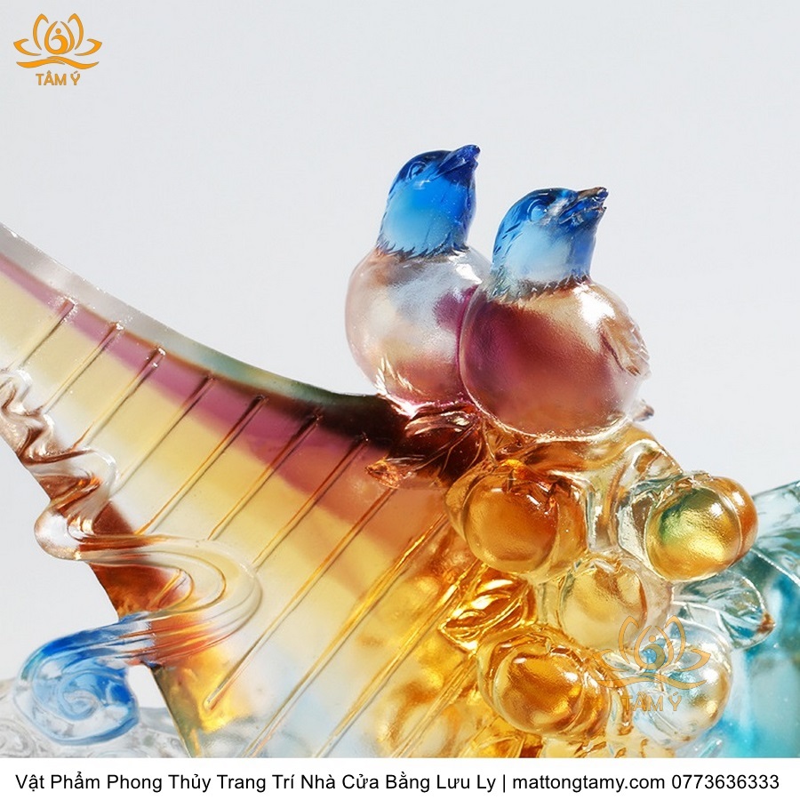 Tượng Dạng Bình Ngũ Sắc Khắc Đôi Chim Uyên Ương Bằng Lưu Ly Cao Cấp Vật Phẩm Phong Thủy Trang Trí Nhà Cửa DTT98