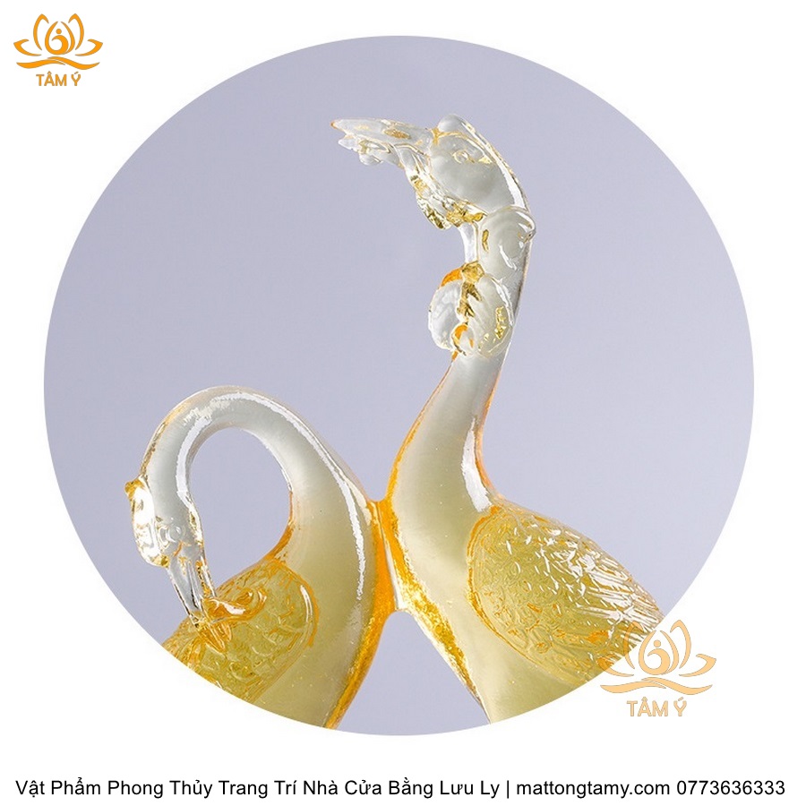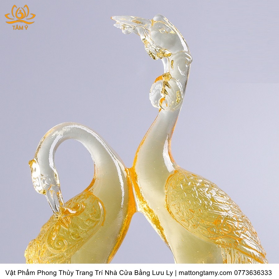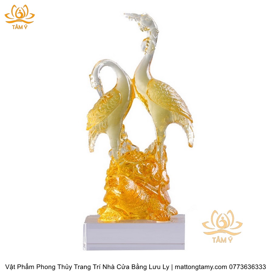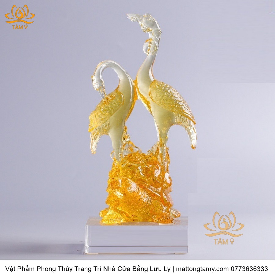 Tượng Đôi Chim Hồng Hạc Bằng Lưu Ly Cao Cấp Vật Phẩm Phong Thủy Trang Trí Nhà Cửa , DTT163