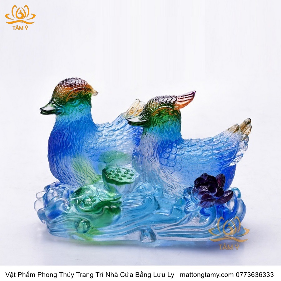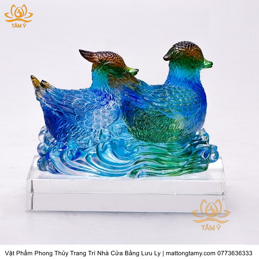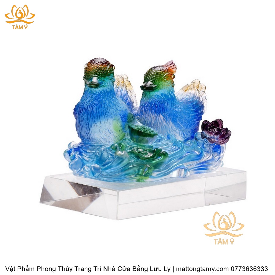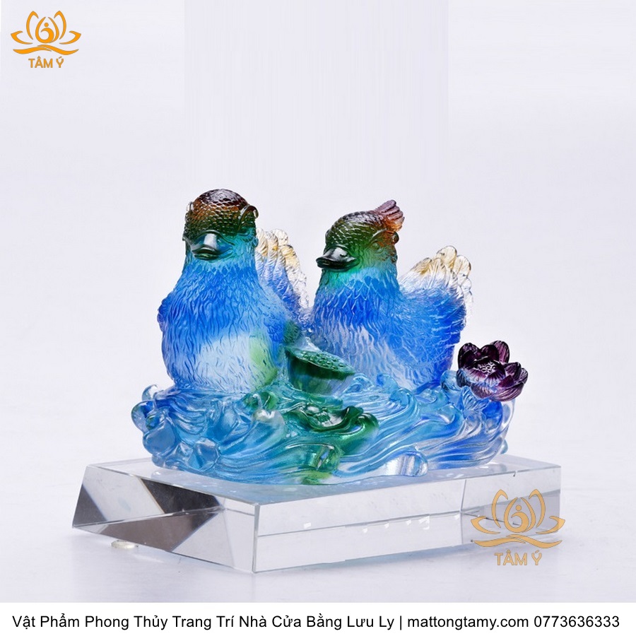 Tượng Đôi Chim Uyên Ương Trên Tổ Bằng Lưu Ly Cao Cấp Phong Thủy Trang Trí Nhà Cửa , DTT207
