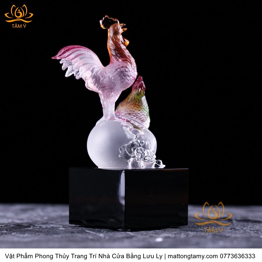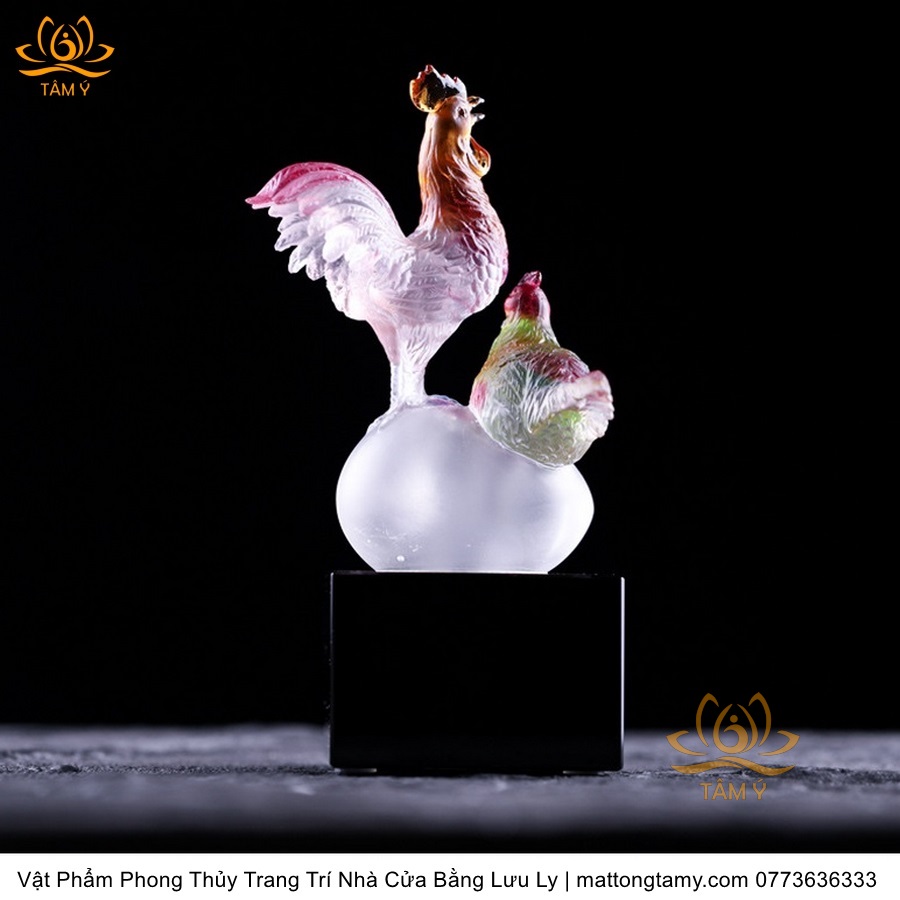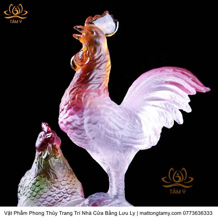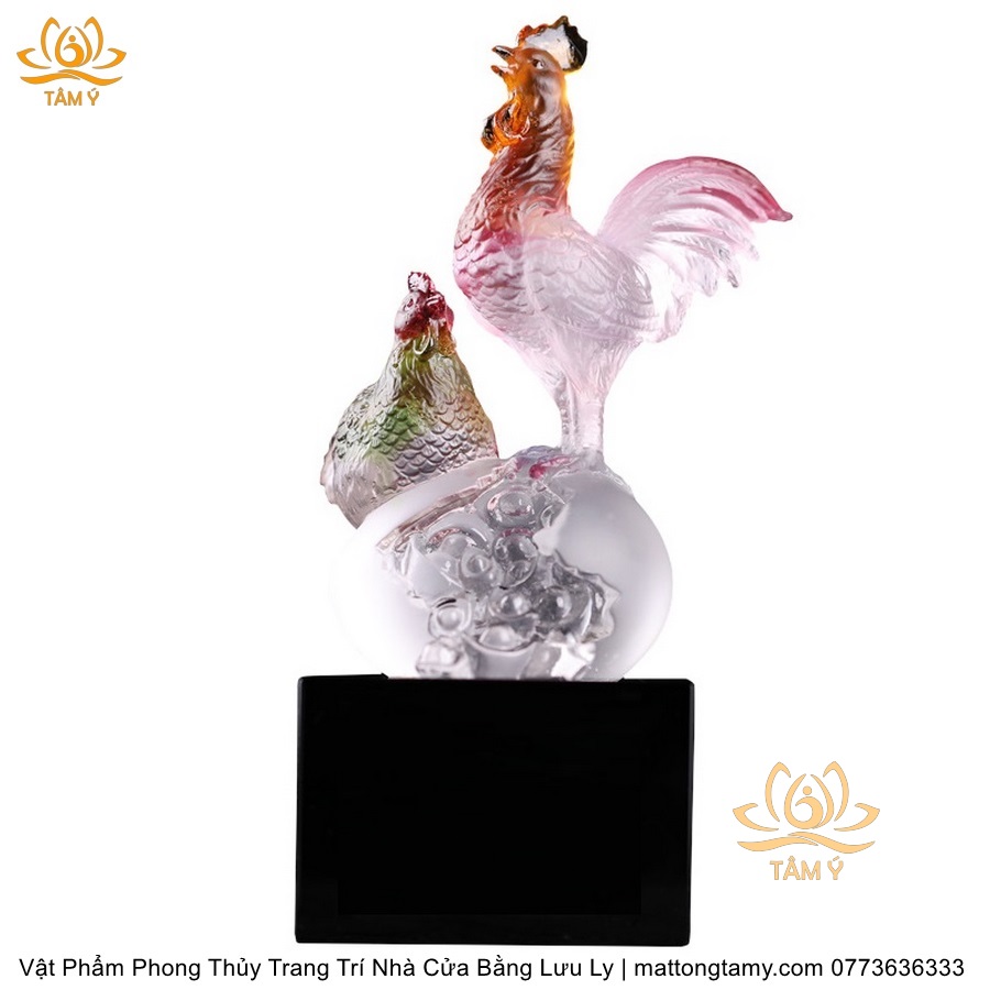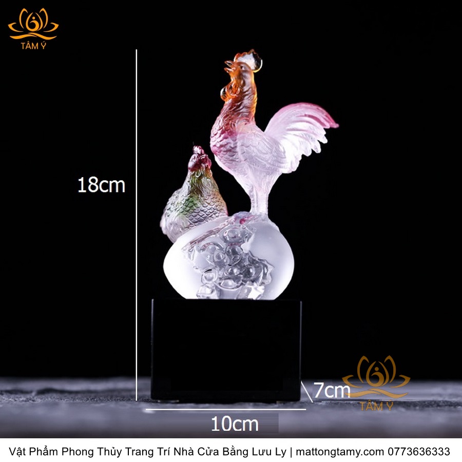 Tượng Đôi Gà(Dậu) Trống - Mái Bằng Lưu Ly Cao Cấp Vật Phẩm Phong Thủy Trang Trí Nhà Cửa DTT222