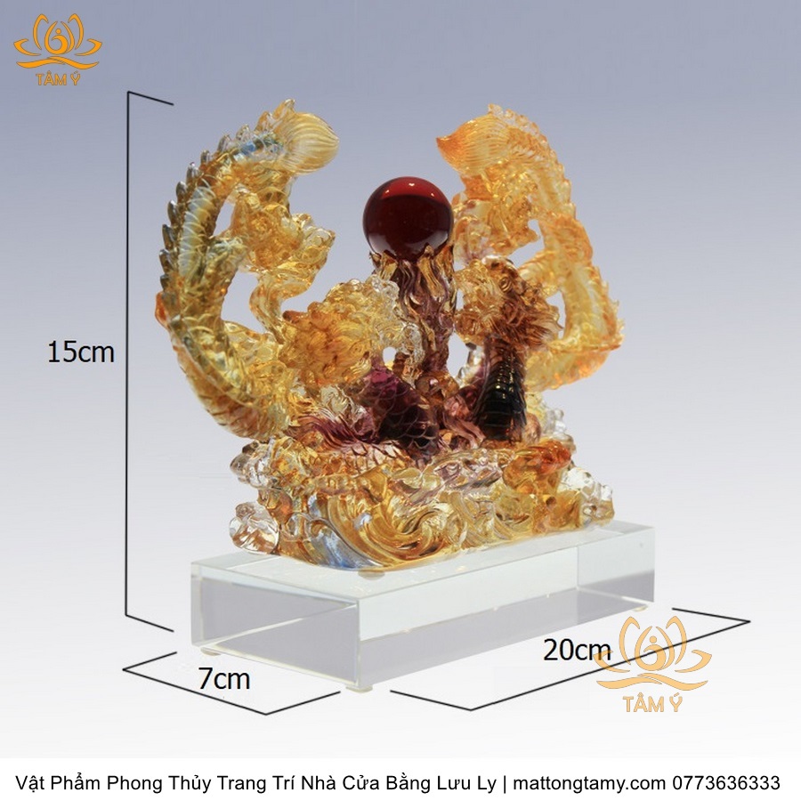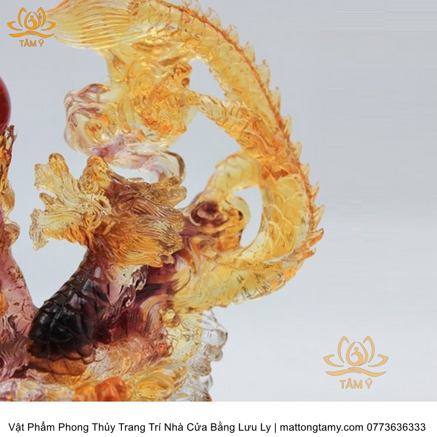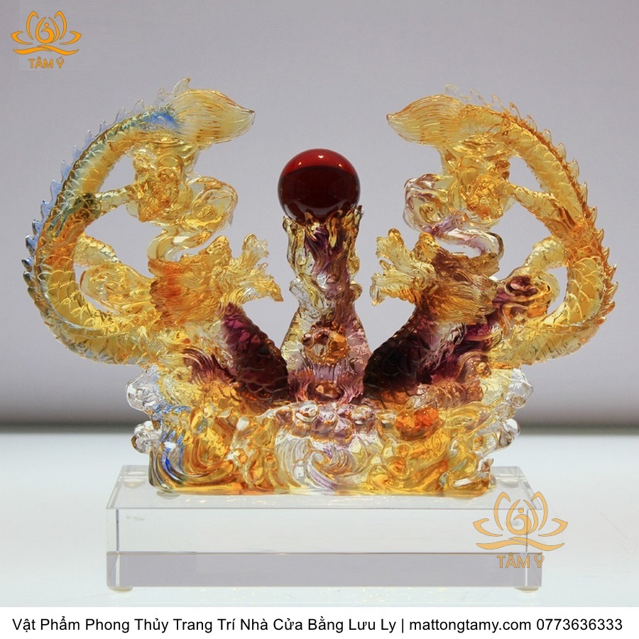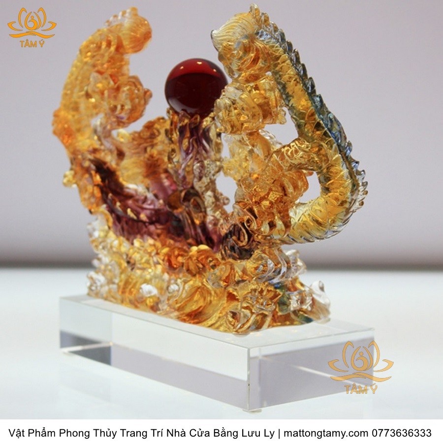 Tượng Đôi Rồng Nâng Ngọc Bằng Lưu Ly Cao Cấp Vật Phẩm Phong Thủy Trang Trí Nhà Cửa DTT76