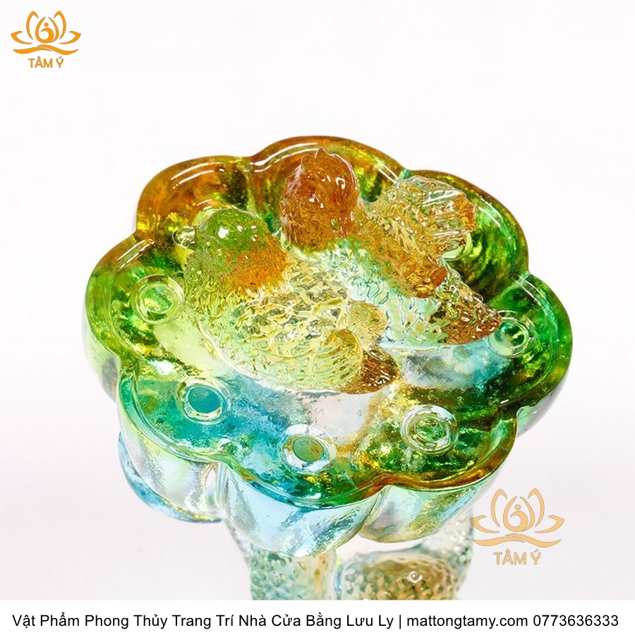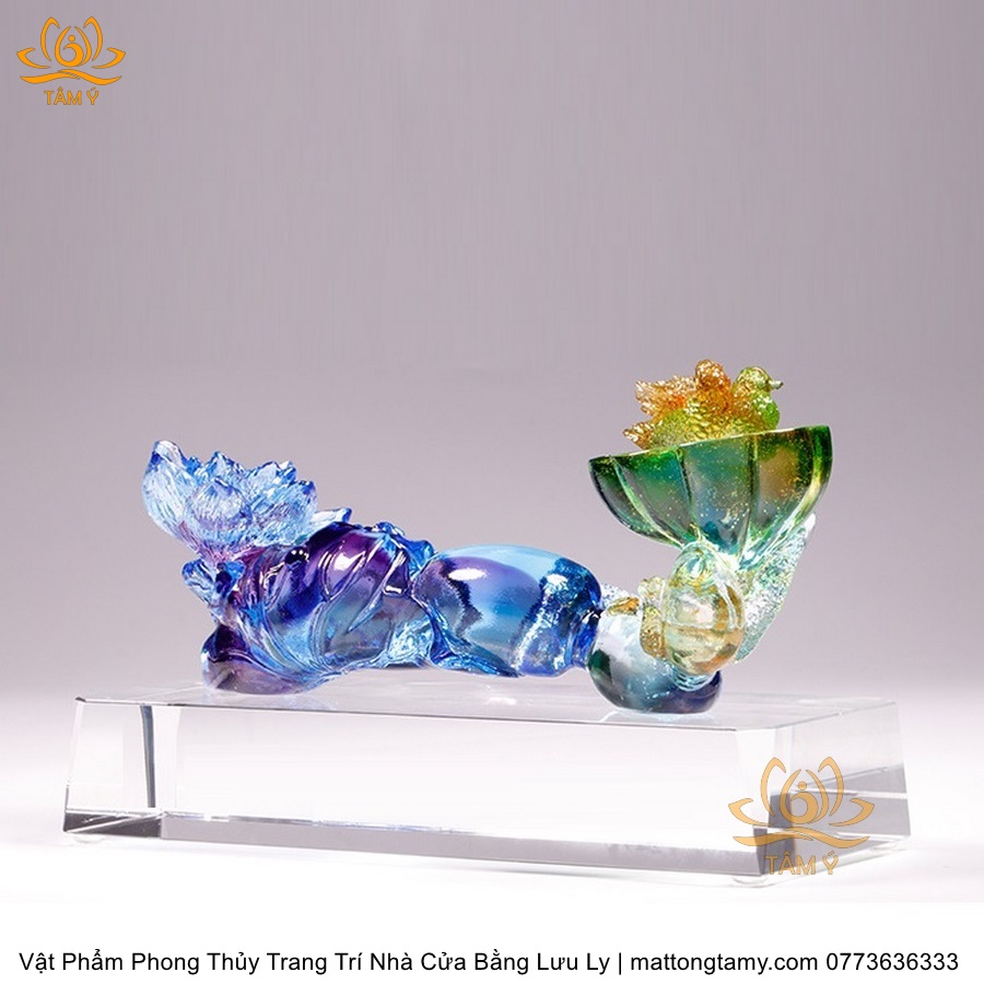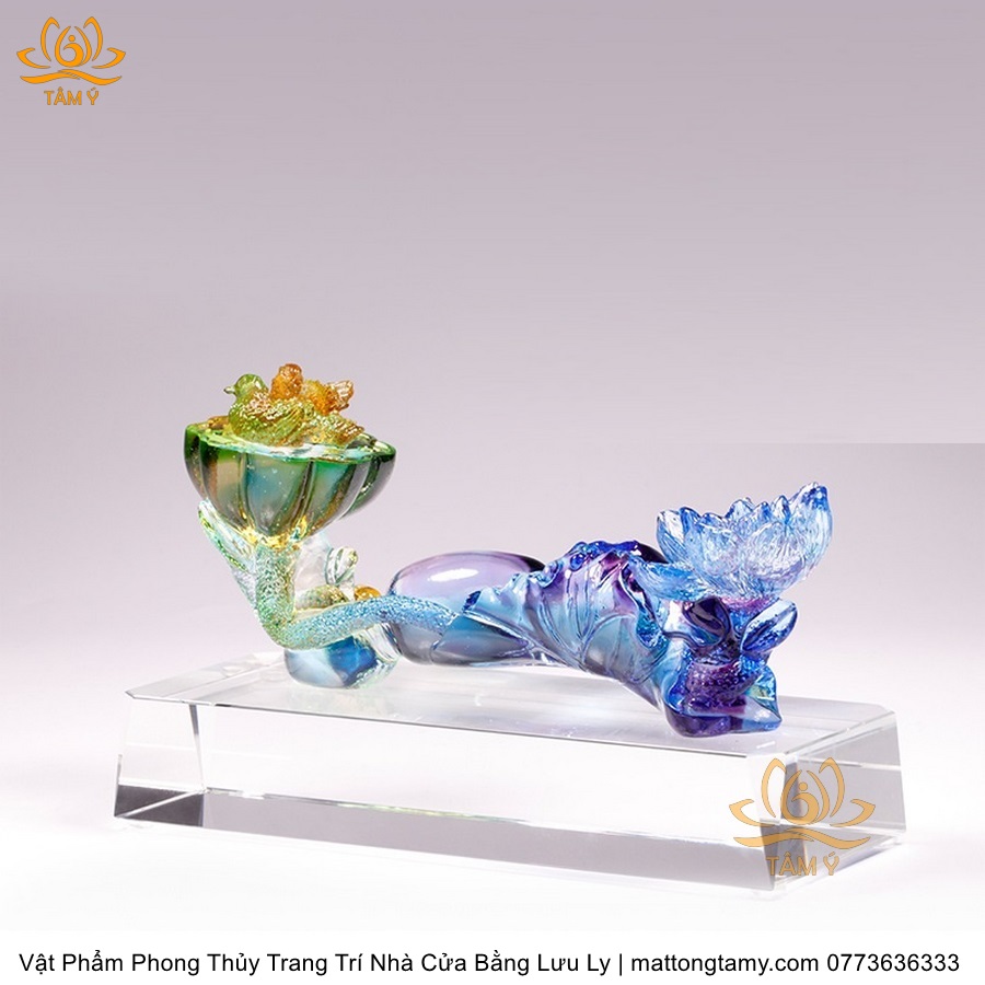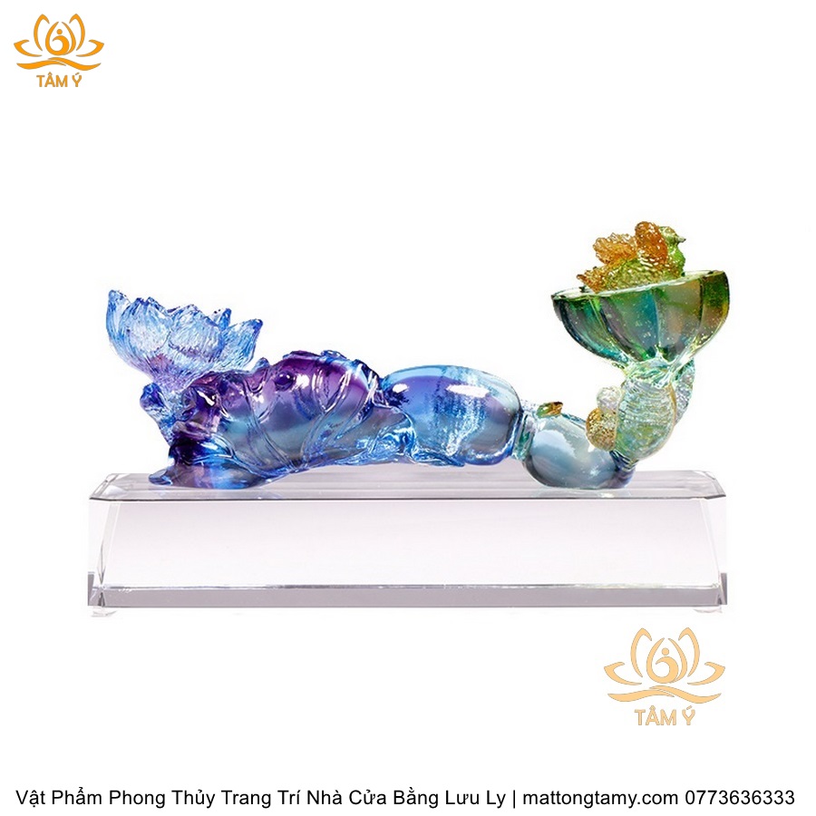 Tượng Gậy Như Ý Hình Hoa Sen Ngũ Sắc Phân Khúc Bằng Lưu Ly Cao Cấp Vật Phẩm Phong Thủy Trang Trí Nhà Cửa DTT266