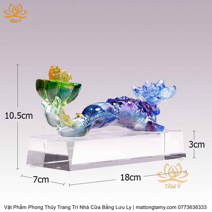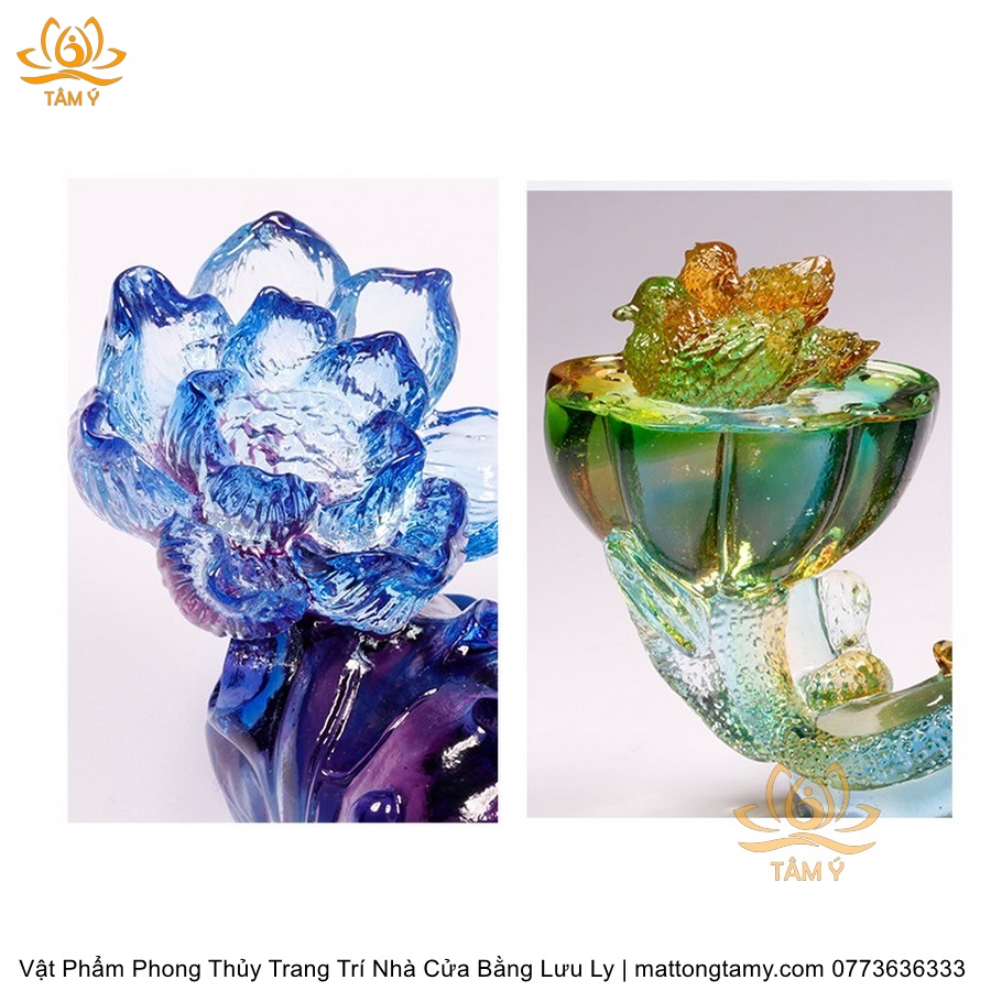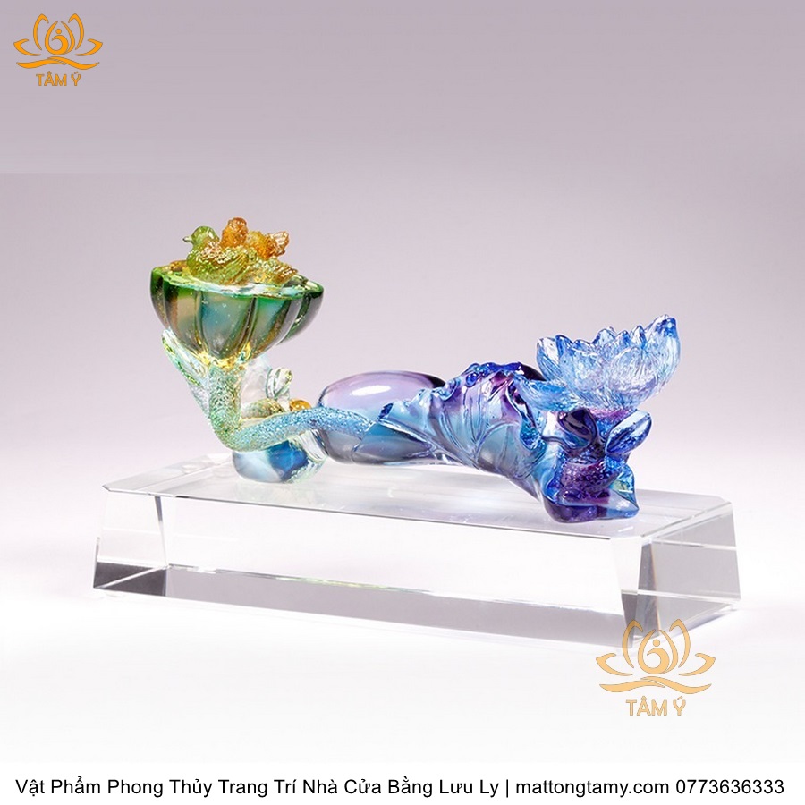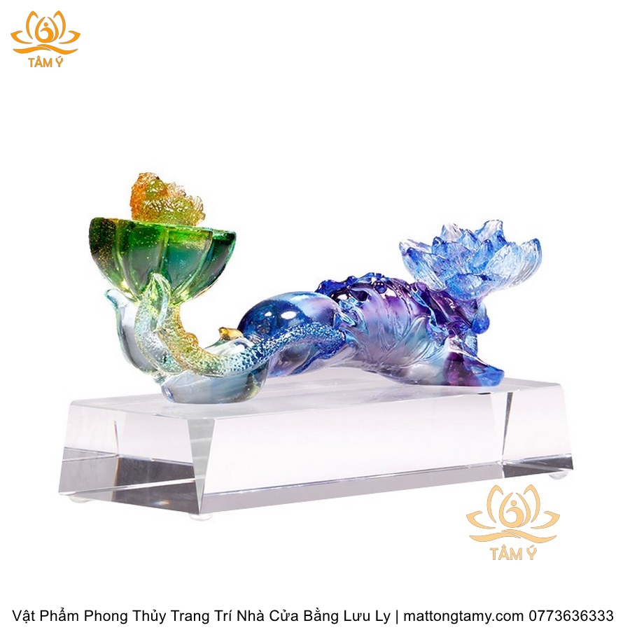 Tượng Gậy Như Ý Hình Hoa Sen Ngũ Sắc Phân Khúc Bằng Lưu Ly Cao Cấp Vật Phẩm Phong Thủy Trang Trí Nhà Cửa DTT266