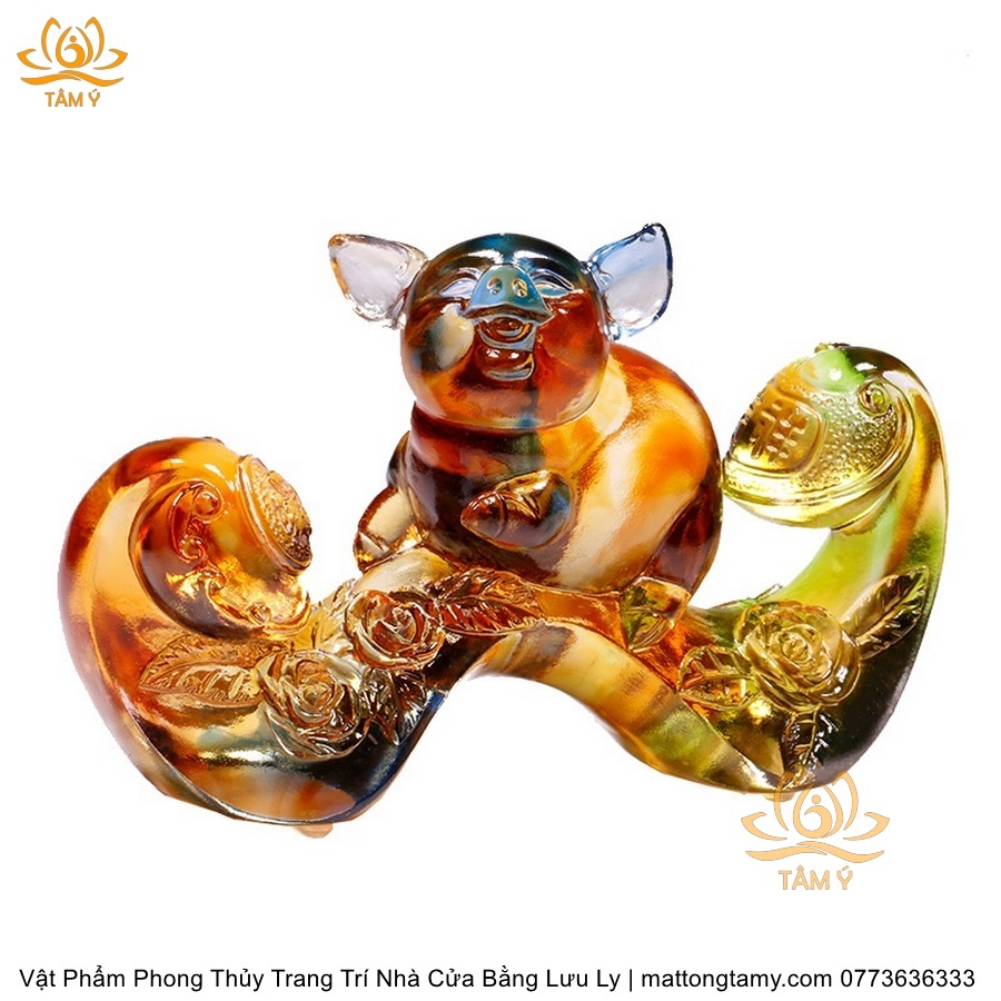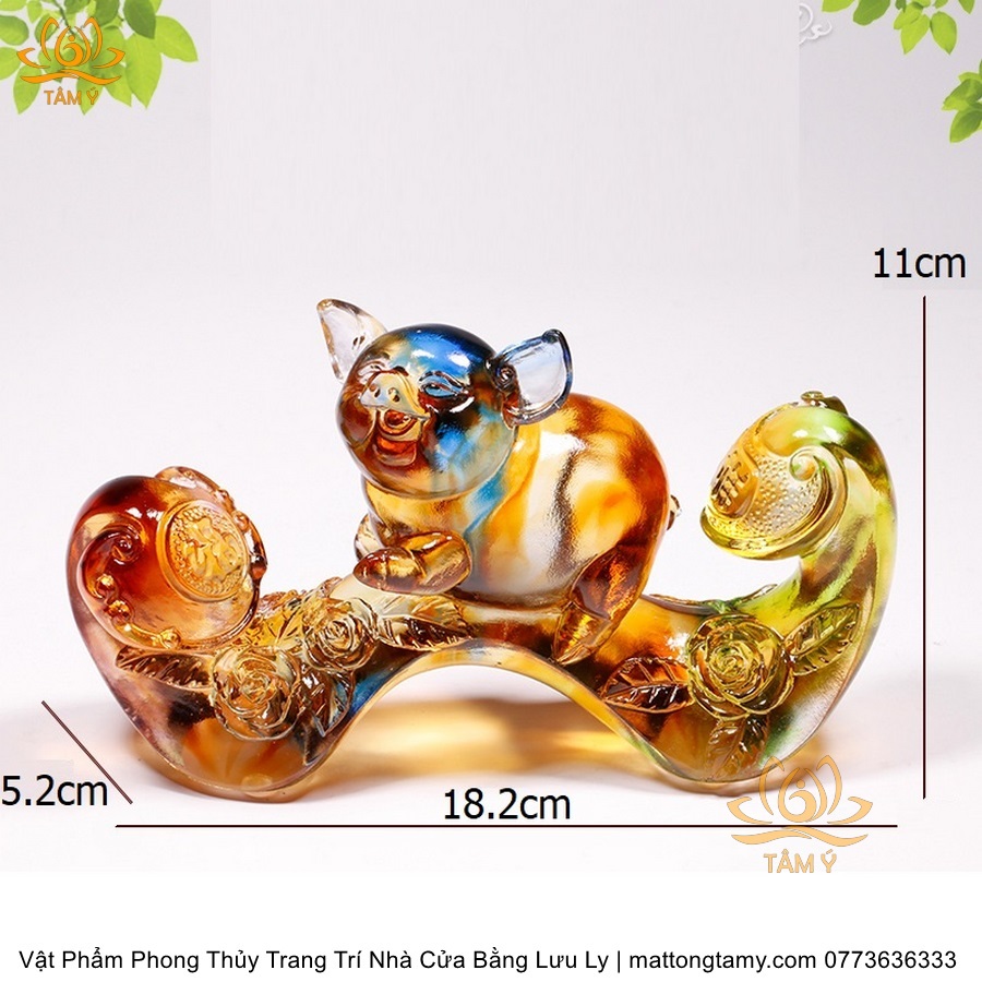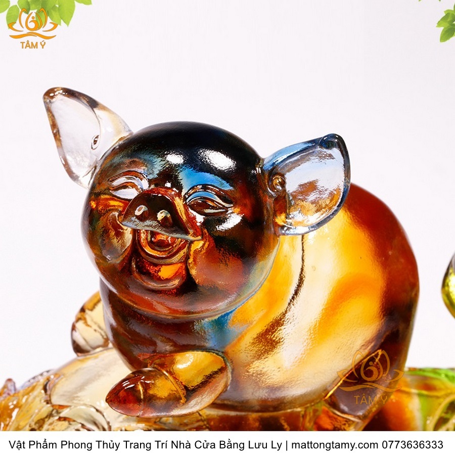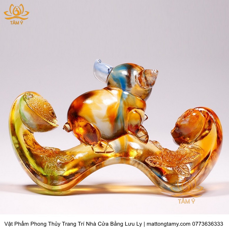 Tượng Gậy Như Ý Khắc Con Heo Đứng Trên Bằng Lưu Ly Cao Cấp Vật Phẩm Phong Thủy Trang Trí Nhà Cửa DTT111