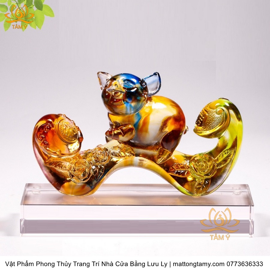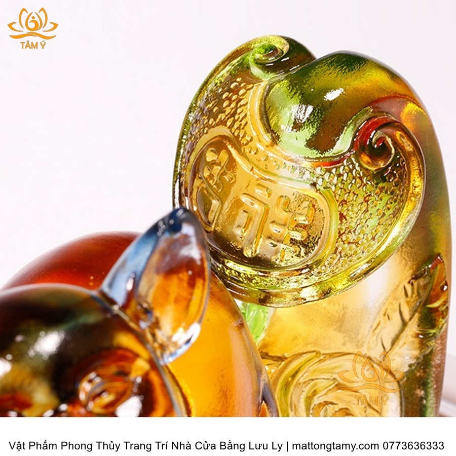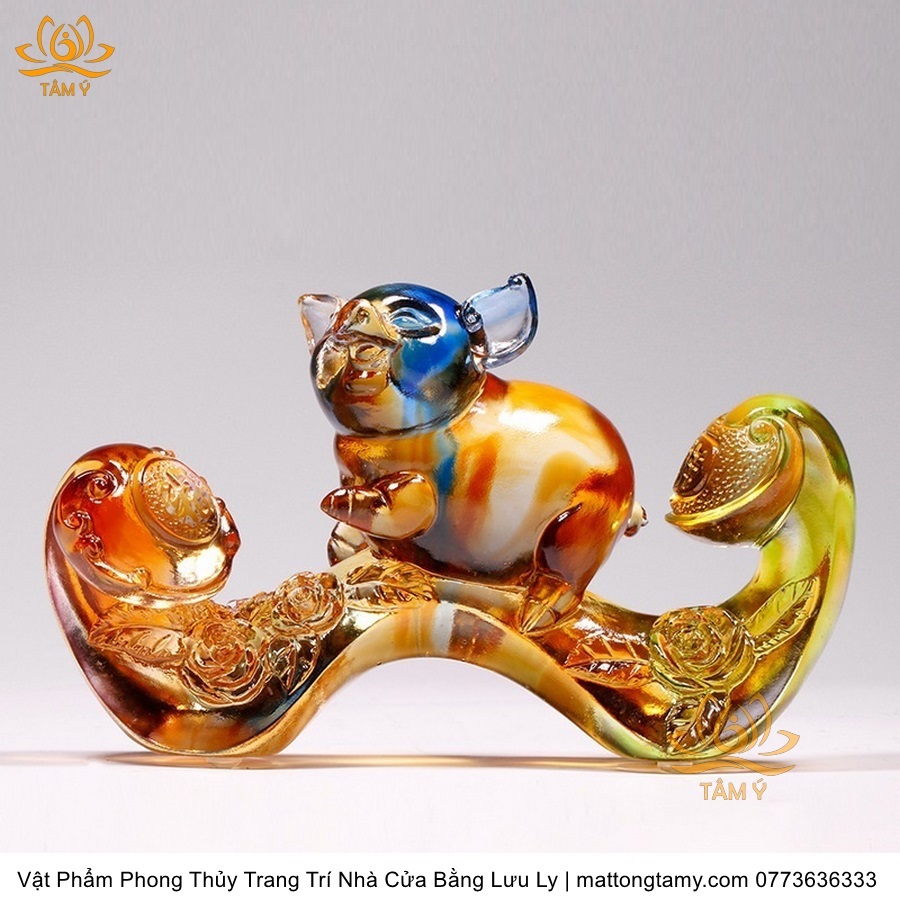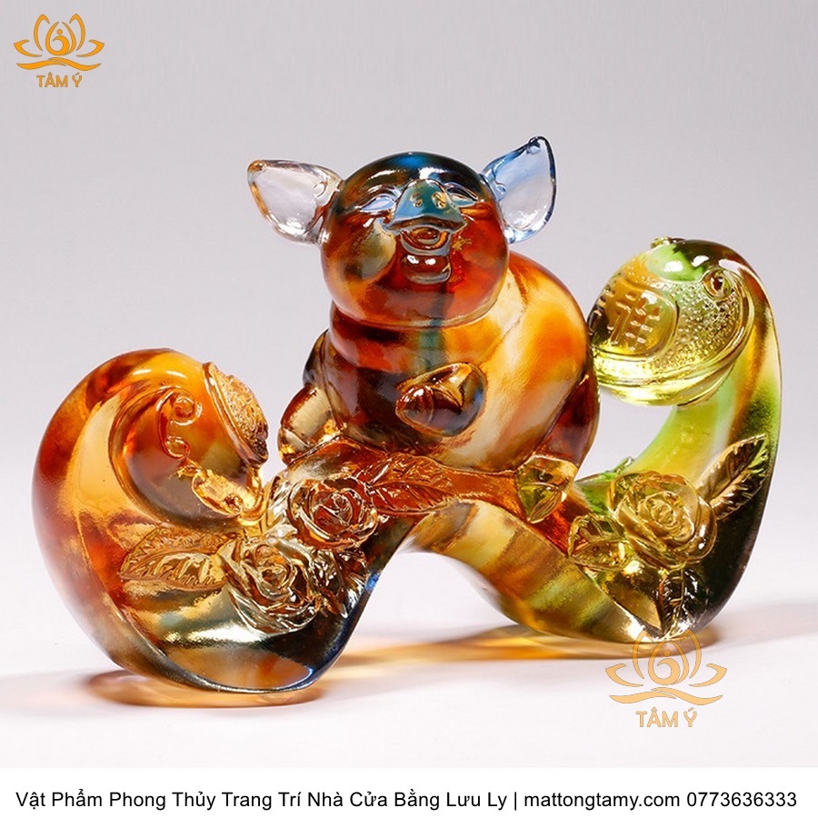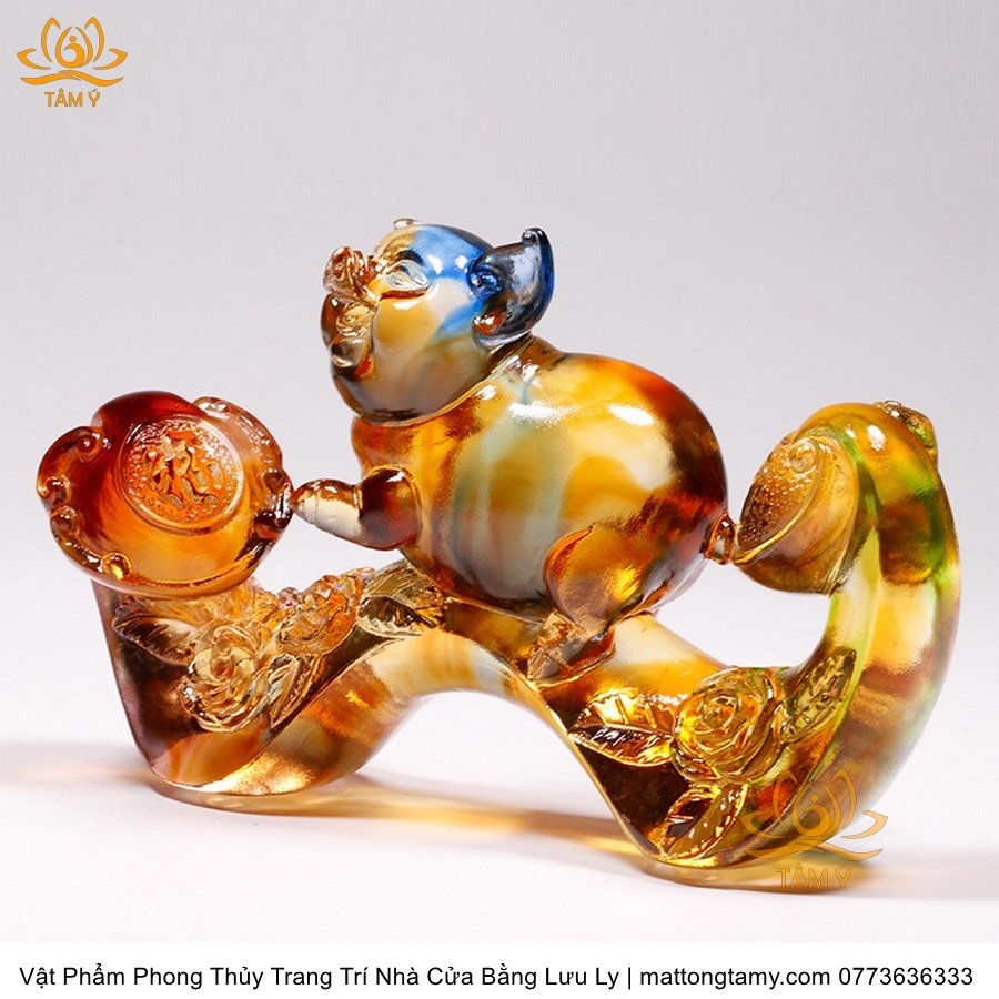Tượng Gậy Như Ý Khắc Con Heo Đứng Trên Bằng Lưu Ly Cao Cấp Vật Phẩm Phong Thủy Trang Trí Nhà Cửa DTT111