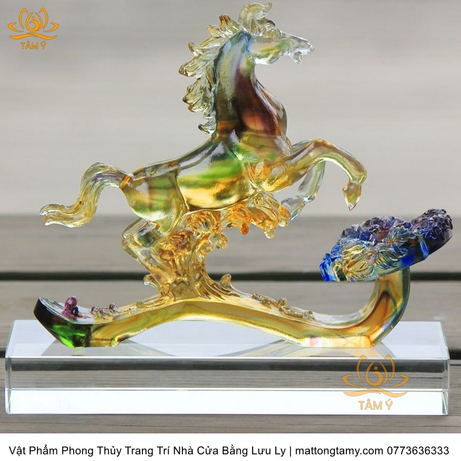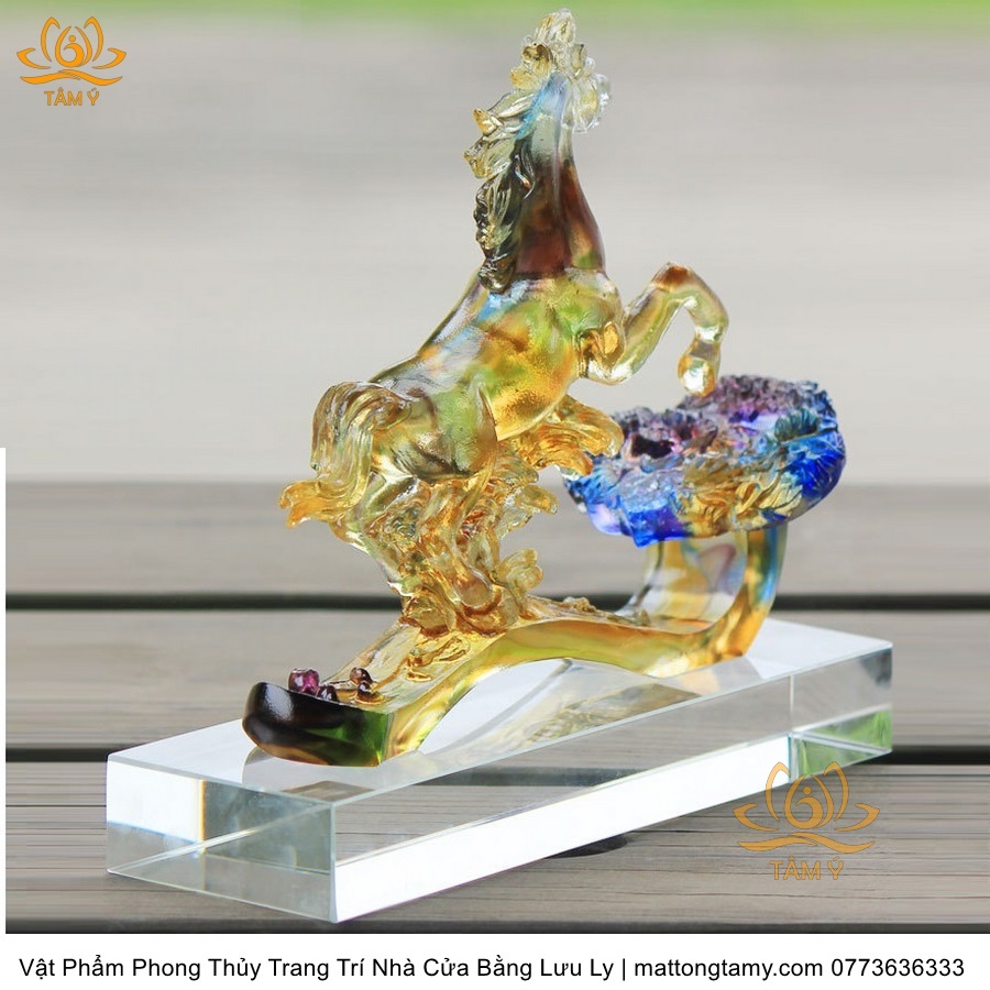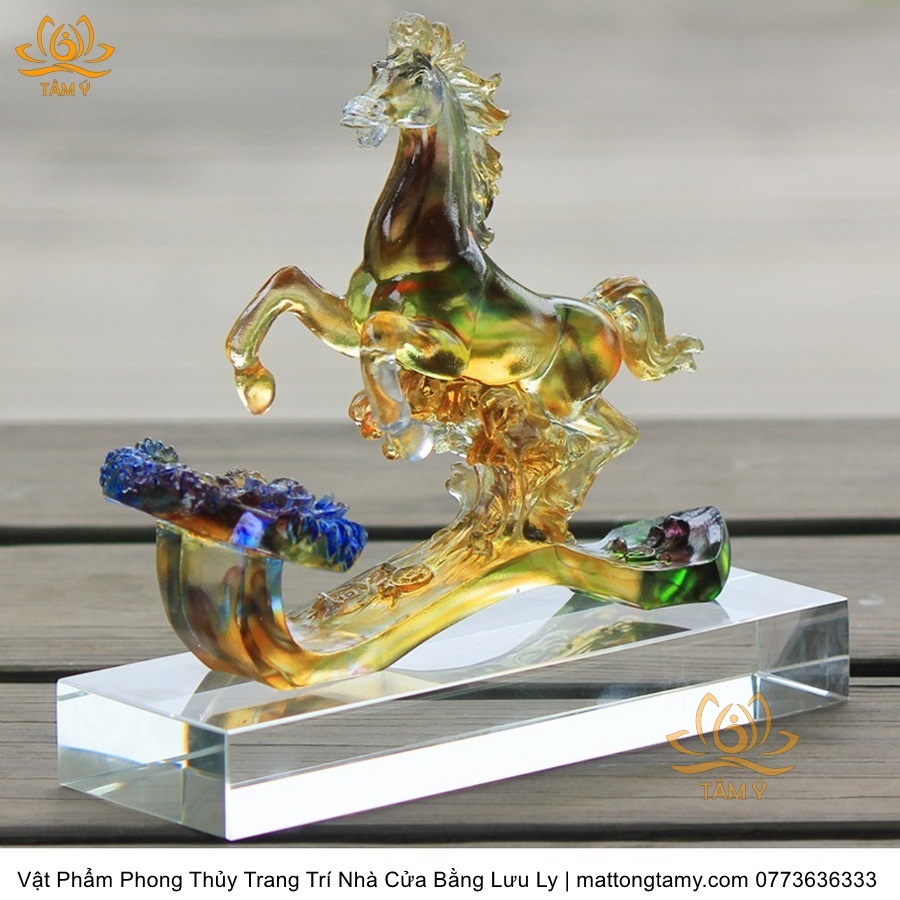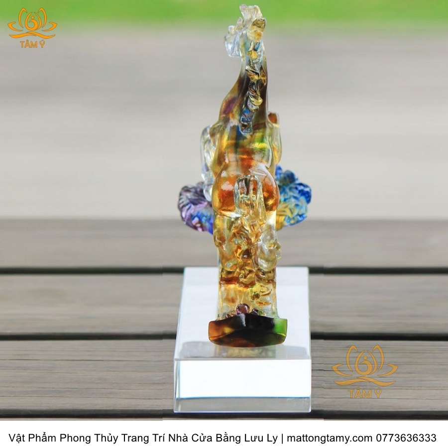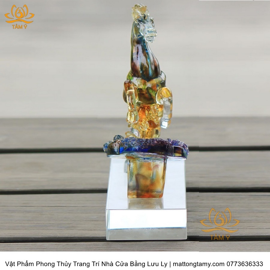 Tượng Gậy Như Ý Khắc Ngựa Quý Bên Trên Màu Ngũ Sắc Vật Phẩm Phong Thủy Trang Trí Nhà Cửa Bằng Lưu Ly Cao Cấp DTT131