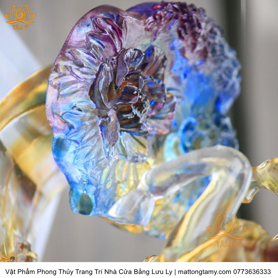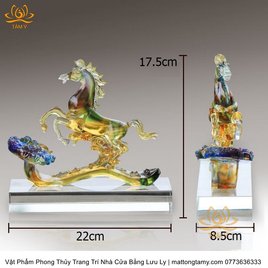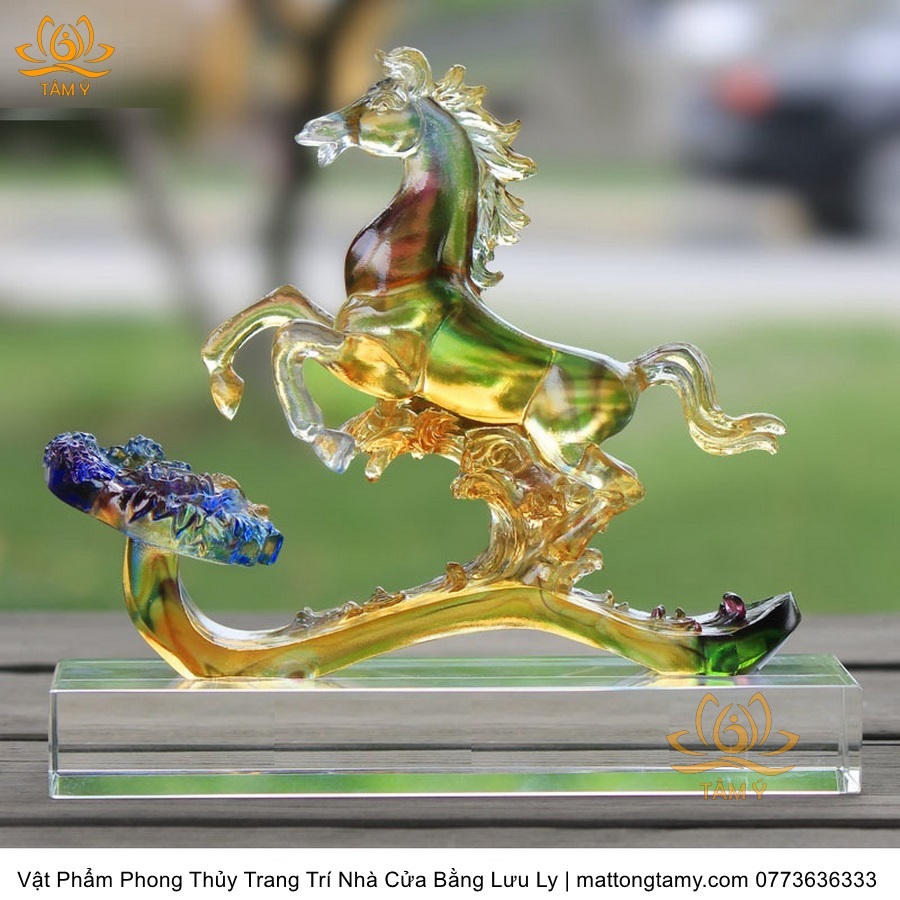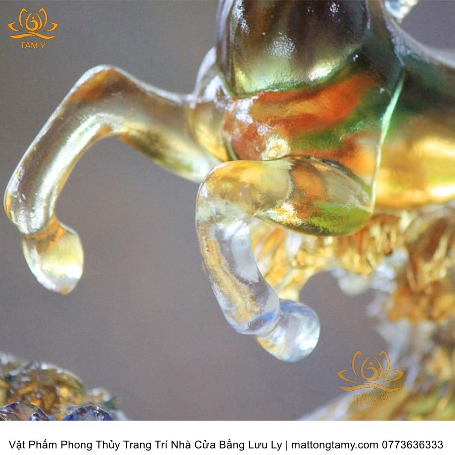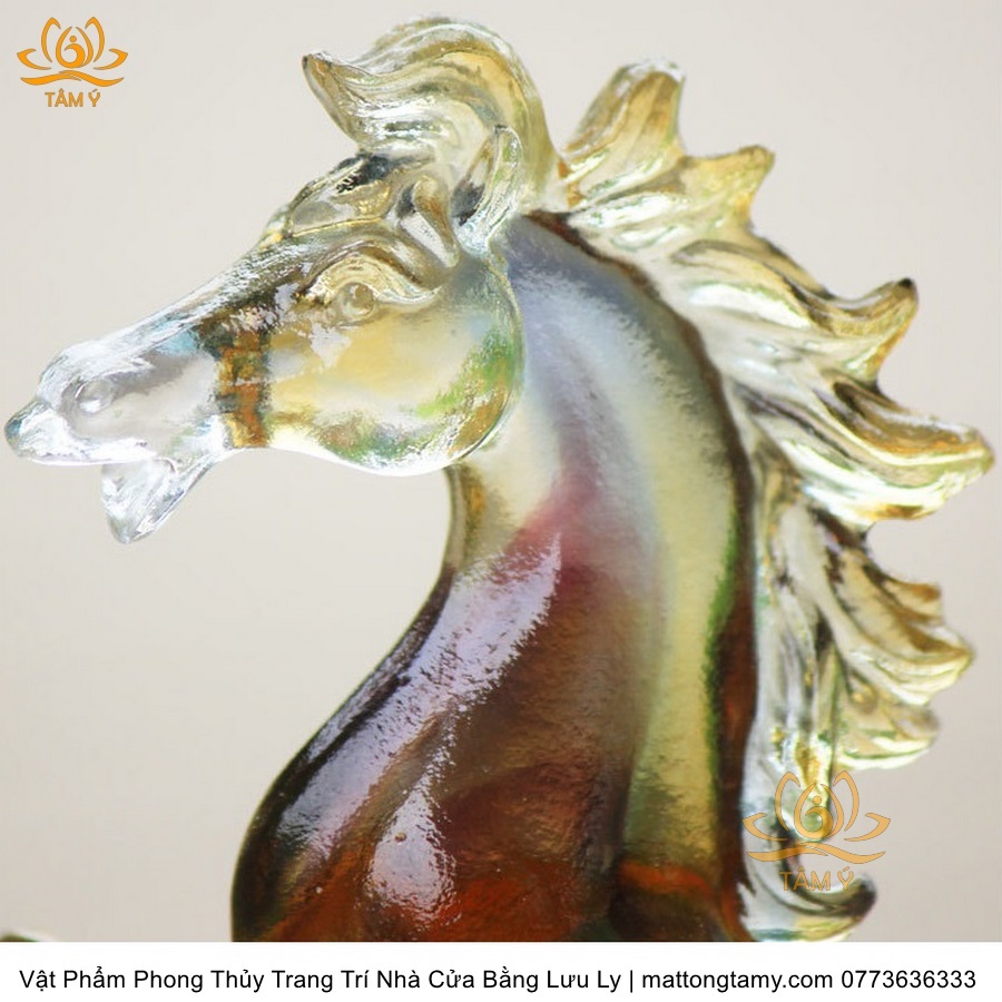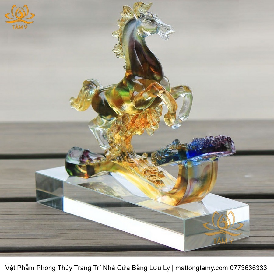 Tượng Gậy Như Ý Khắc Ngựa Quý Bên Trên Màu Ngũ Sắc Vật Phẩm Phong Thủy Trang Trí Nhà Cửa Bằng Lưu Ly Cao Cấp DTT131
