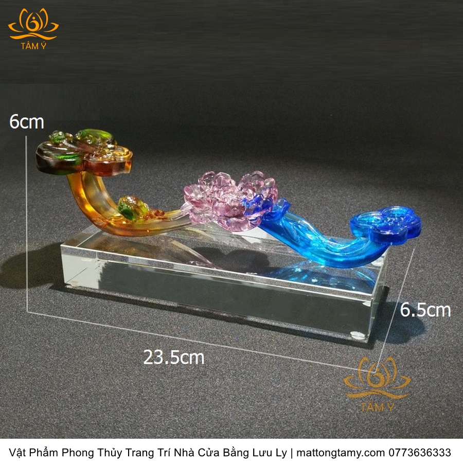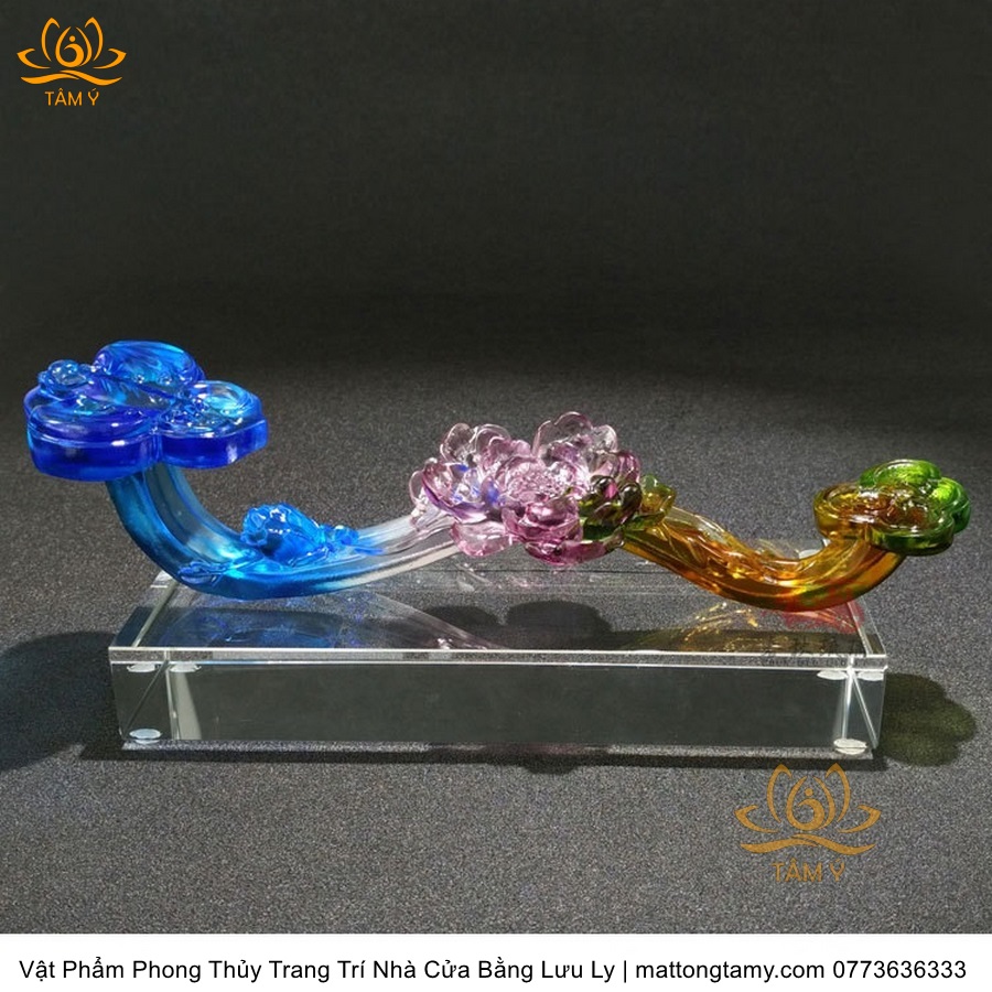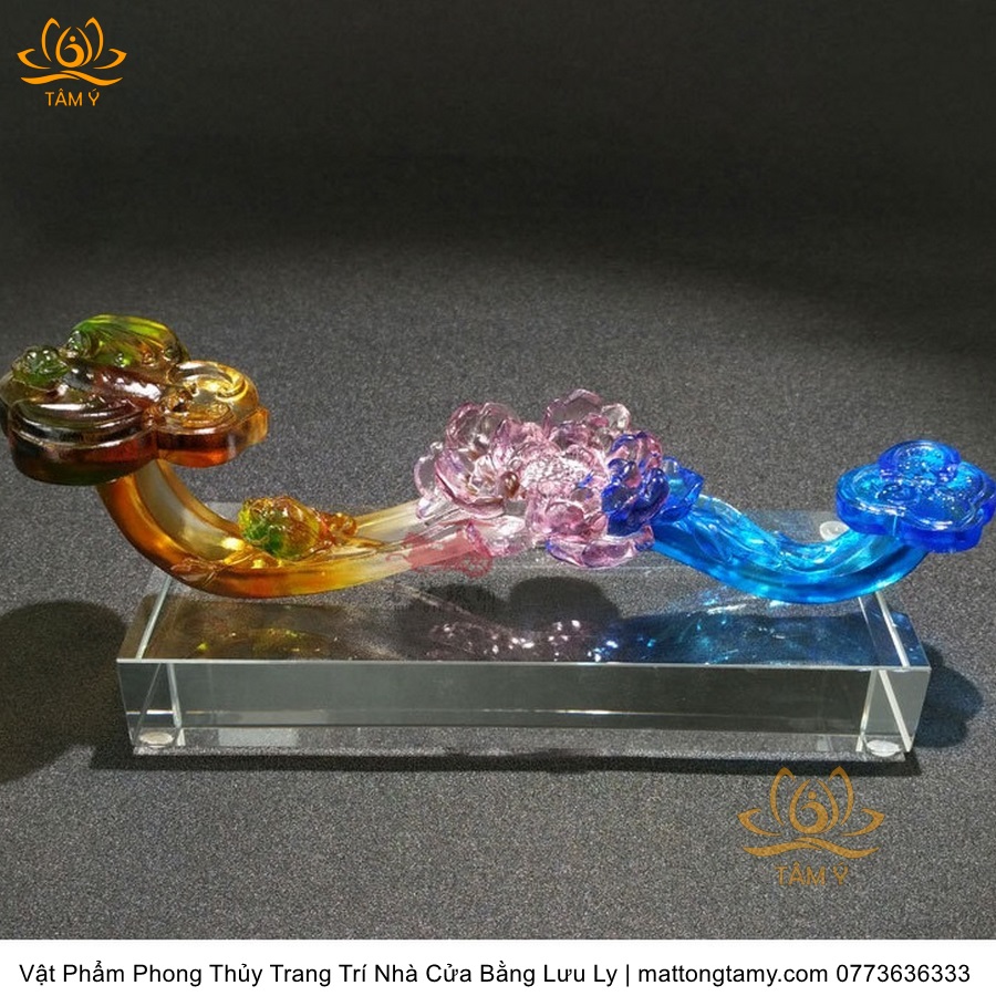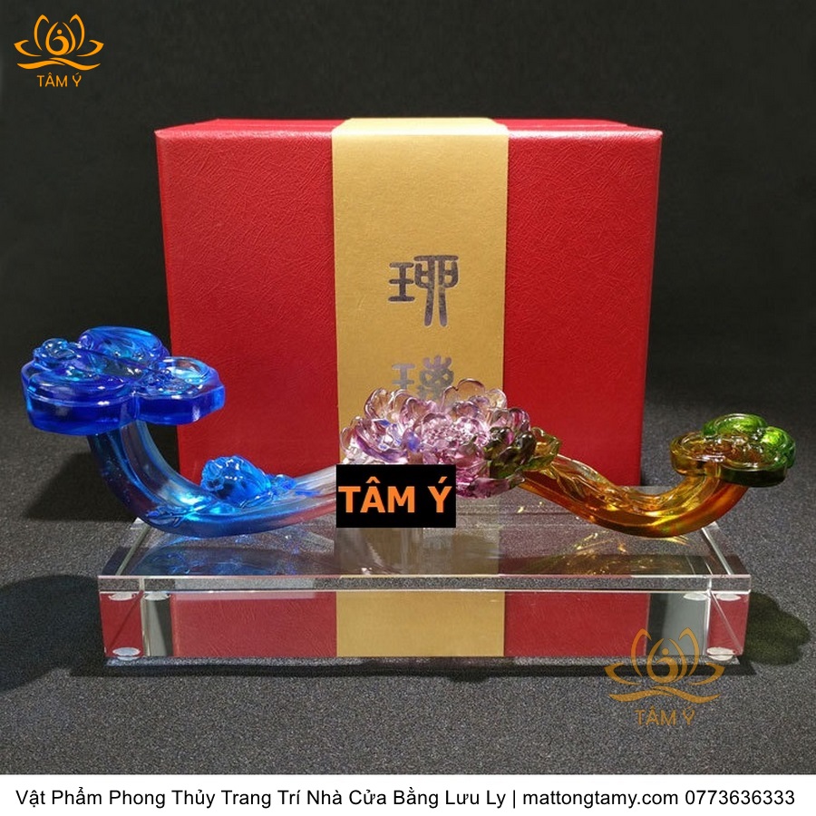 Tượng Gậy Như Ý Ngũ Sắc Xanh Bằng Lưu Ly Cao Cấp Vật Phẩm Phong Thủy Trang Trí Nhà Cửa DTT223