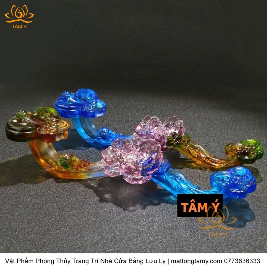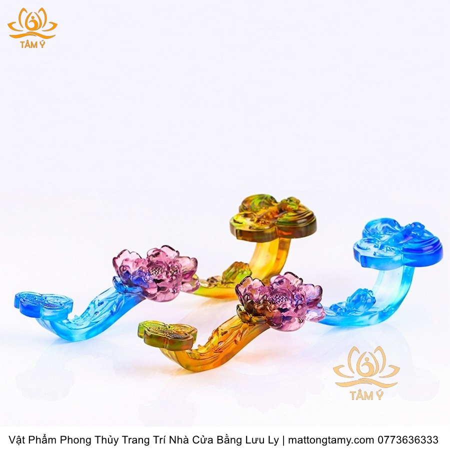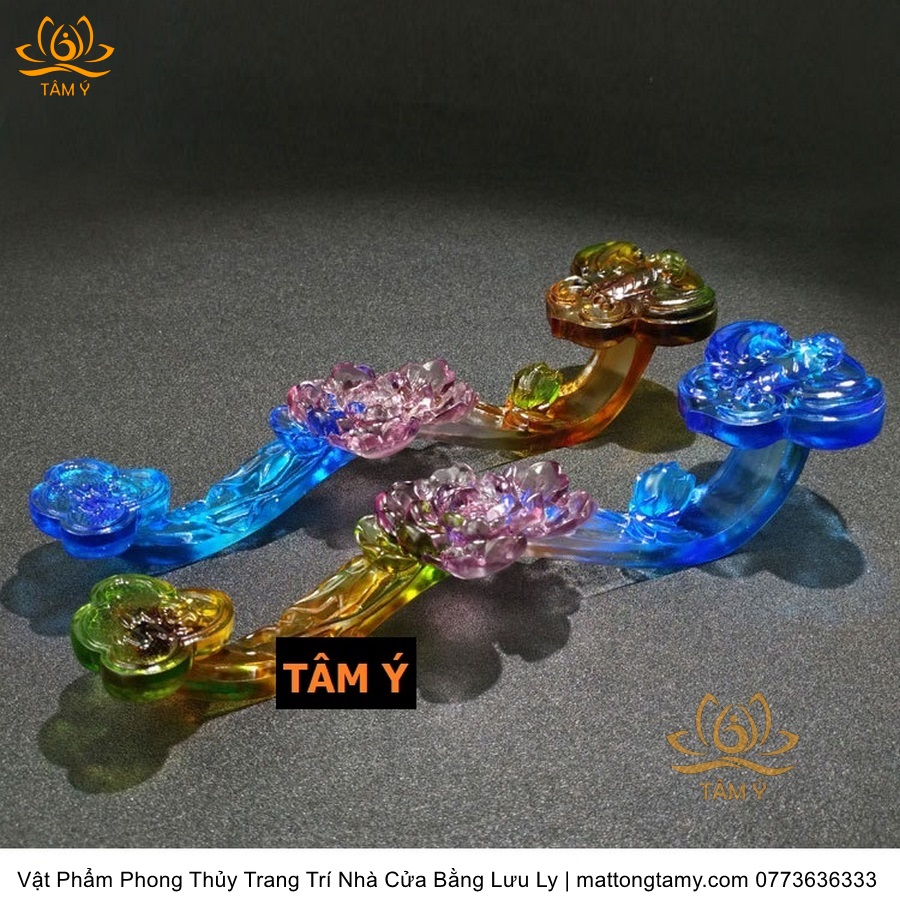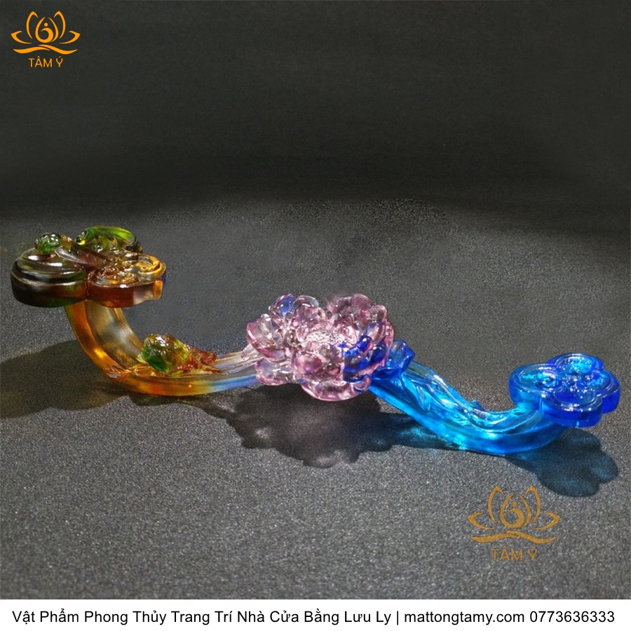Tượng Gậy Như Ý Ngũ Sắc Xanh Bằng Lưu Ly Cao Cấp Vật Phẩm Phong Thủy Trang Trí Nhà Cửa DTT223