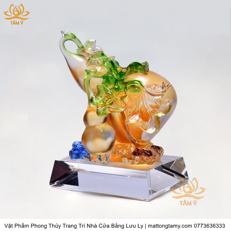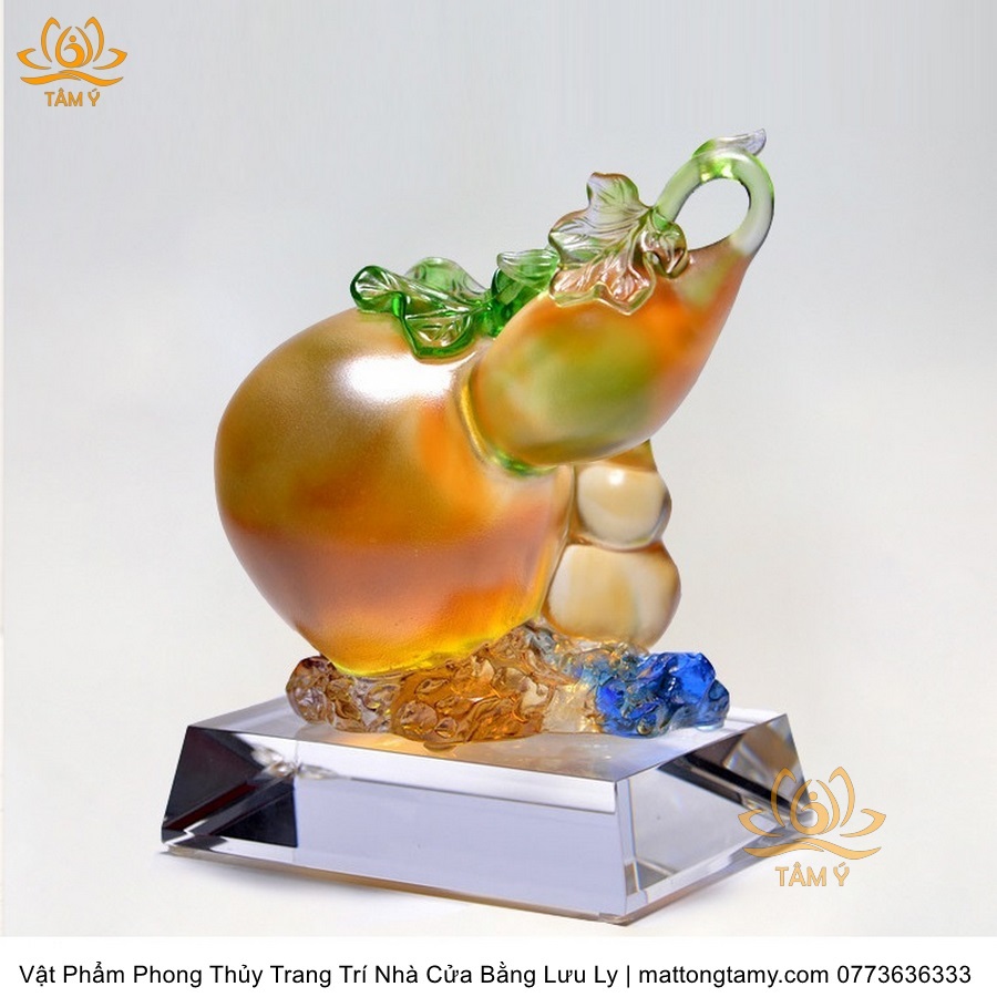 Tượng Hồ Lô Tài Lộc May Mắn Bằng Lưu Ly Cao Cấp Vật Phẩm Phong Thủy Trang Trí Nhà Cửa DTT79