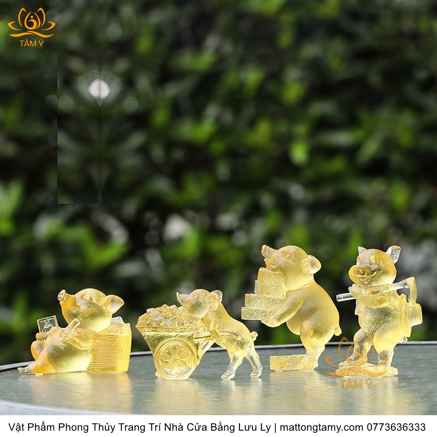 Tượng Hợi(Heo) Nhiều Tư Thế Tài Lộc May Mắn Vật Phẩm Phong Thủy Trang Trí Nhà Cửa Bằng Lưu Ly Cao Cấp, DTT257