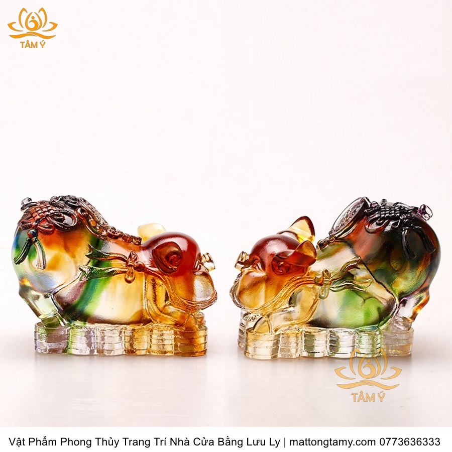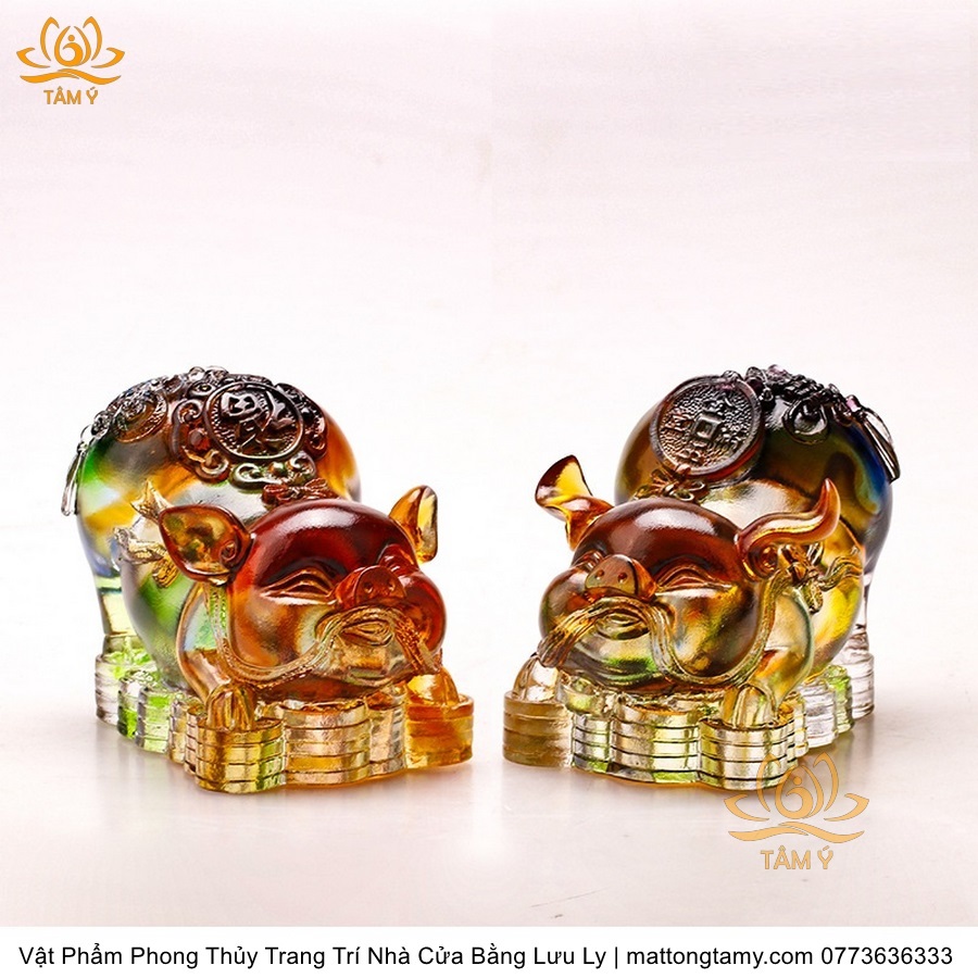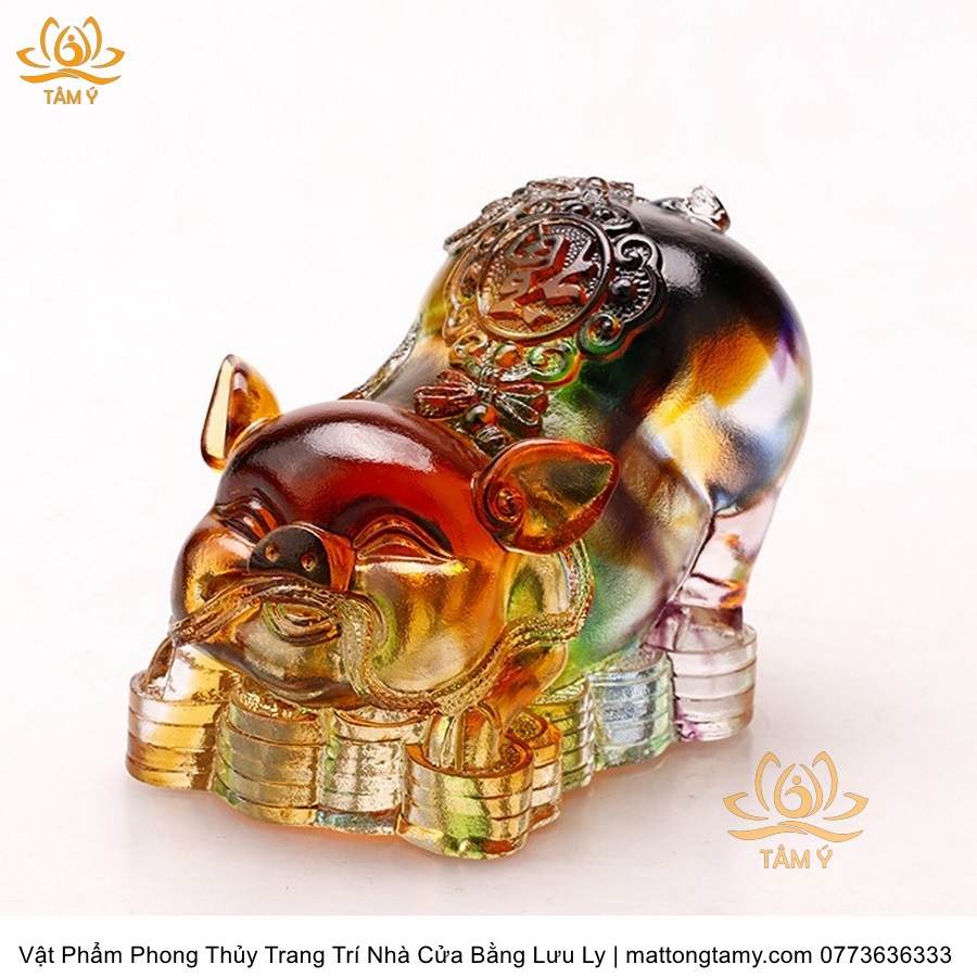 Tượng Hợi(Heo) Tài Lộc May Mắn Vật Phẩm Phong Thủy Trang Trí Nhà Cửa Bằng Lưu Ly Cao Cấp, DTT58