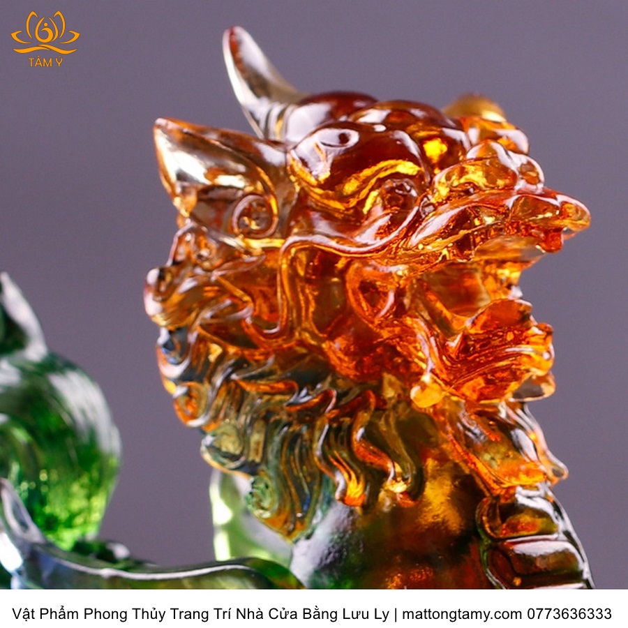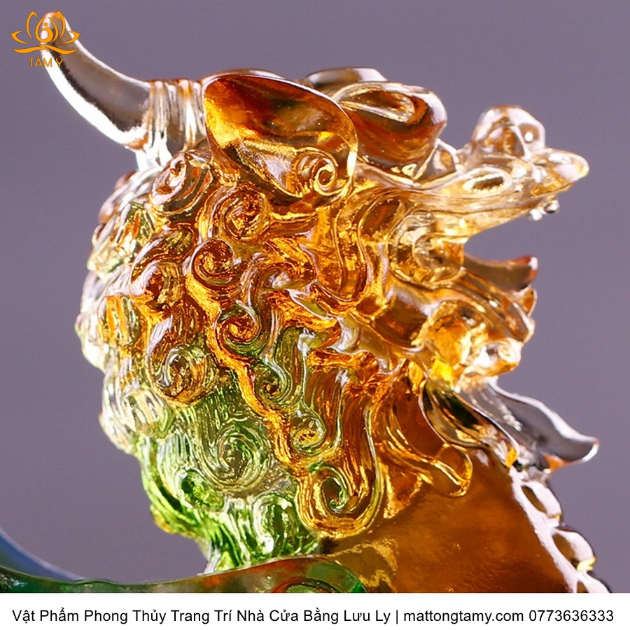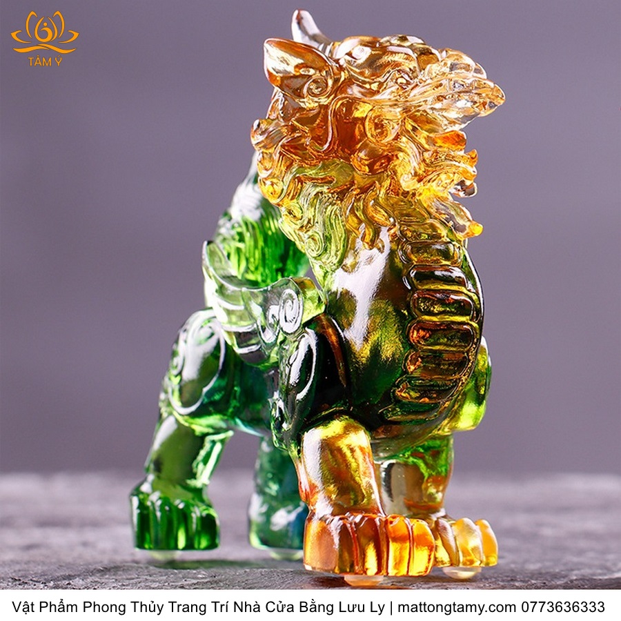 Tượng Kỳ Lân Ngũ Sắc Bằng Lưu Ly Cao Cấp Trang Trí Nhà Cửa Vật Phẩm Phong Thủy, DTT229