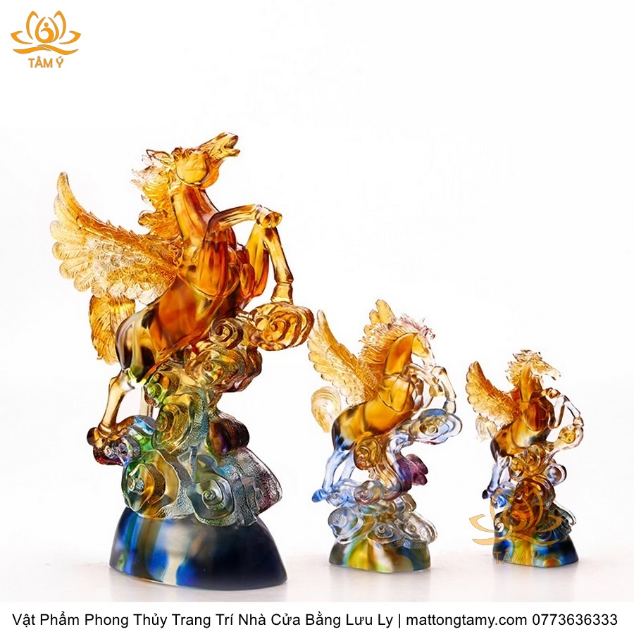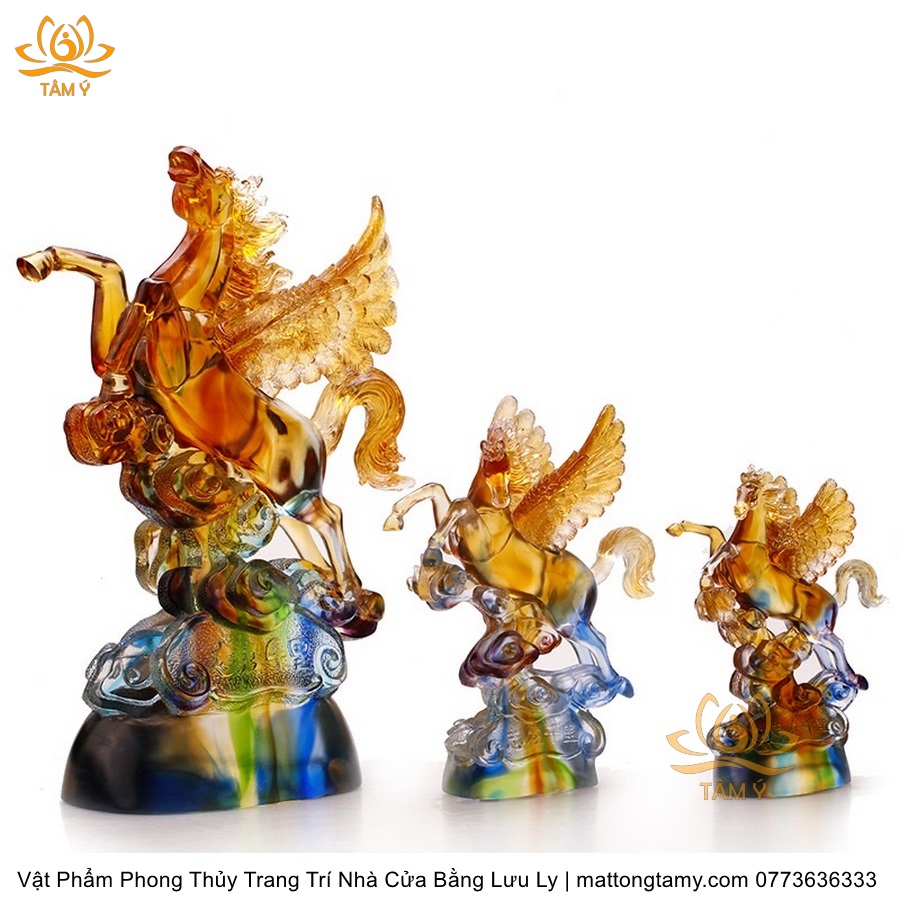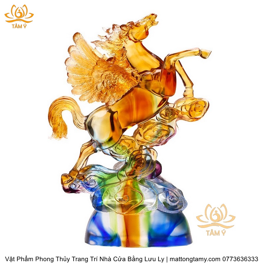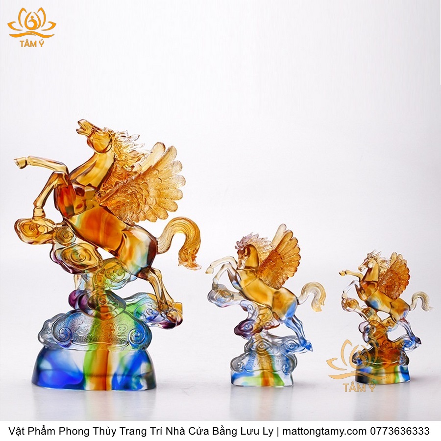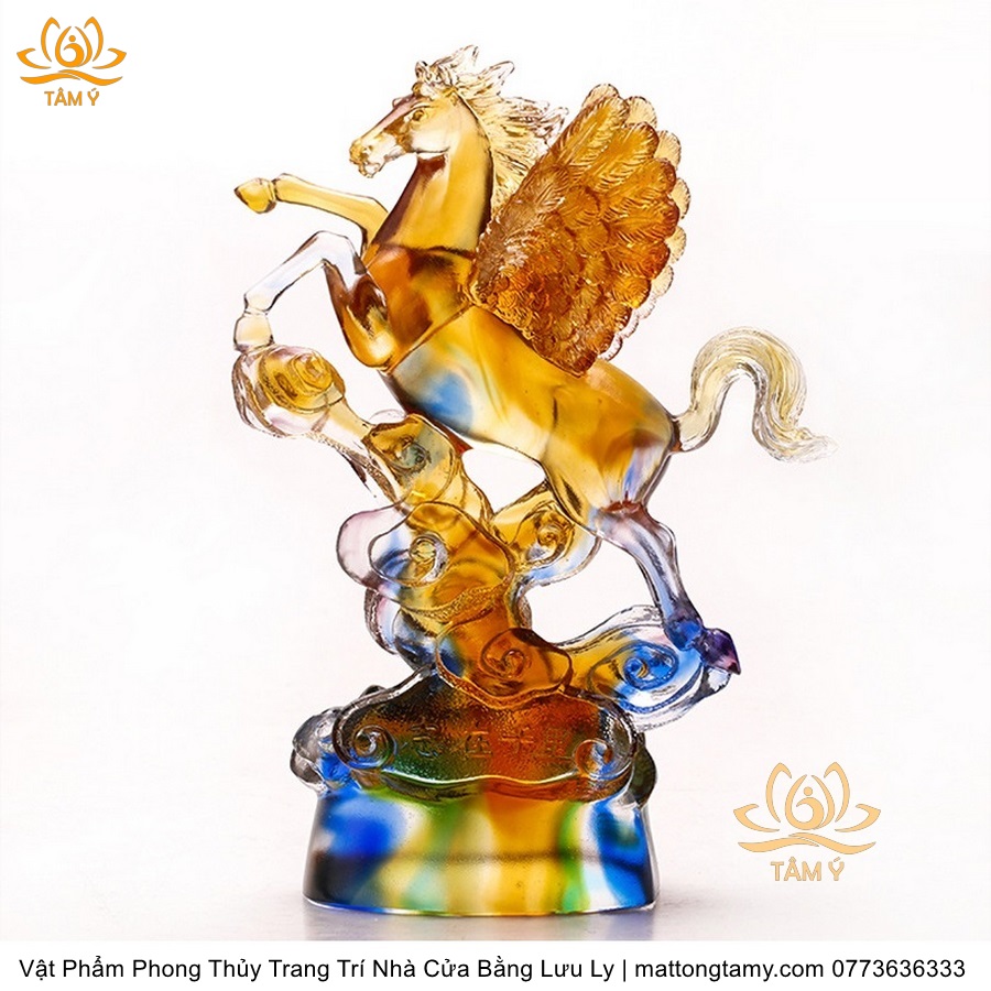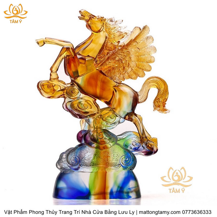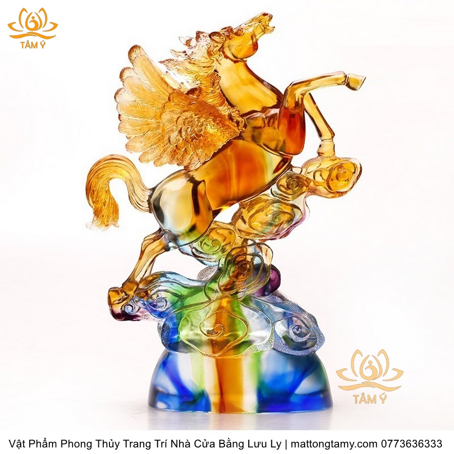 Tượng Ngựa Quý Có Cánh Màu Ngũ Sắc Bằng Lưu Ly Cao Cấp Vật Phẩm Phong Thủy Trang Trí Nhà Cửa DTT169