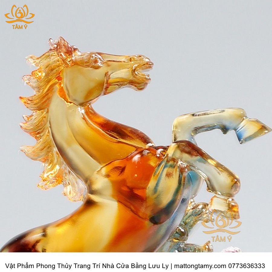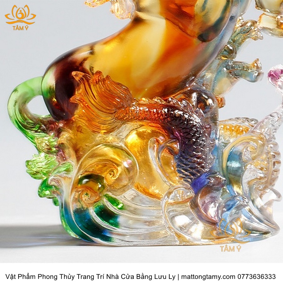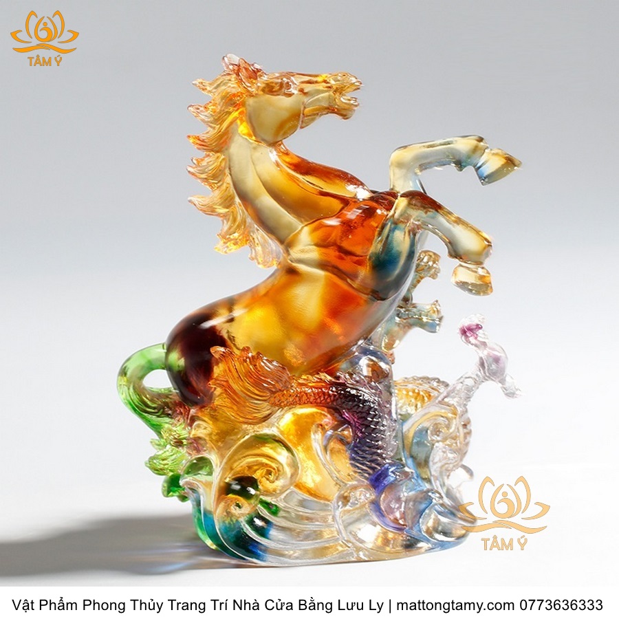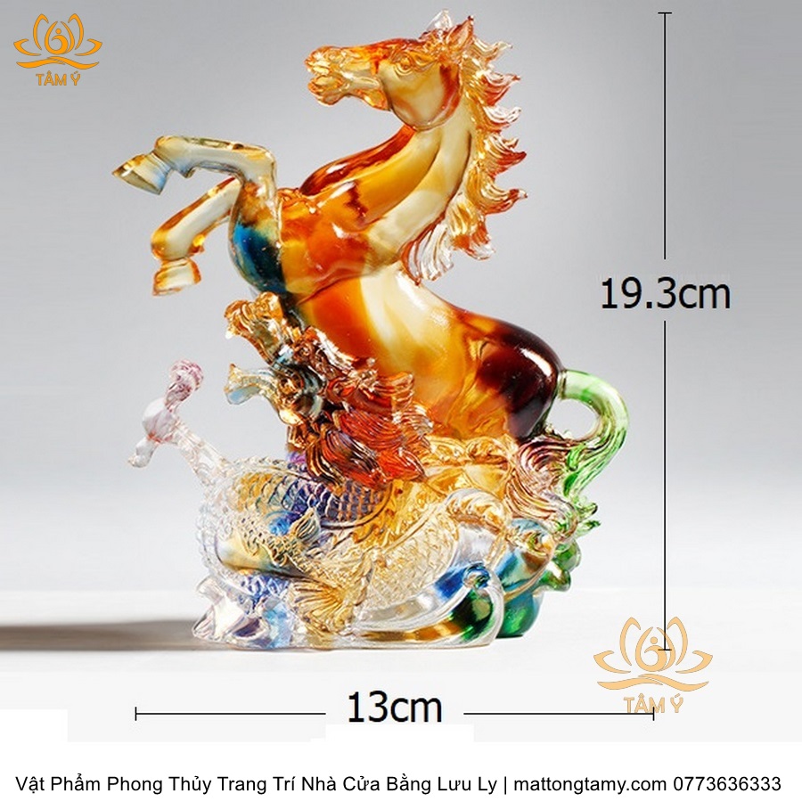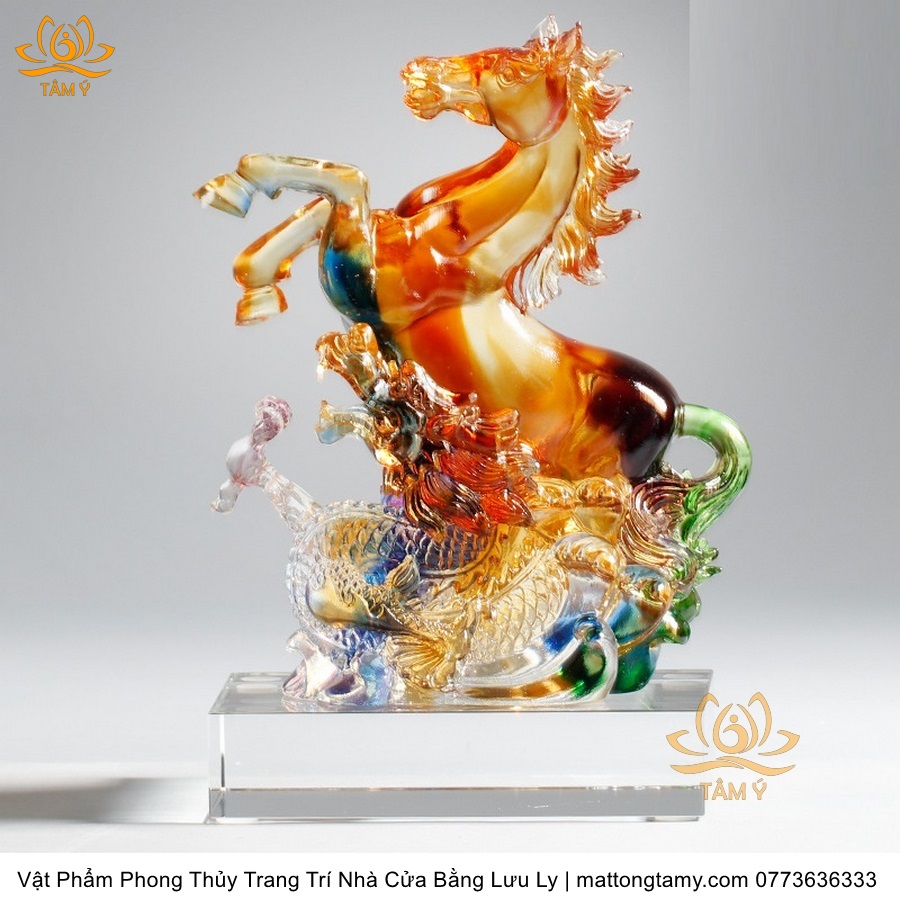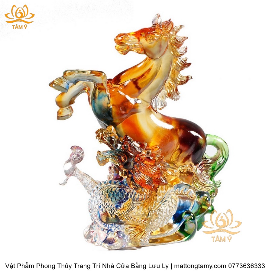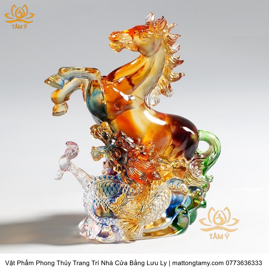 Tượng Ngựa Quý Cưỡi Rồng Ngũ Sắc Vật Phẩm Phong Thủy Trang Trí Nhà Cửa Bằng Lưu Ly Cao Cấp DTT132