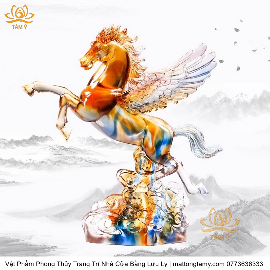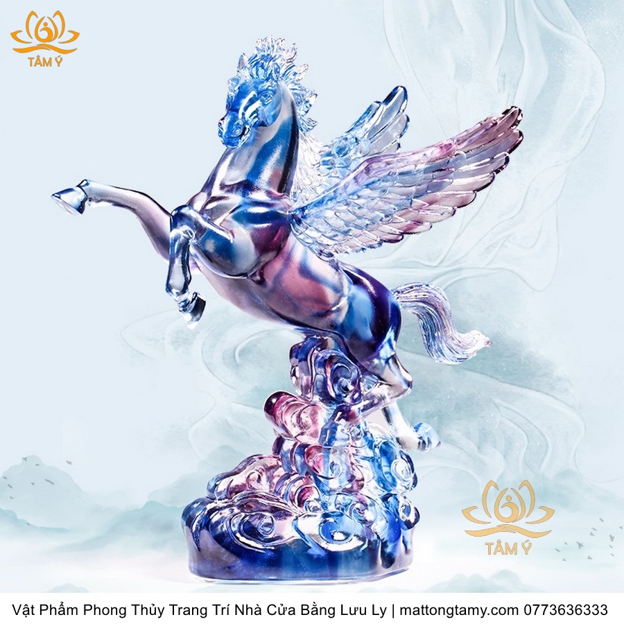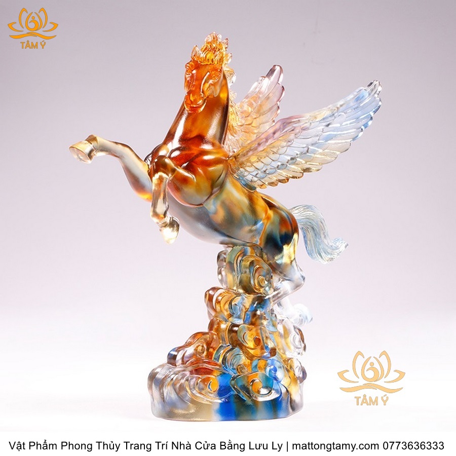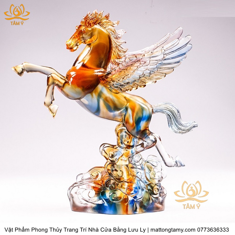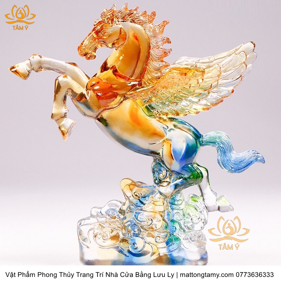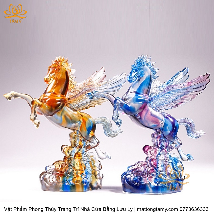 Tượng Ngựa Thần Có Cánh Màu Ngũ Sắc Bằng Lưu Ly Cao Cấp Vật Phẩm Phong Thủy Trang Trí Nhà Cửa DTT253
