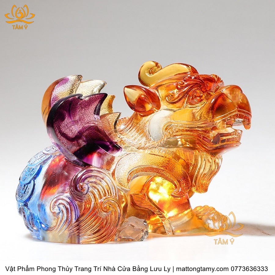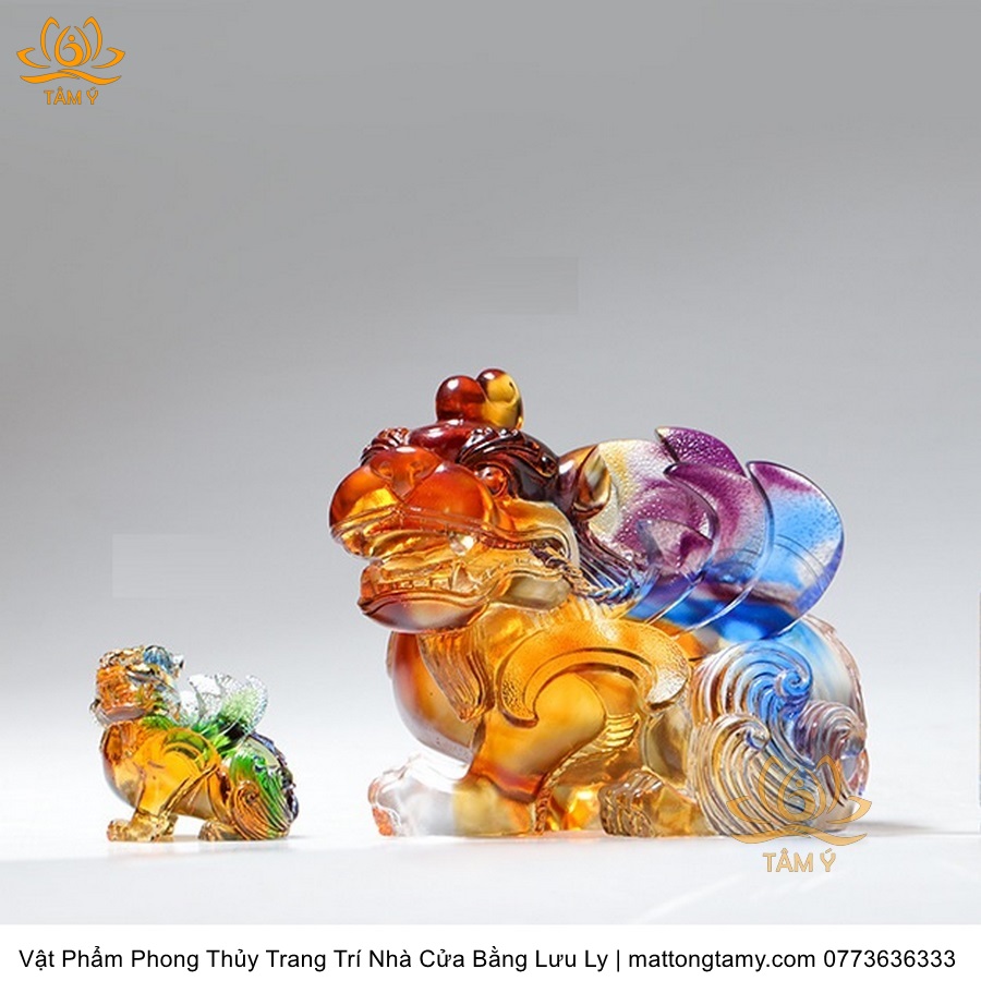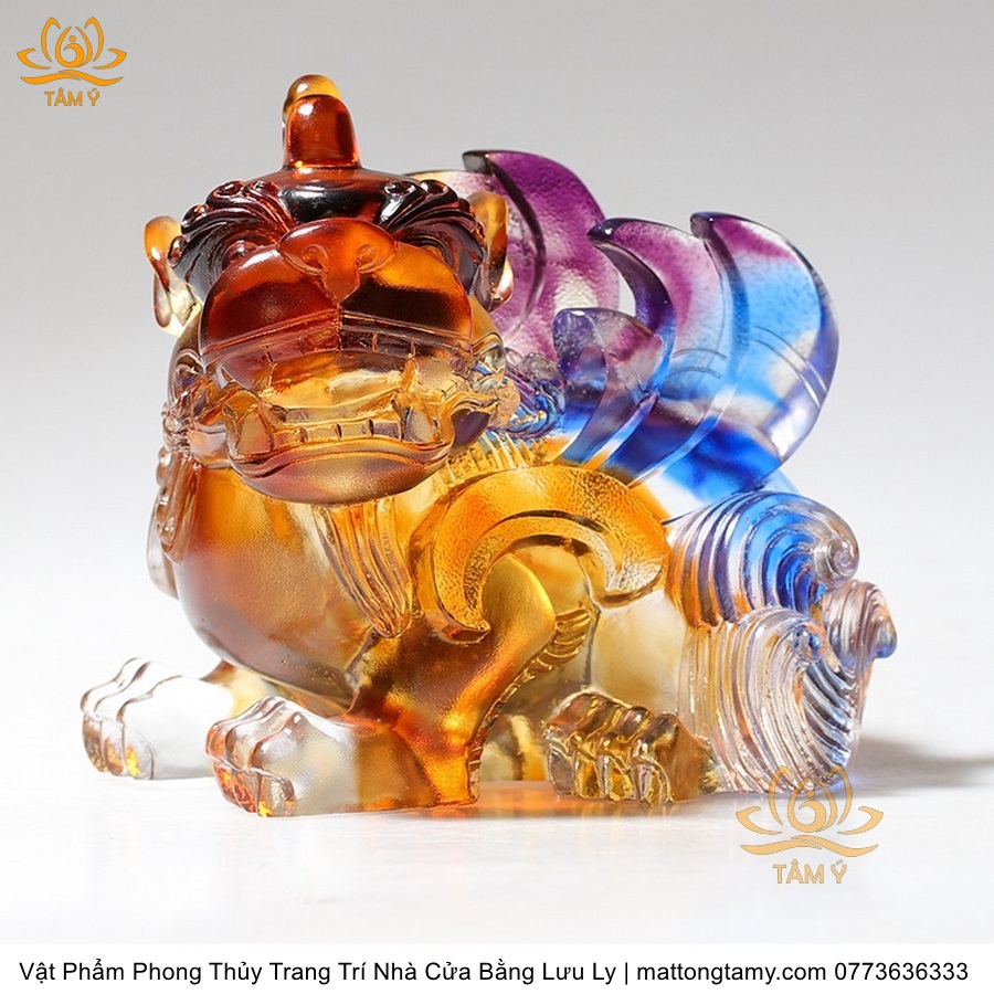 Tượng Niên Thú Cách Điệu Ngũ Sắc Bằng Lưu Ly Cao Cấp Trang Trí Nhà Cửa Vật Phẩm Phong Thủy, DTT261