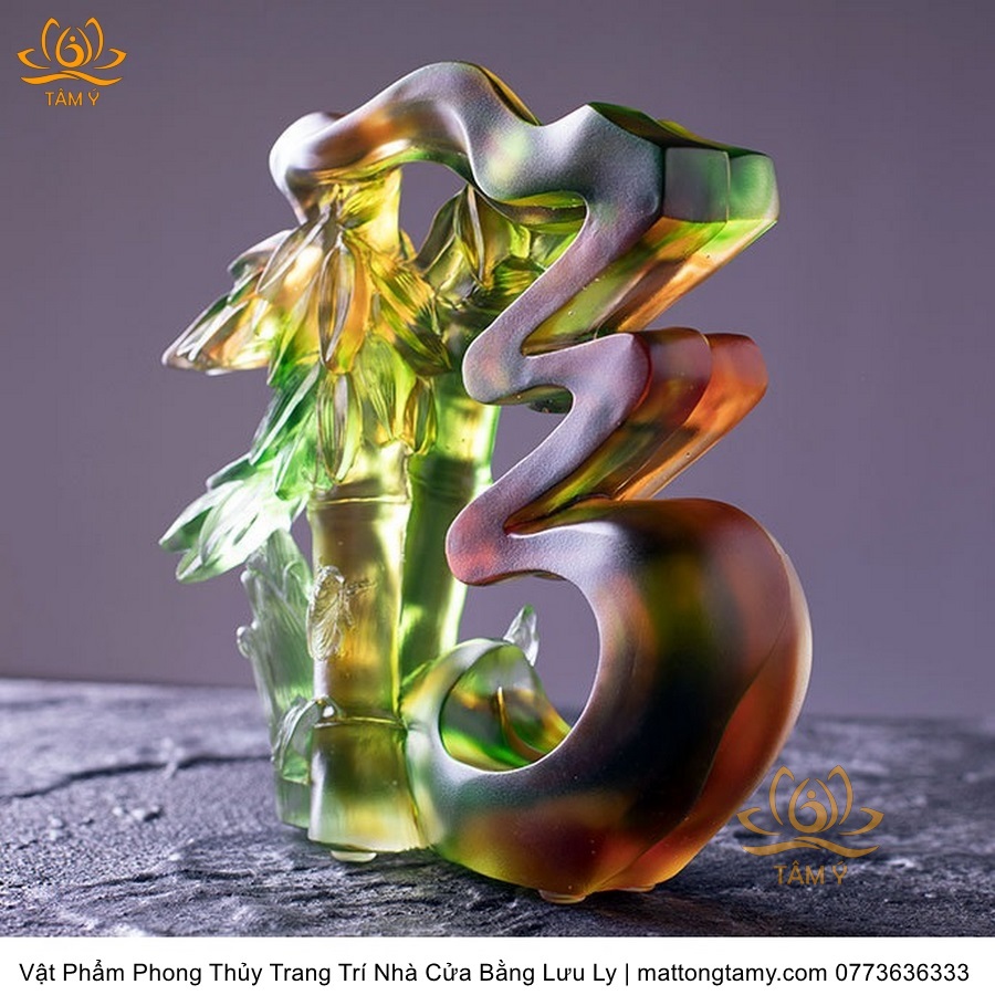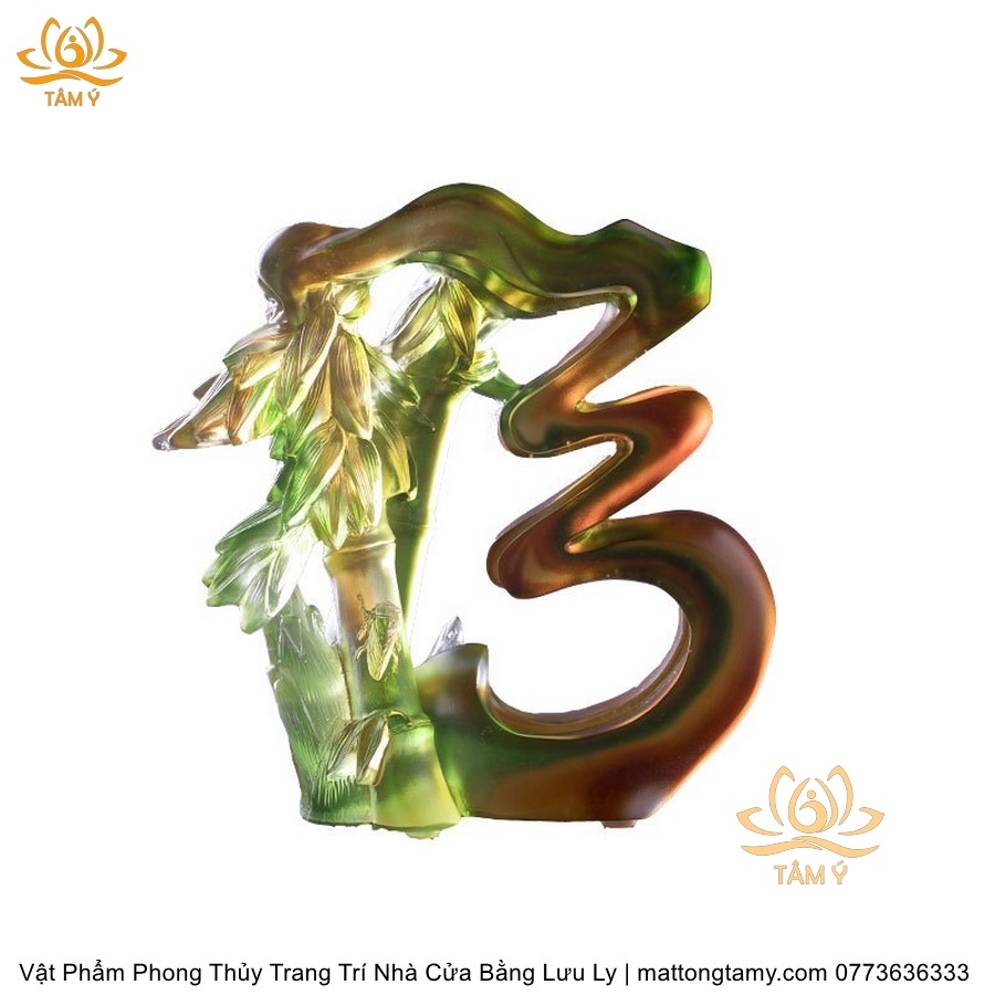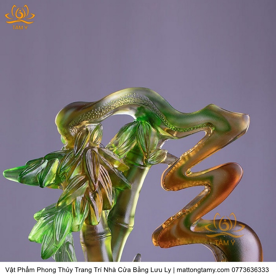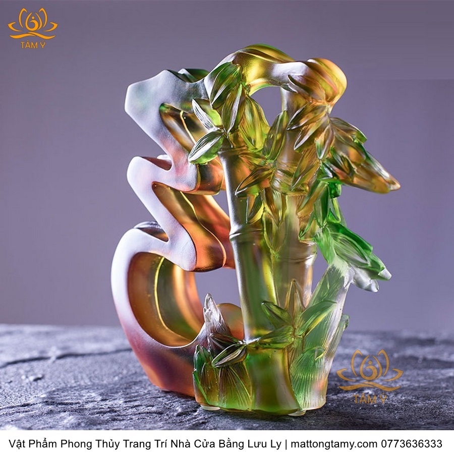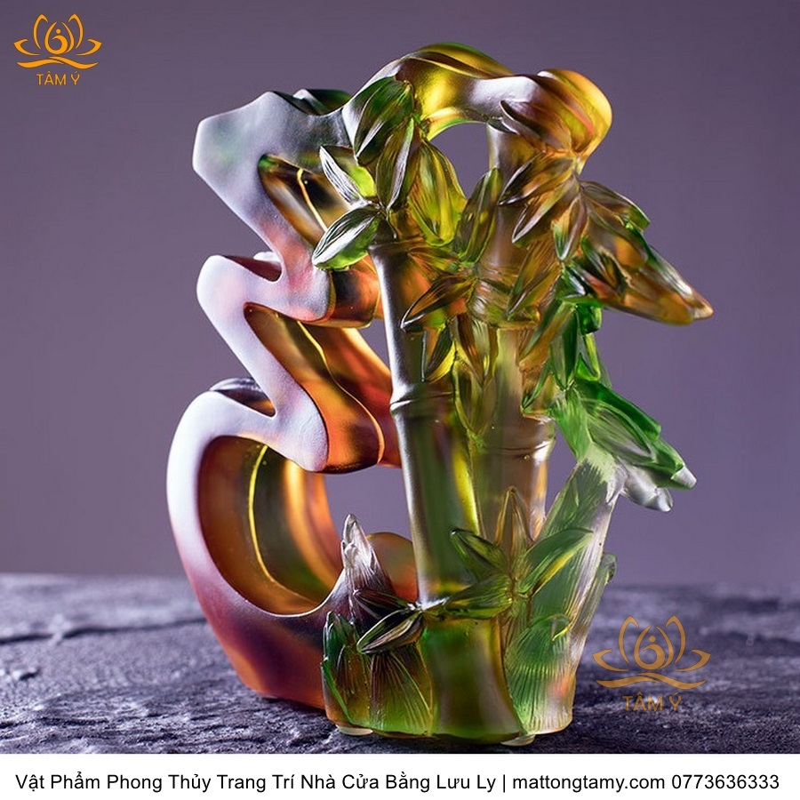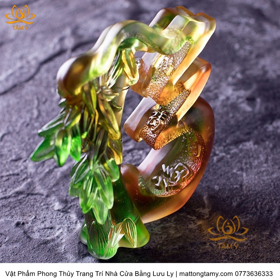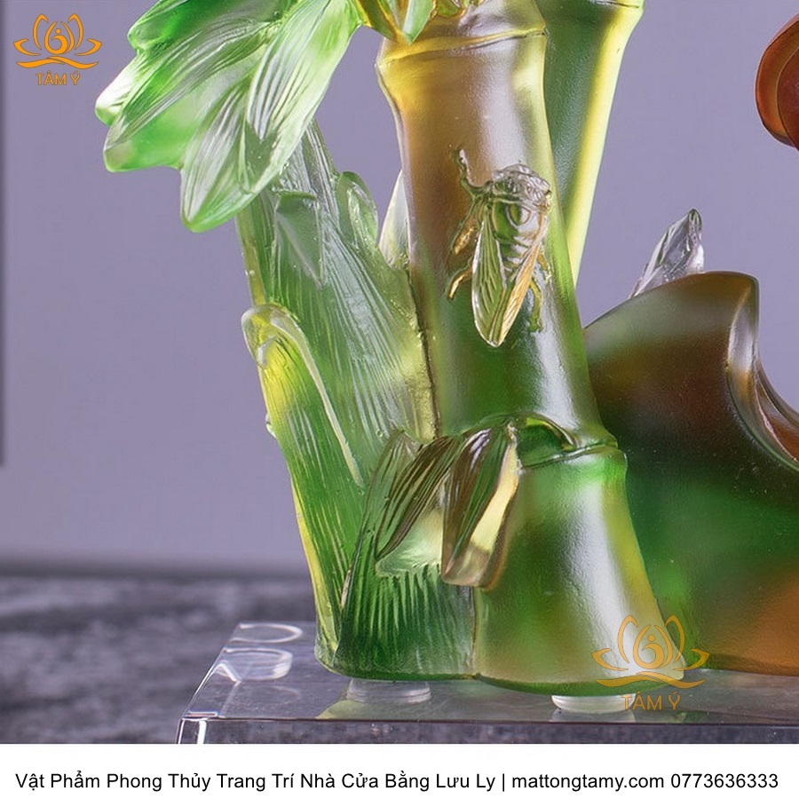 Tượng - Lọ Đựng Bút Khắc Bụi Tre Quý Bằng Lưu Ly Cao Cấp Vật Phẩm Phong Thủy Trang Trí Nhà Cửa, DTT224