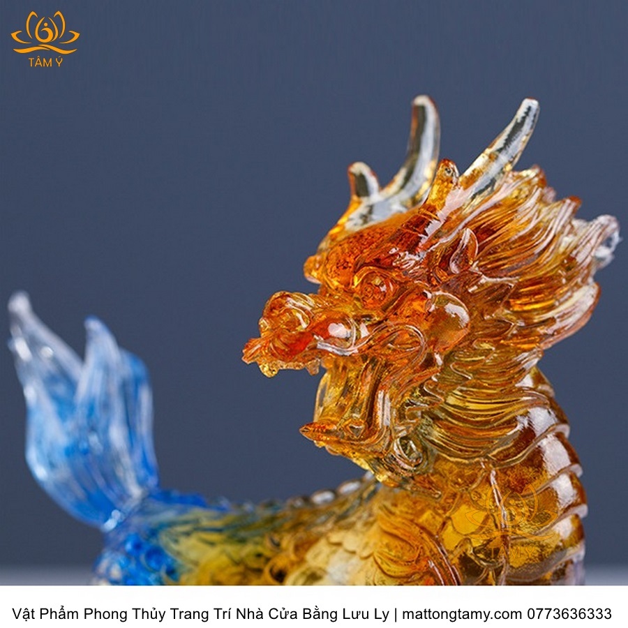 Tượng Rồng Kim Long 4 Chân Bằng Lưu Ly Cao Cấp Vật Phẩm Phong Thủy Trang Trí Nhà Cửa DTT264