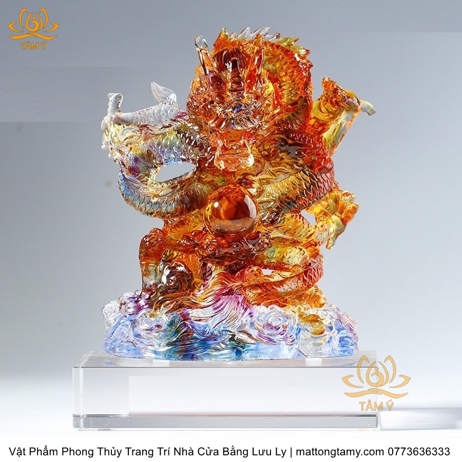 Tượng Rồng Phương Đông Bằng Lưu Ly Cao Cấp Vật Phẩm Phong Thủy Trang Trí Nhà Cửa DTT78