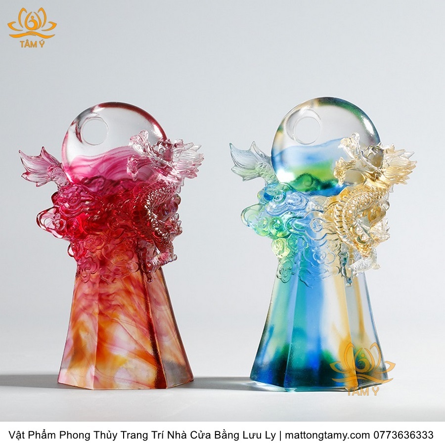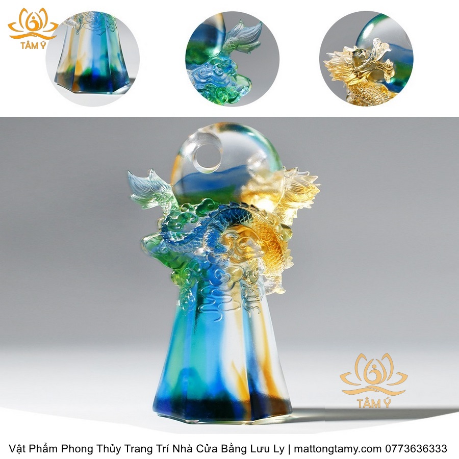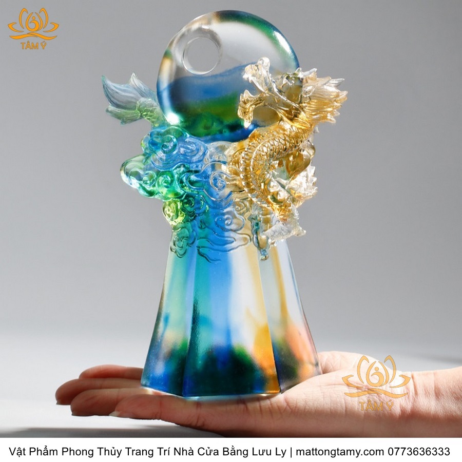 Tượng Rồng Phương Đông Nâng Ngọc Bằng Lưu Ly Cao Cấp Vật Phẩm Phong Thủy Trang Trí Nhà Cửa DTT102