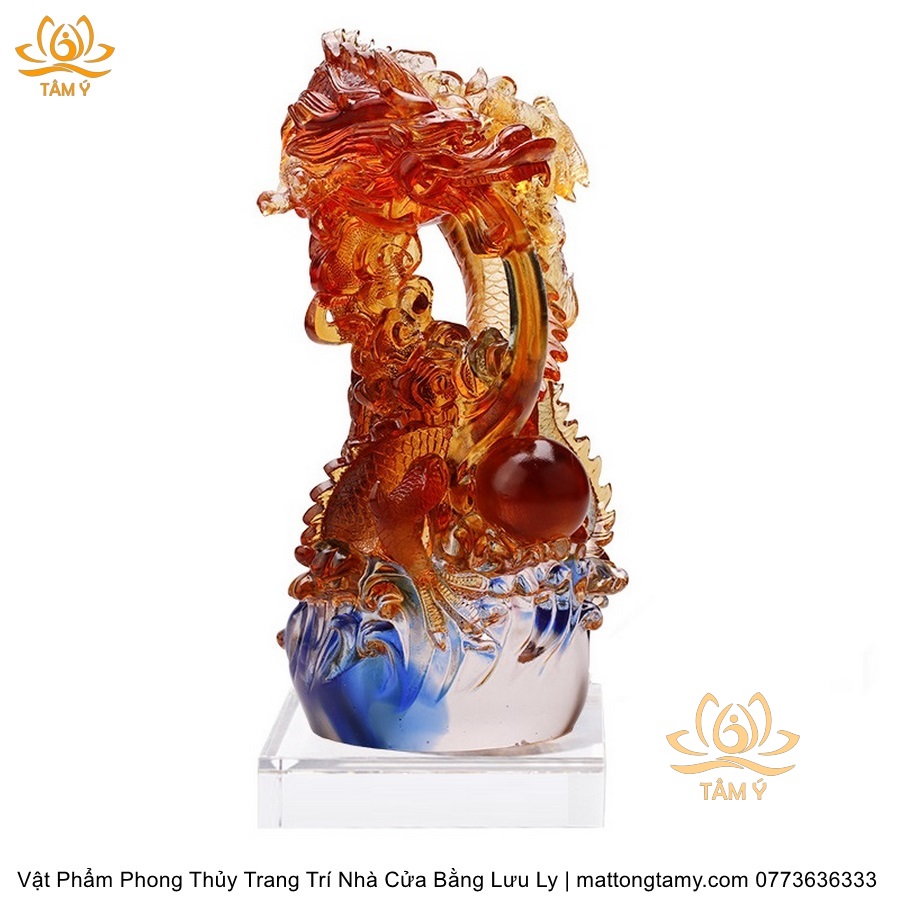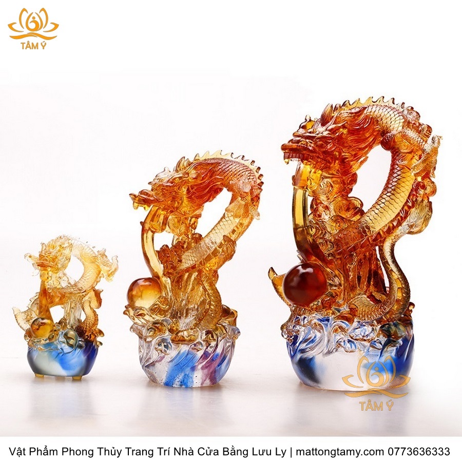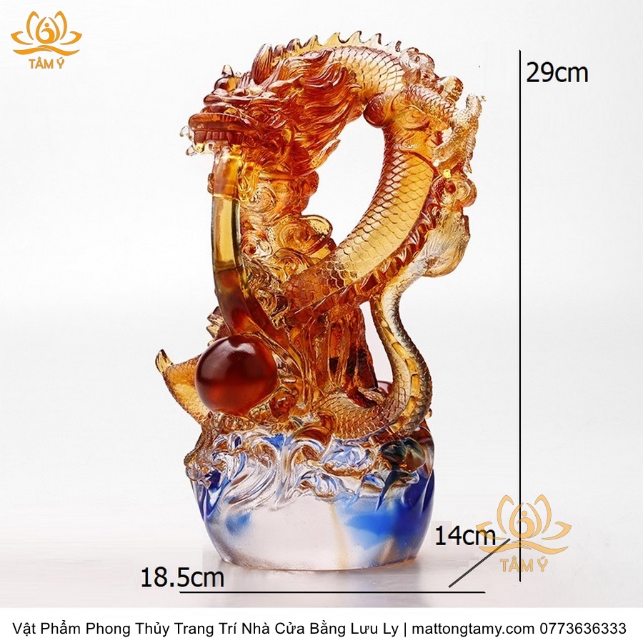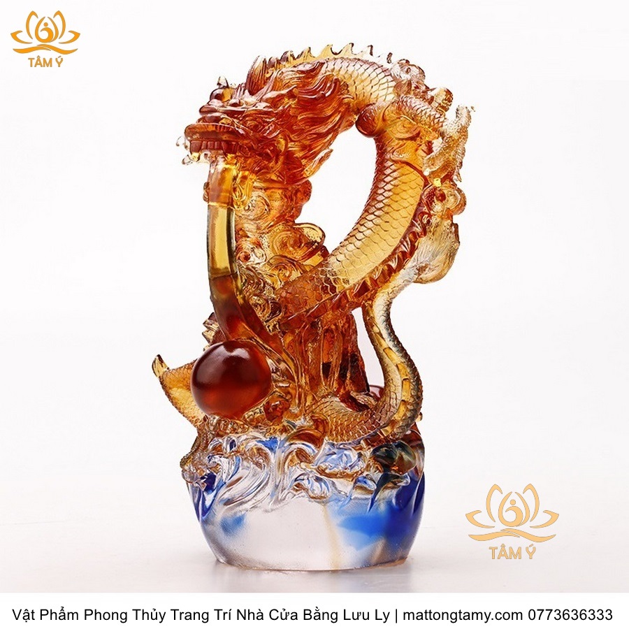 Tượng Rồng Phương Đông Nhả Ngọc Bằng Lưu Ly Cao Cấp Vật Phẩm Phong Thủy Trang Trí Nhà Cửa DTT118