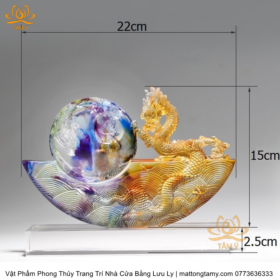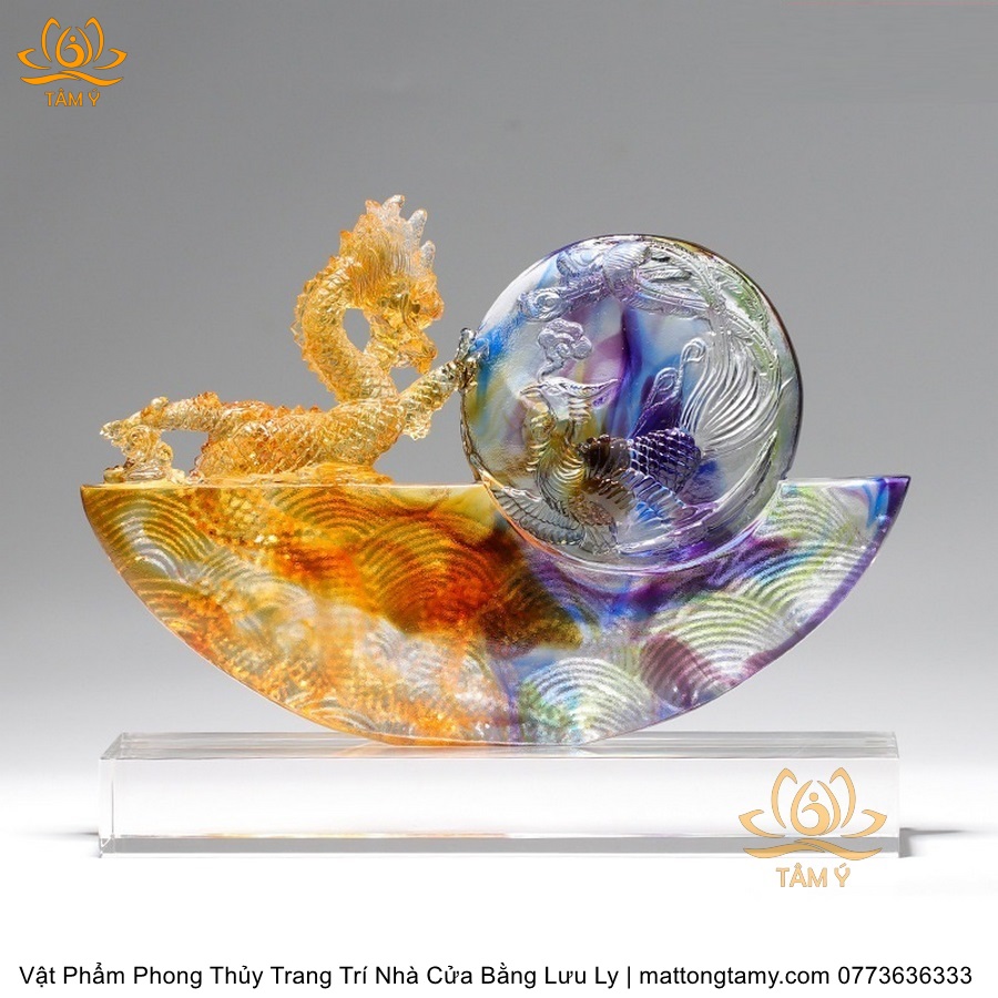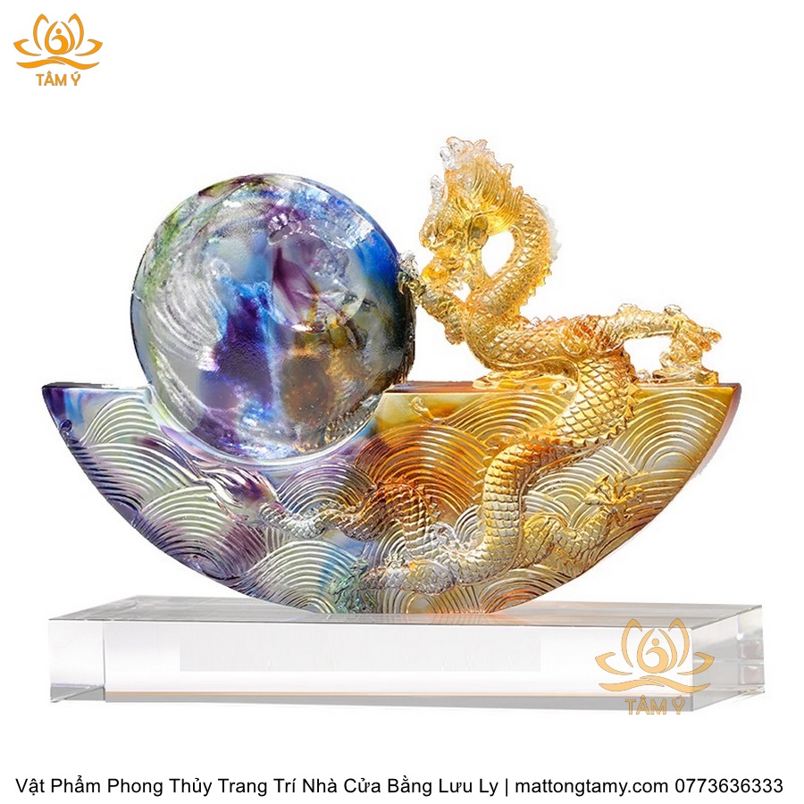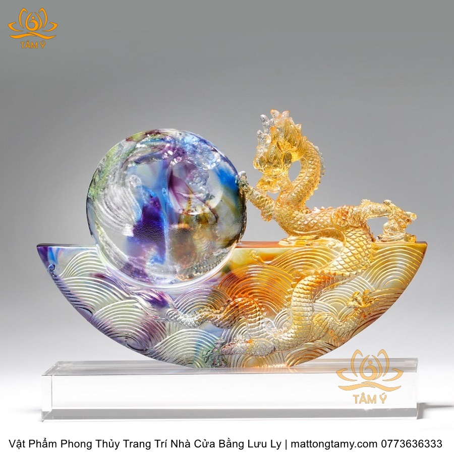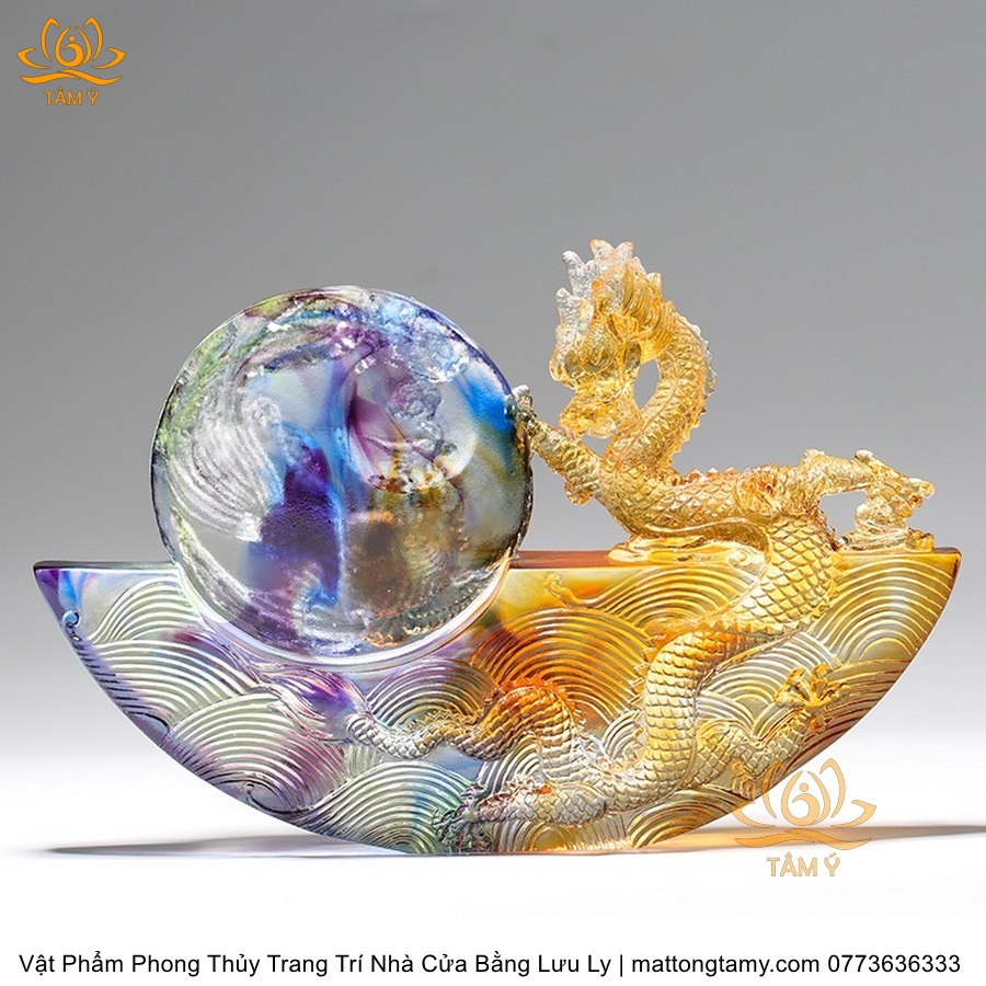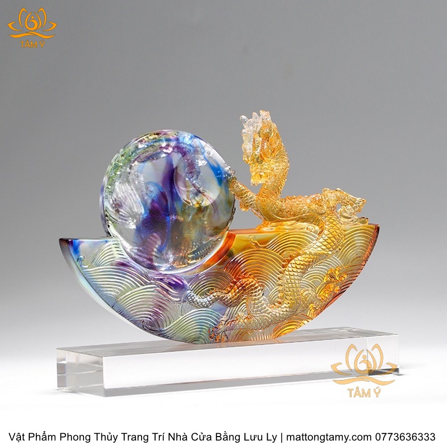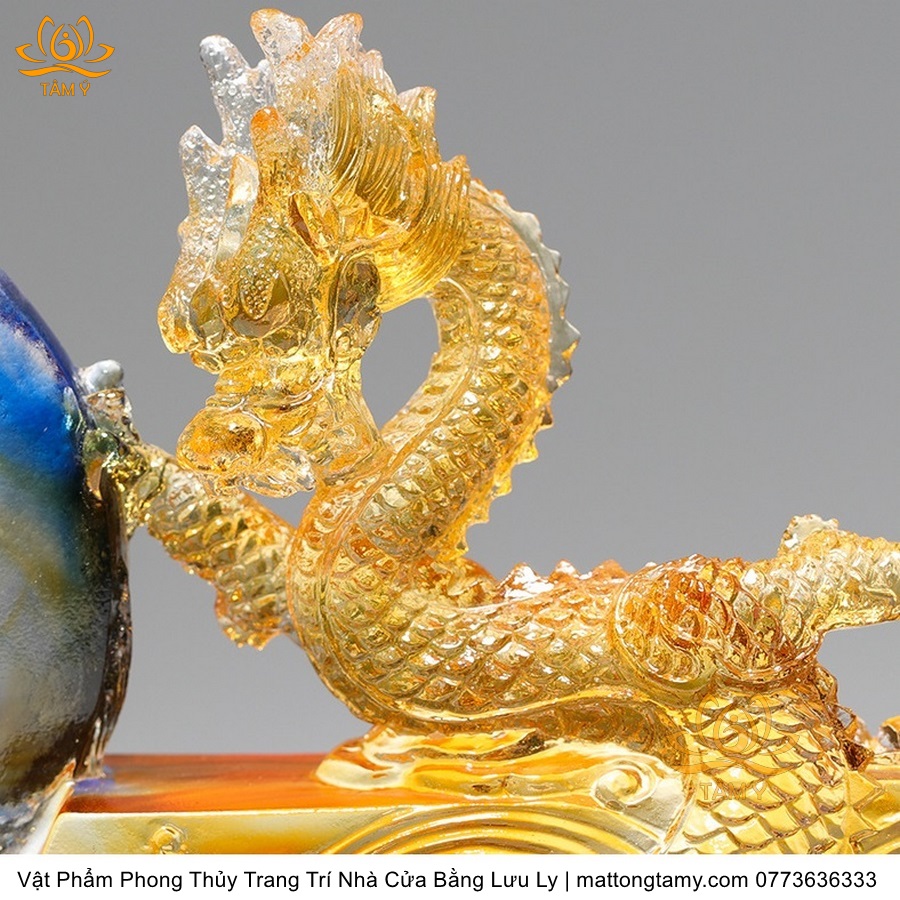 Tượng Rồng Phương Đông Tựa Ngọc Bằng Lưu Ly Cao Cấp Vật Phẩm Phong Thủy Trang Trí Nhà Cửa DTT91