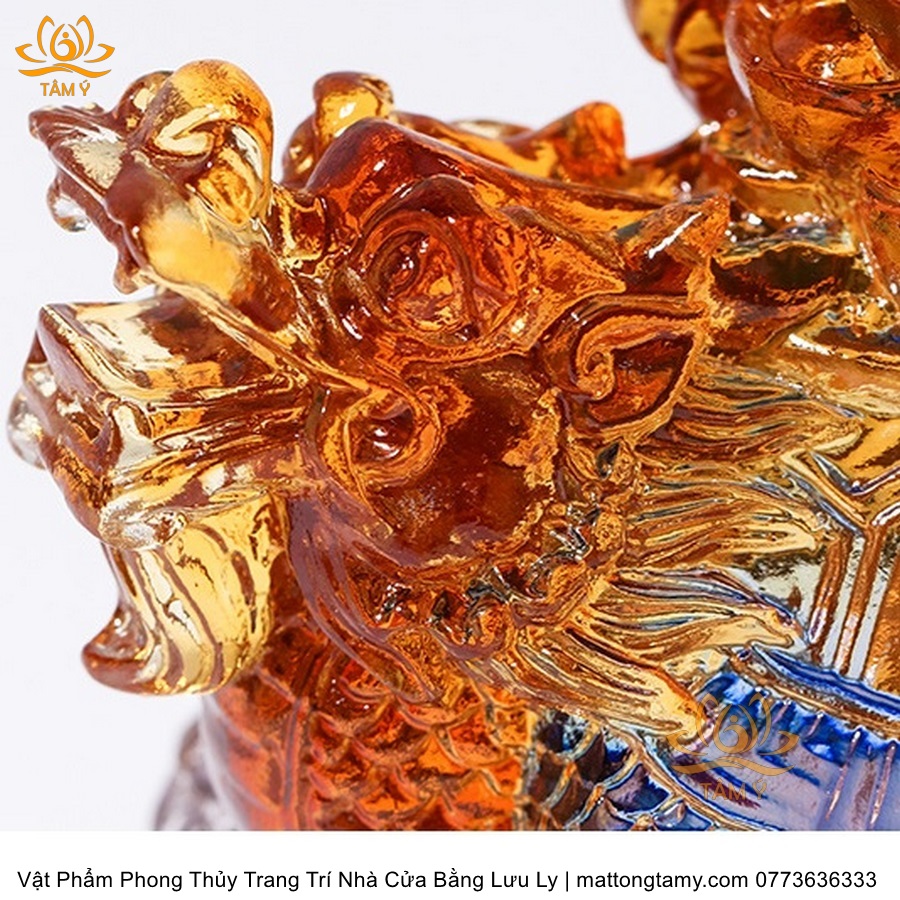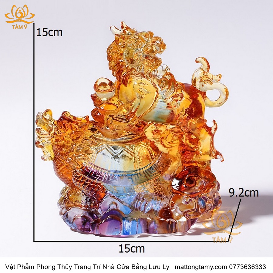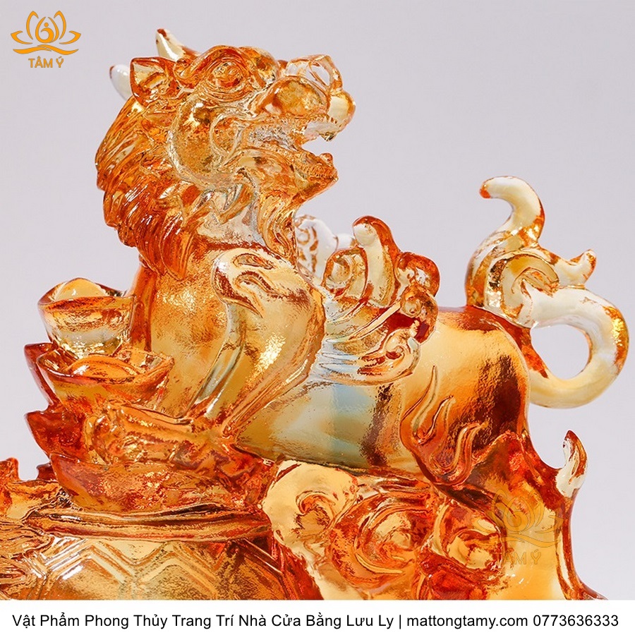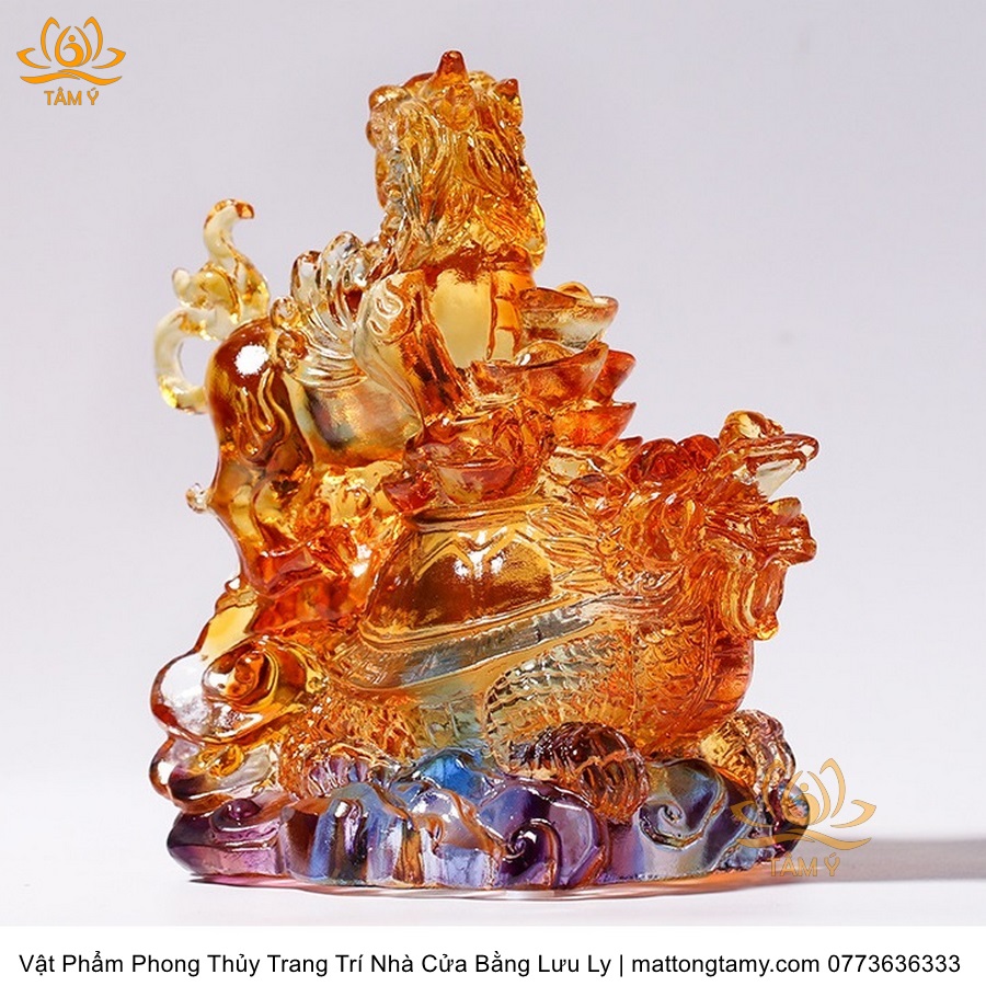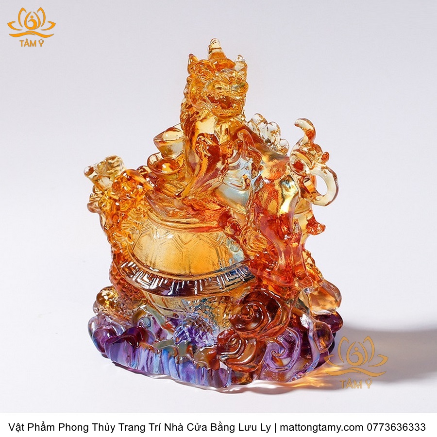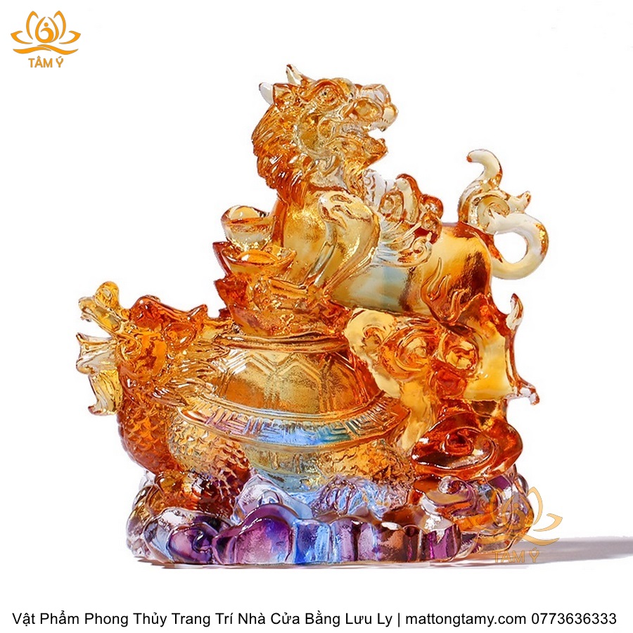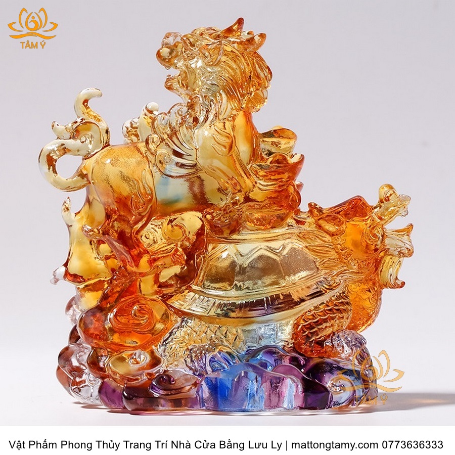 Tượng Sư Tử Mang Vàng Cưỡi Huyền Vũ Bằng Lưu Ly Cao Cấp Vật Phẩm Phong Thủy Trang Trí Nhà Cửa DTT127