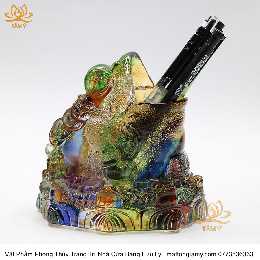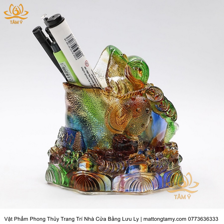 Tượng Thiềm Thừ Dạng Hộp Đựng Bút Trang Trí Nhà Cửa Vật Phẩm Phong Thủy Bằng Lưu Ly Cao Cấp DTT122