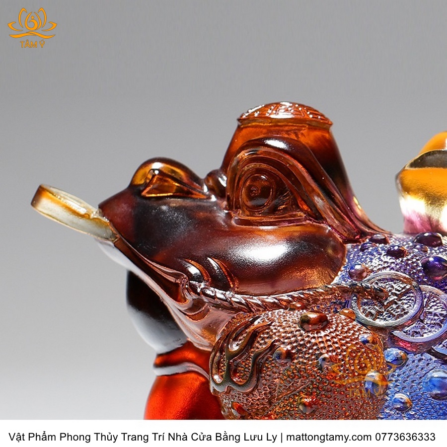 Tượng Thiềm Thừ Ngậm Vàng Bằng Lưu Ly Cao Cấp Trang Trí Nhà Cửa Vật Phẩm Phong Thủy DTT119