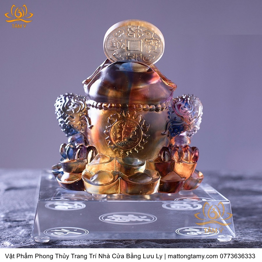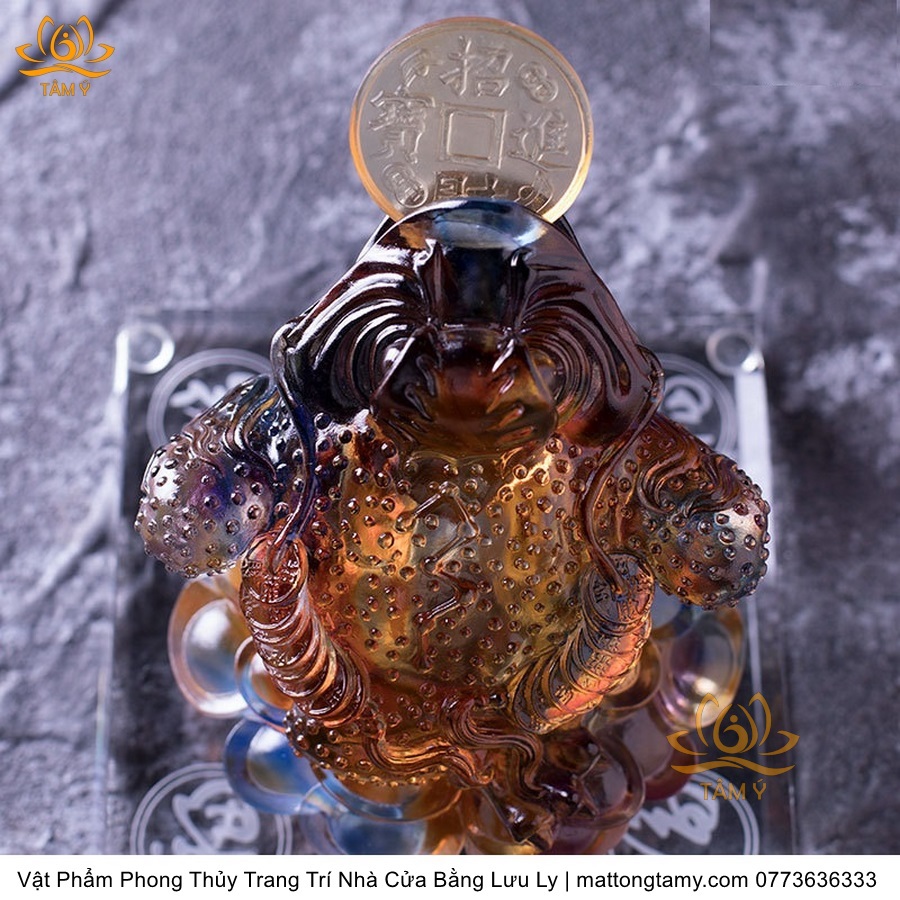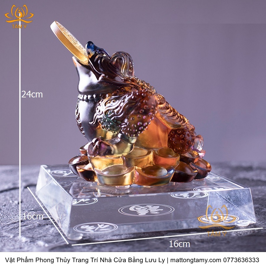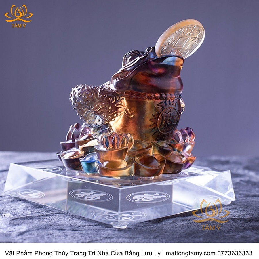 Tượng Thiềm Thừ Ngậm Vàng Bằng Lưu Ly Cao Cấp Vật Phẩm Phong Thủy Trang Trí Nhà Cửa DTT94
