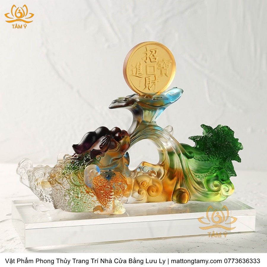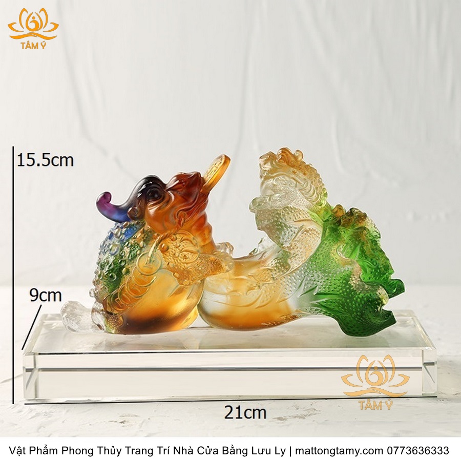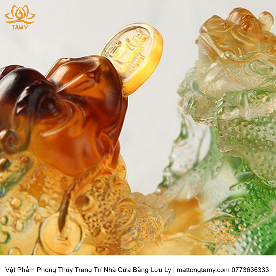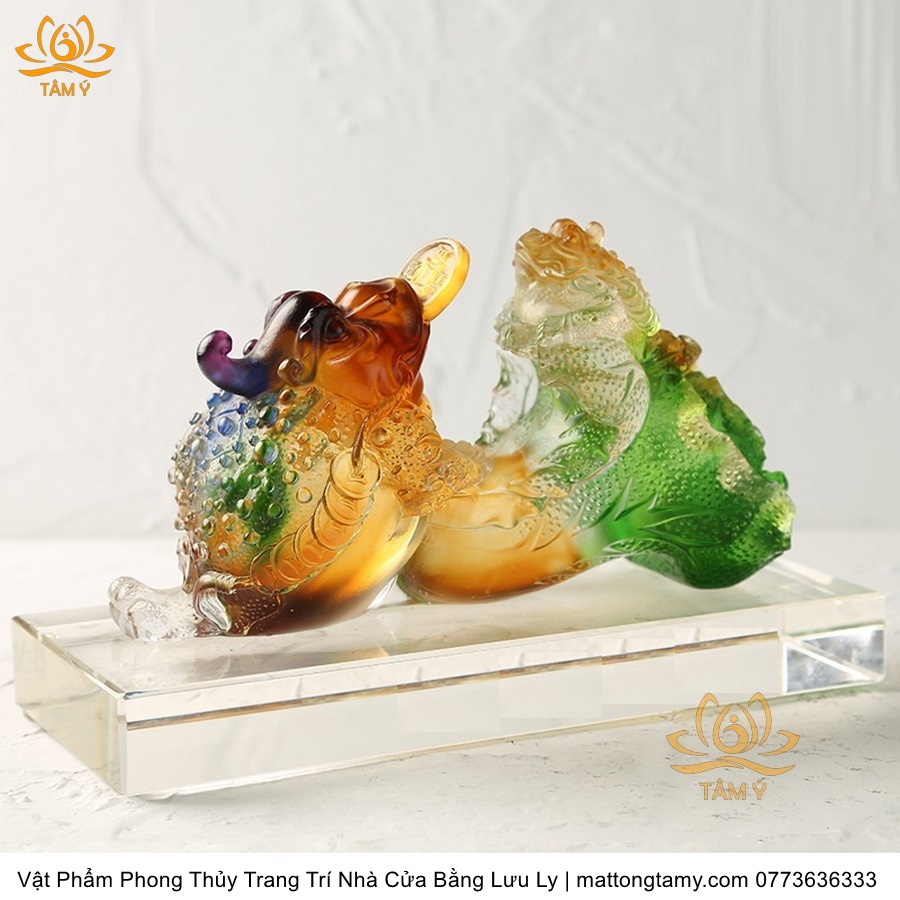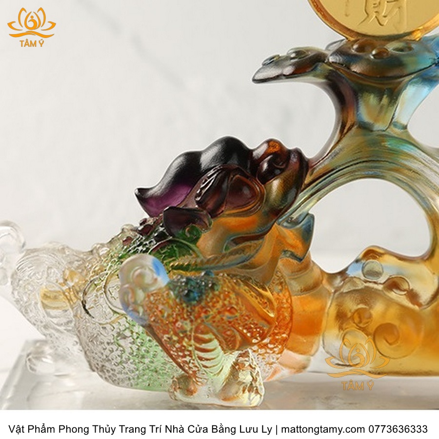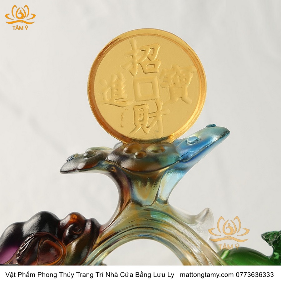 Tượng Thiềm Thừ Ngậm Vàng Cách Điệu Ngũ Sắc Bằng Lưu Ly Cao Cấp Vật Phẩm Phong Thủy Trang Trí Nhà Cửa DTT181