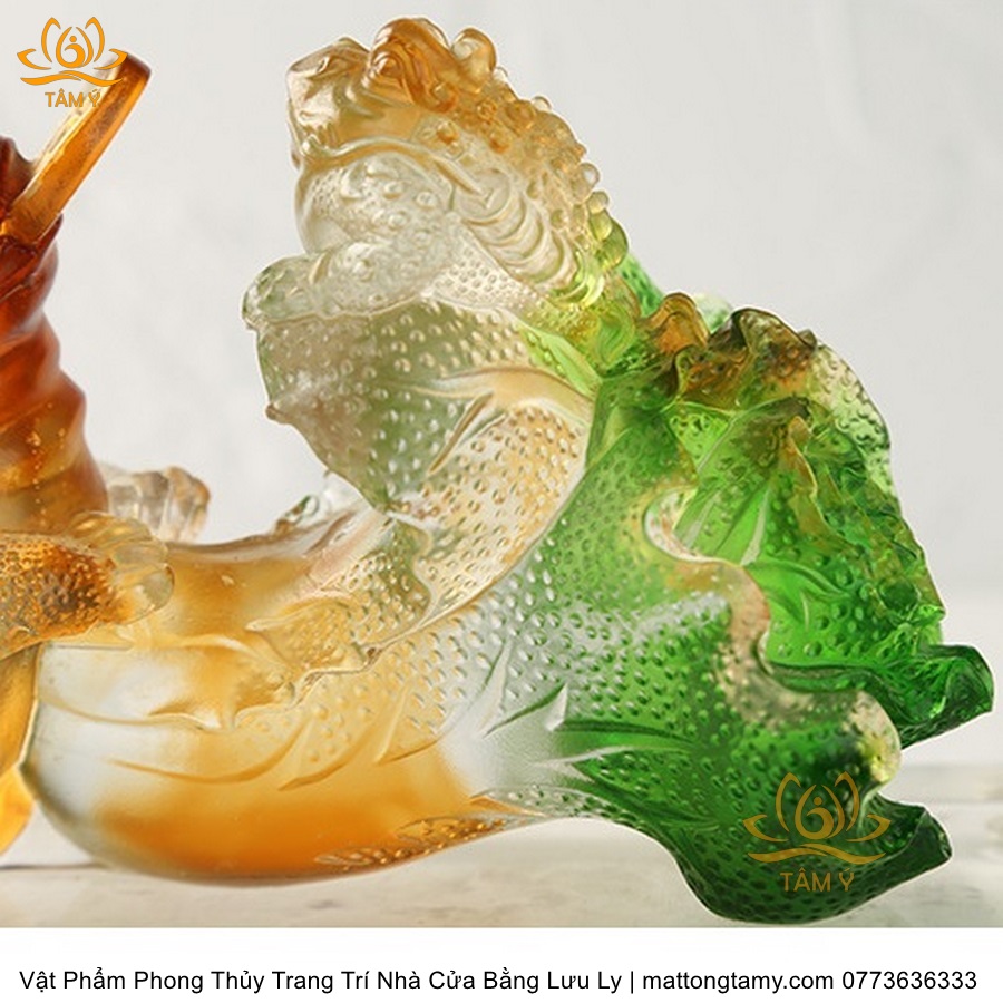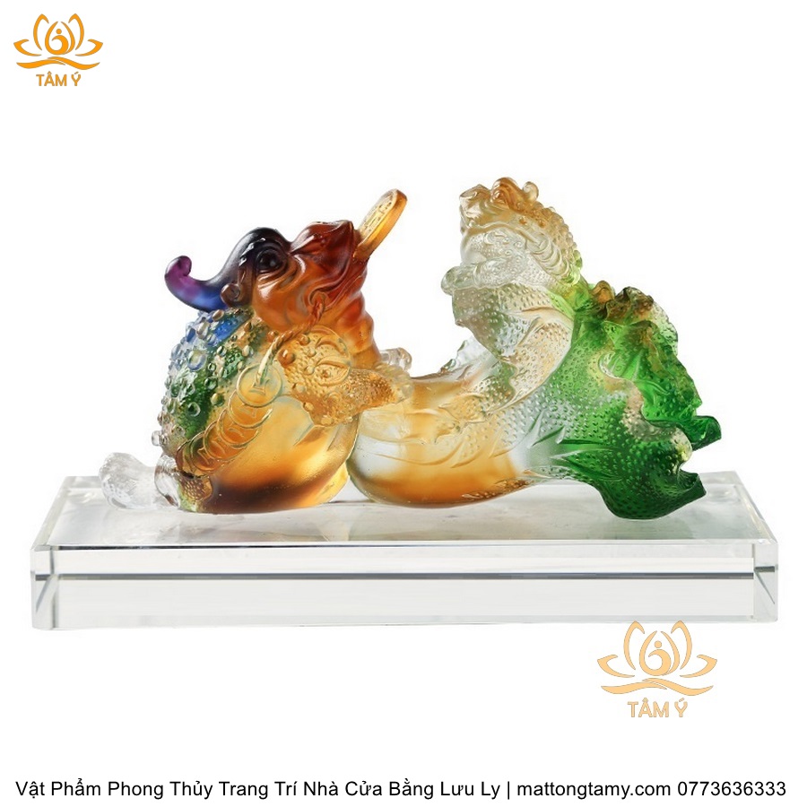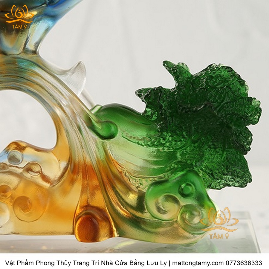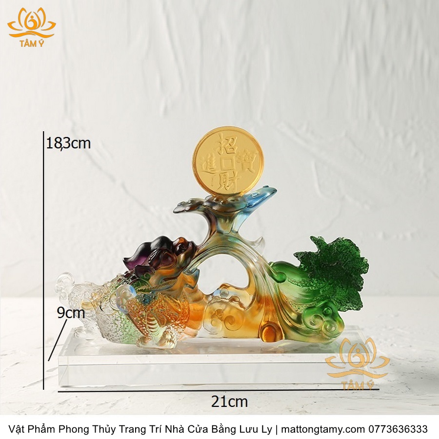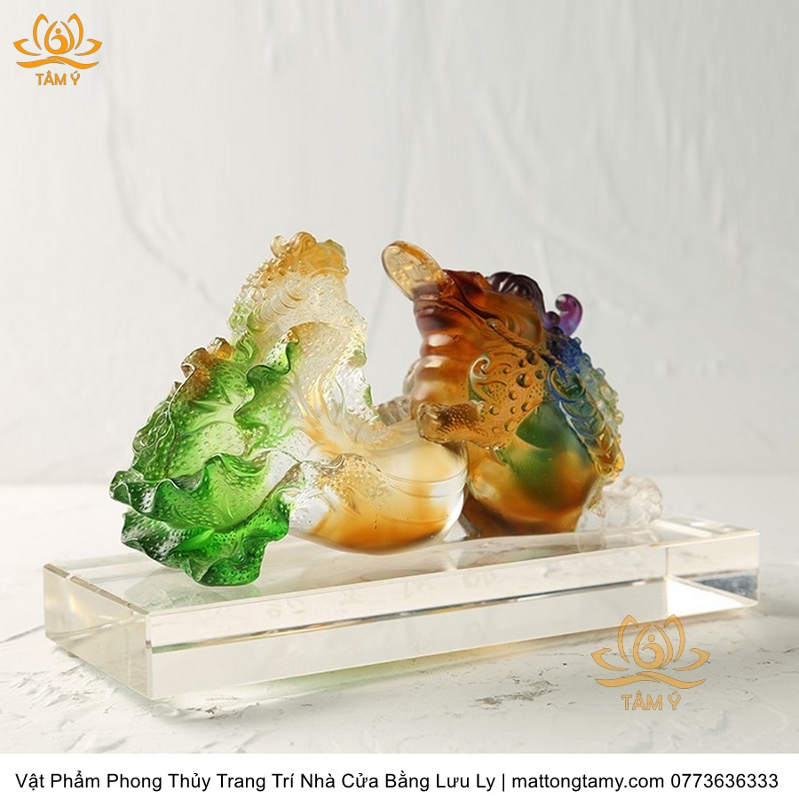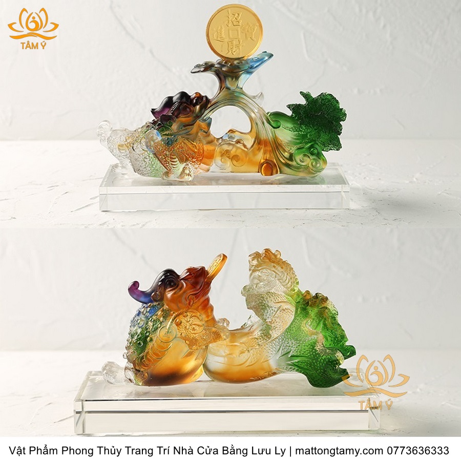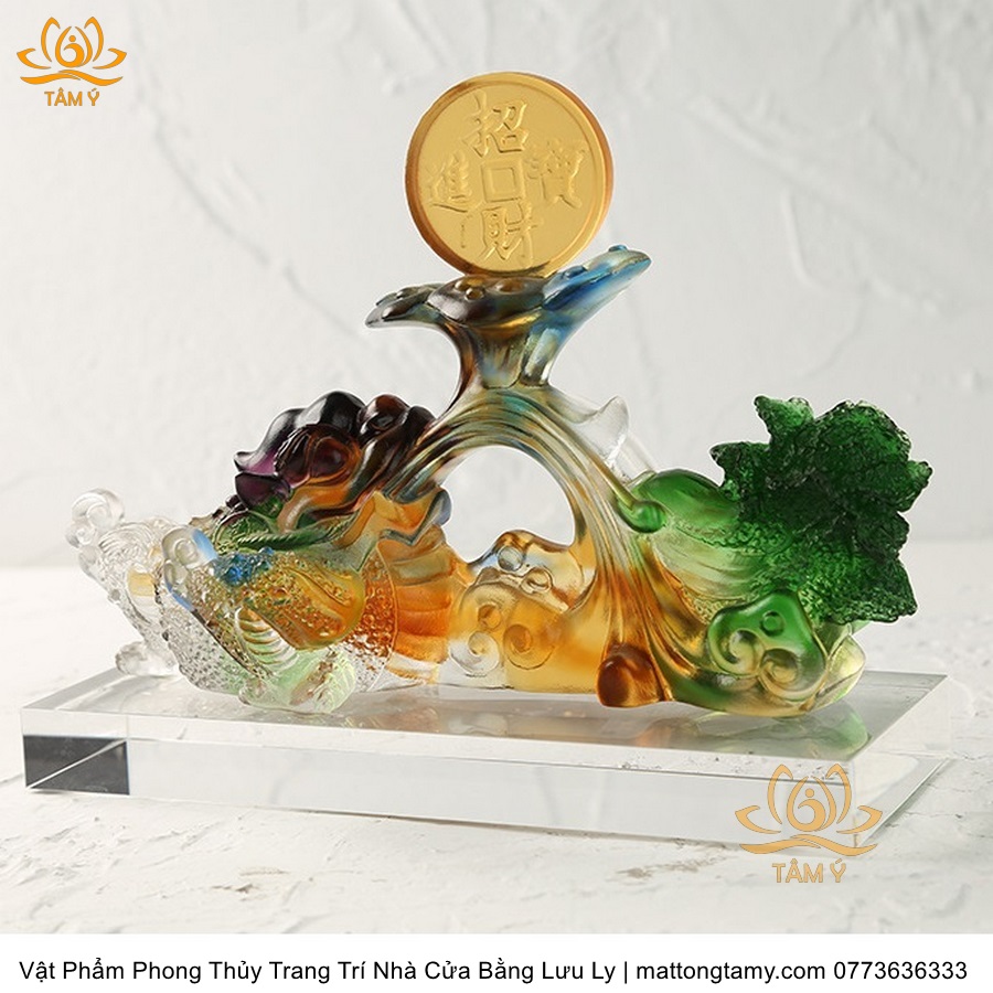 Tượng Thiềm Thừ Ngậm Vàng Cách Điệu Ngũ Sắc Bằng Lưu Ly Cao Cấp Vật Phẩm Phong Thủy Trang Trí Nhà Cửa DTT181