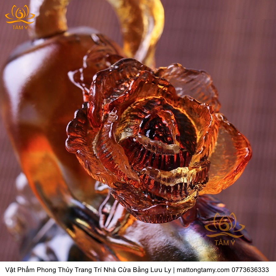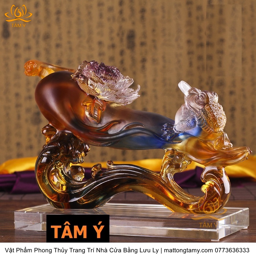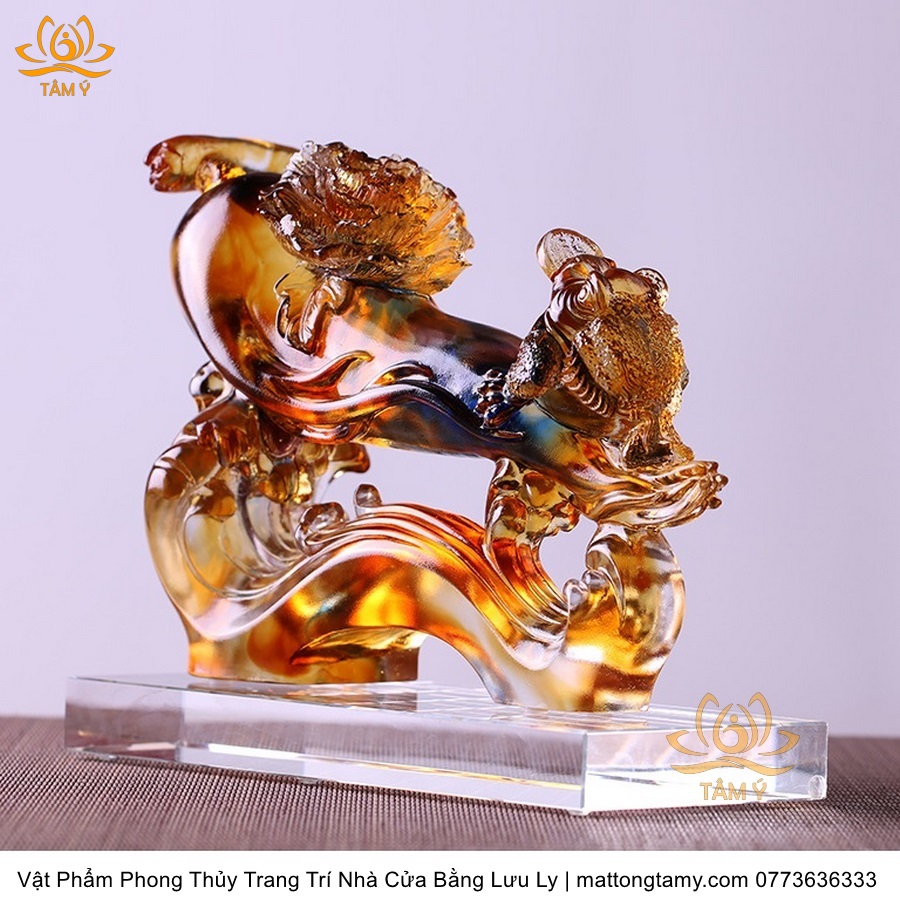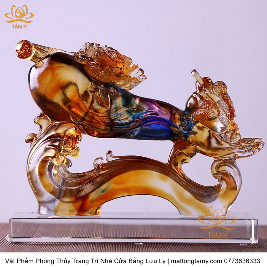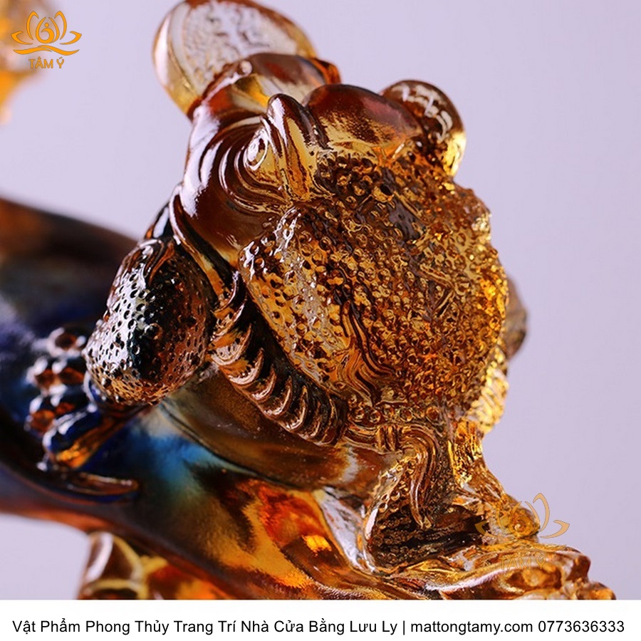 Tượng Thiềm Thừ Ngậm Vàng Đứng Trước Đóa Hồng Ngũ Sắc Bằng Lưu Ly Cao Cấp Vật Phẩm Phong Thủy Trang Trí Nhà Cửa DTT175