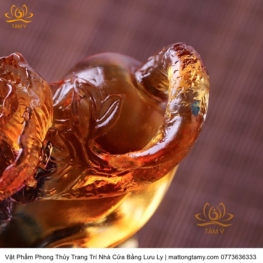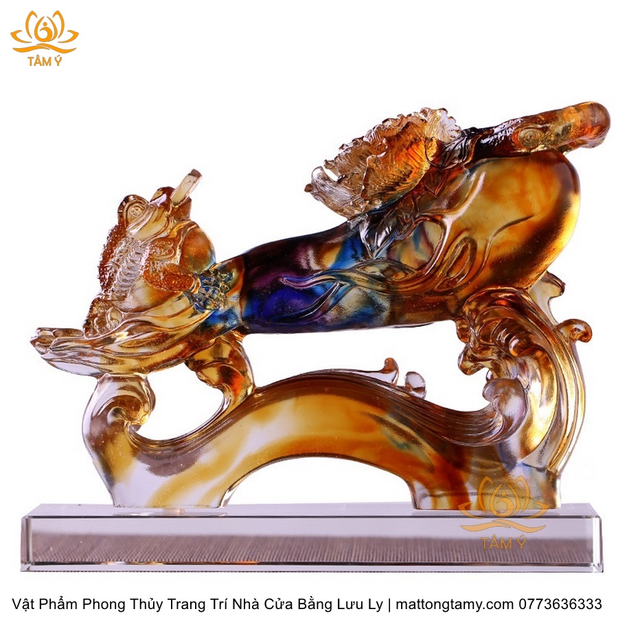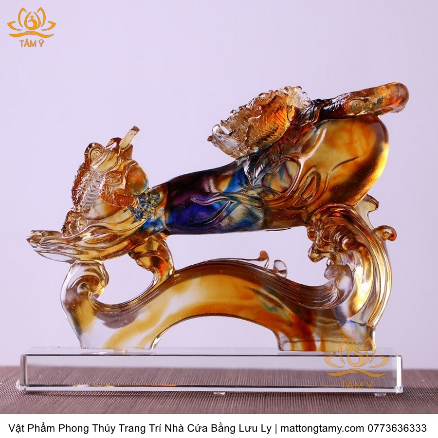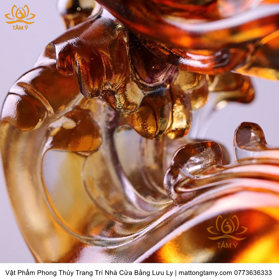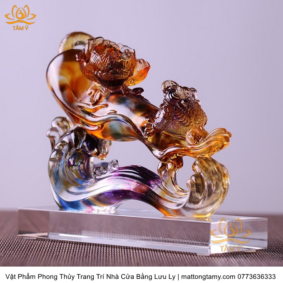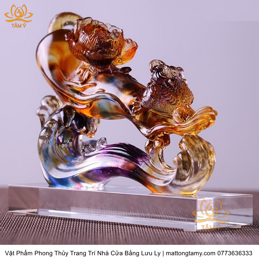 Tượng Thiềm Thừ Ngậm Vàng Đứng Trước Đóa Hồng Ngũ Sắc Bằng Lưu Ly Cao Cấp Vật Phẩm Phong Thủy Trang Trí Nhà Cửa DTT175