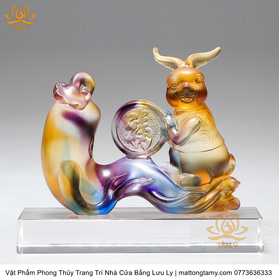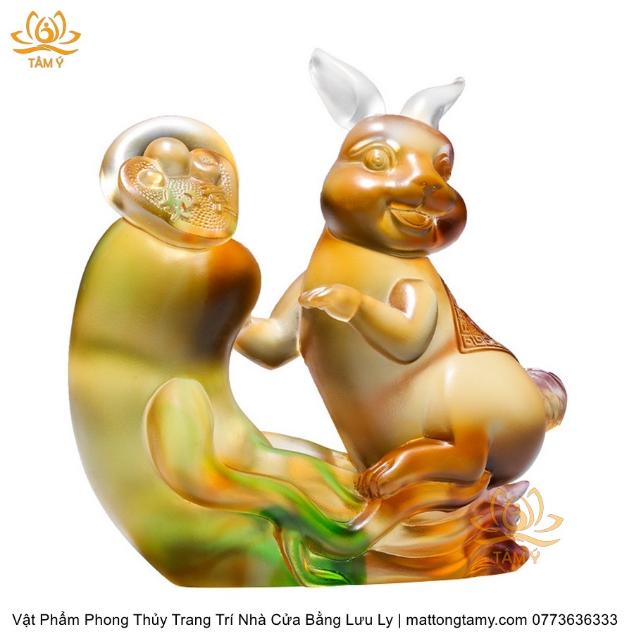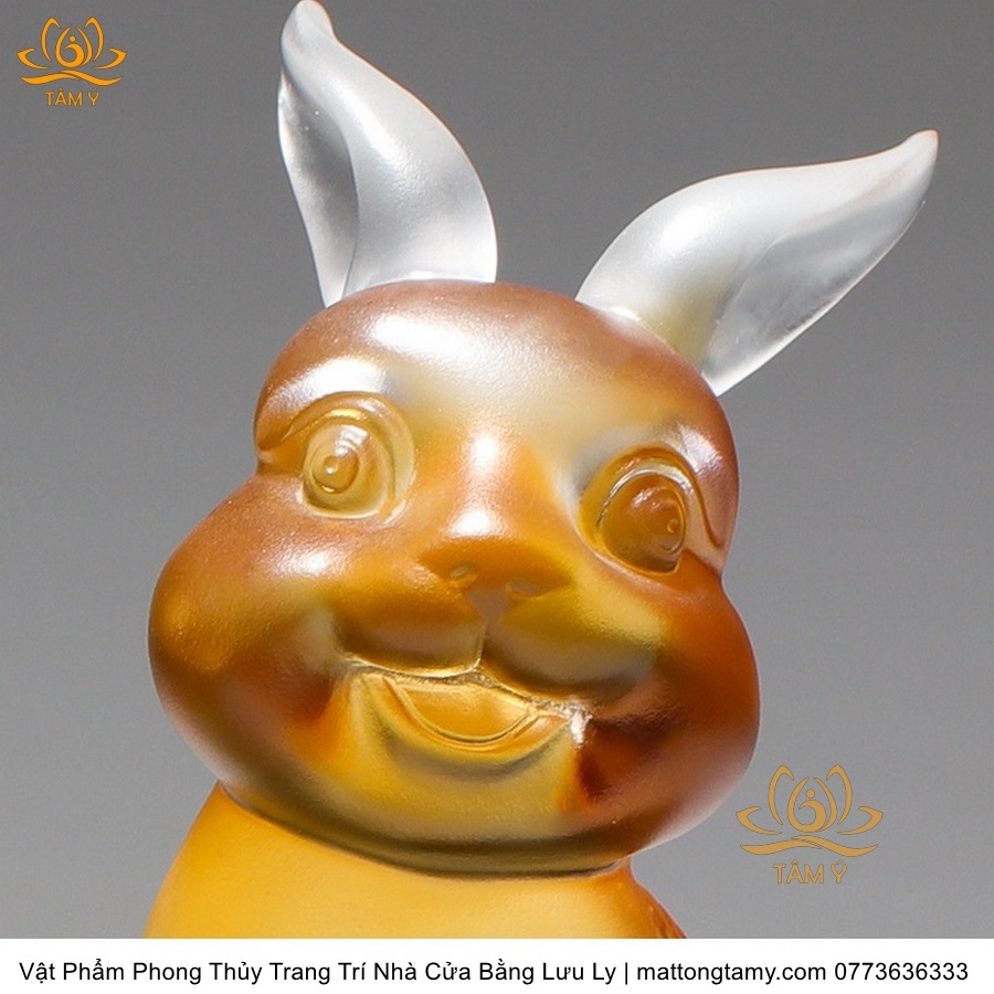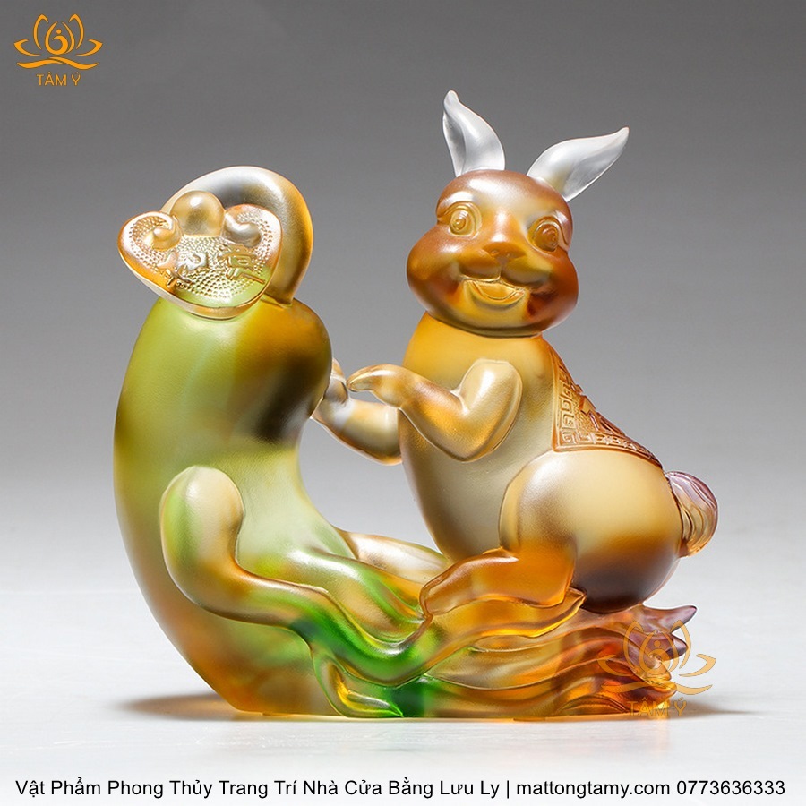 Tượng Thỏ Ôm Nhân Sâm Tài Lộc May Mắn Trang Trí Nhà Cửa Vật Phẩm Phong Thủy Bằng Lưu Ly Cao Cấp DTT192