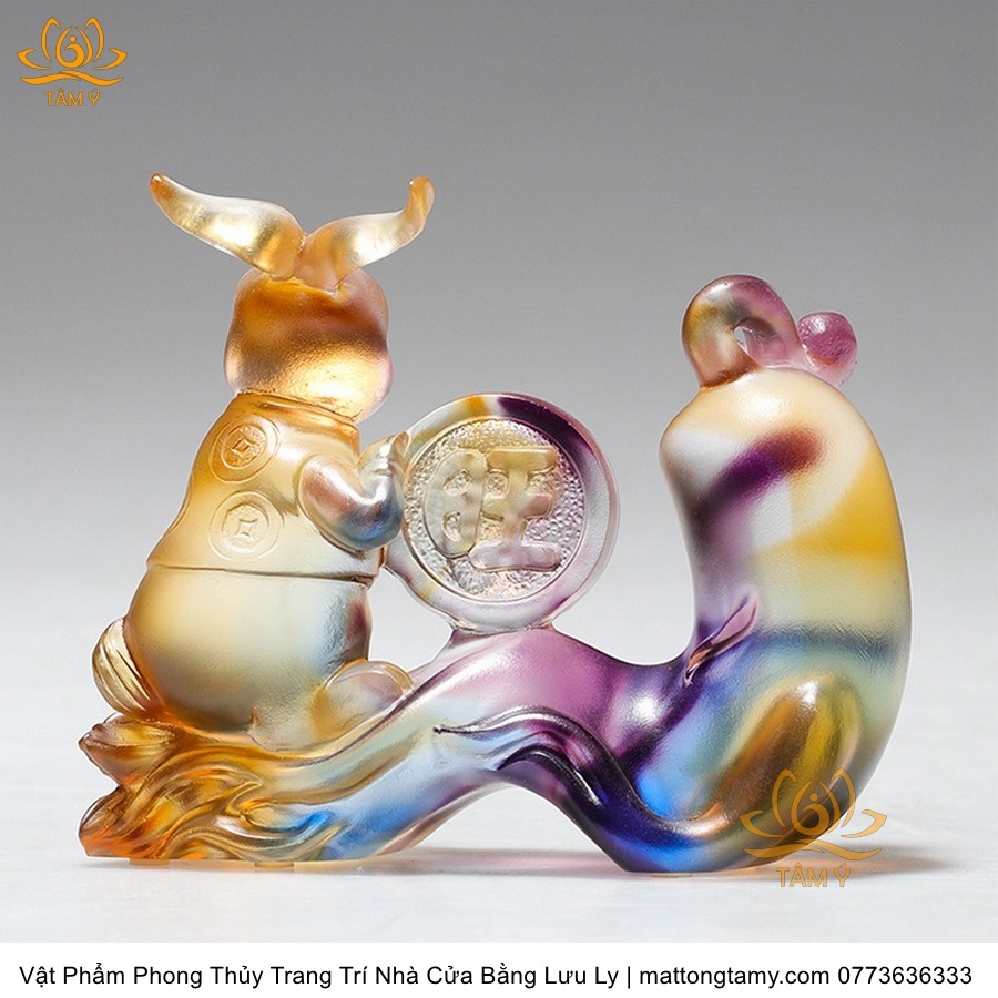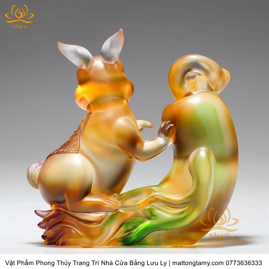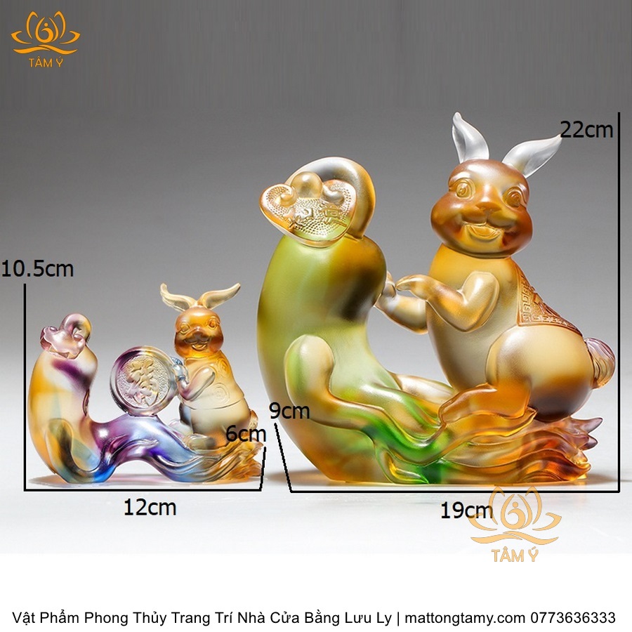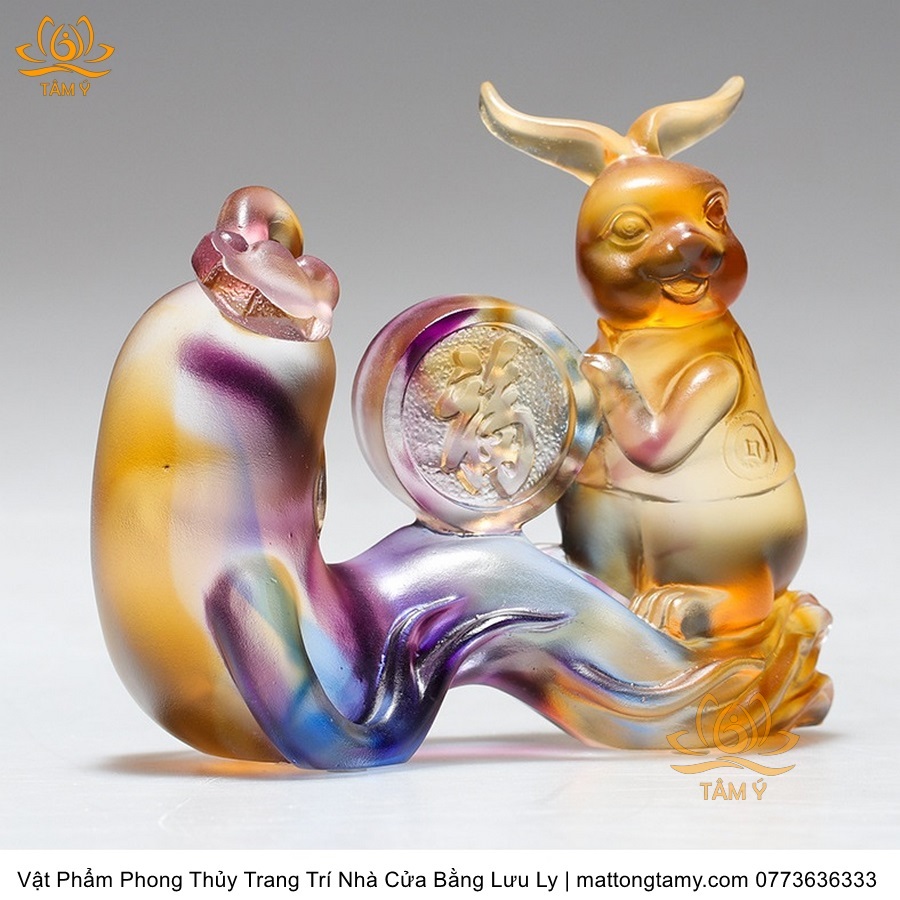 Tượng Thỏ Ôm Nhân Sâm Tài Lộc May Mắn Trang Trí Nhà Cửa Vật Phẩm Phong Thủy Bằng Lưu Ly Cao Cấp DTT192
