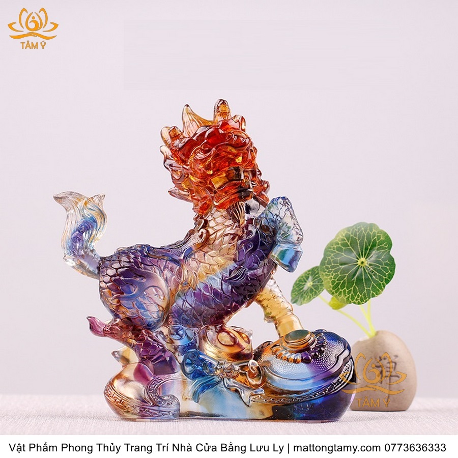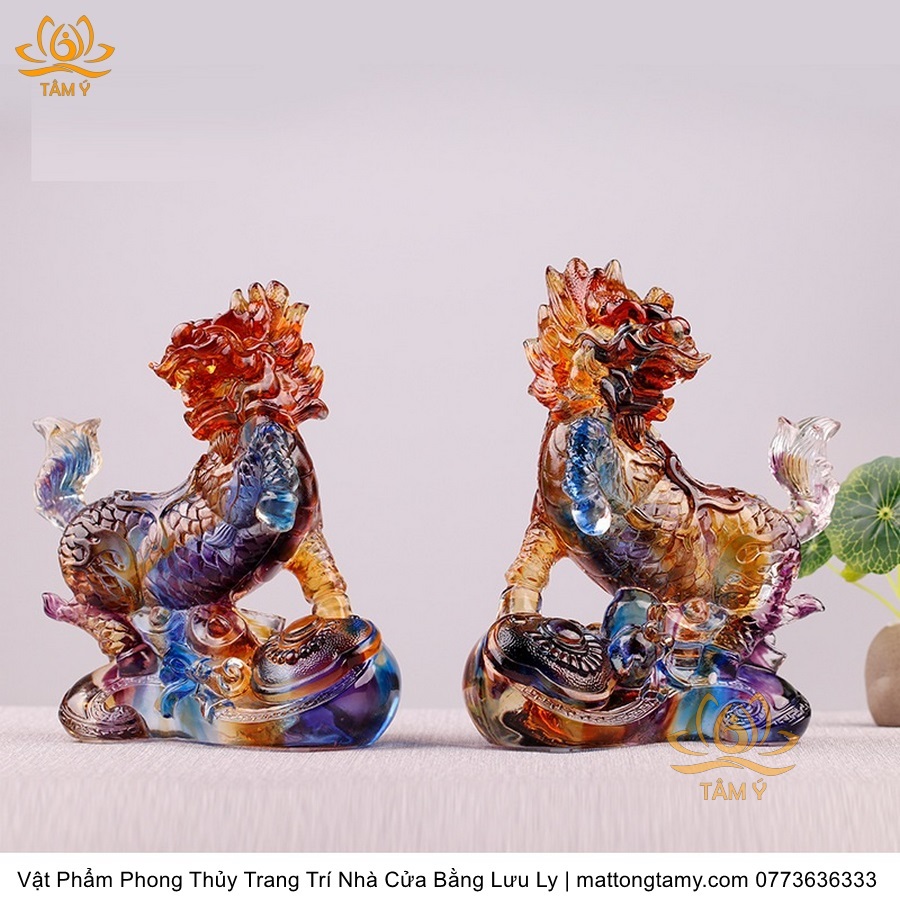 Tượng Trang Trí Nhà Cửa Hình Kỳ Lân Bằng Lưu Ly Cao Cấp, 2 Kiểu - 2 Màu DTT66
