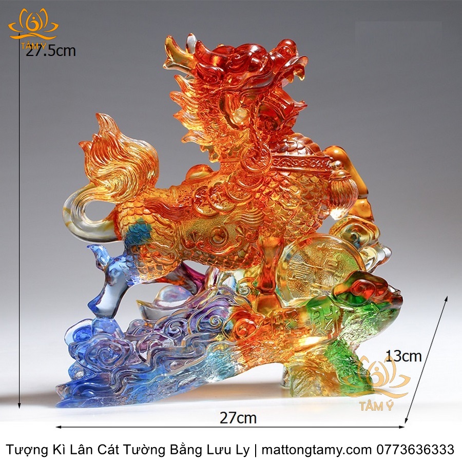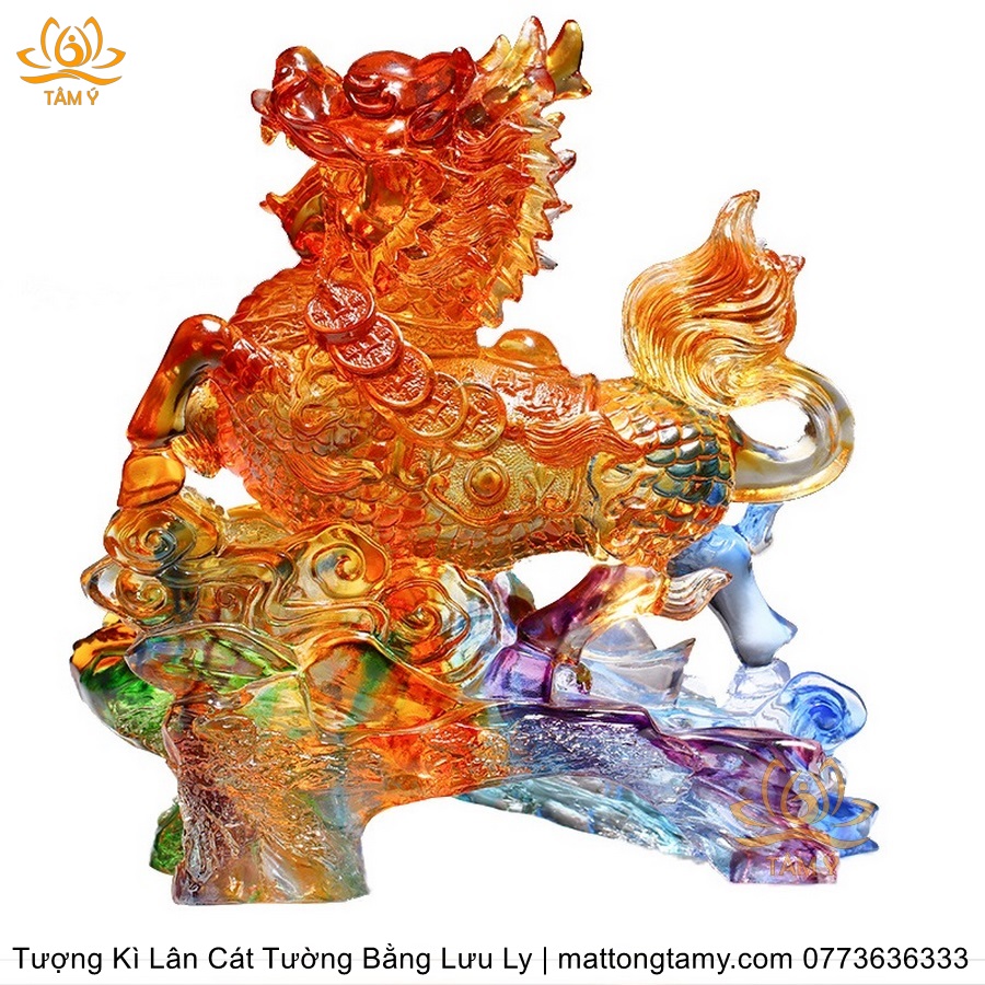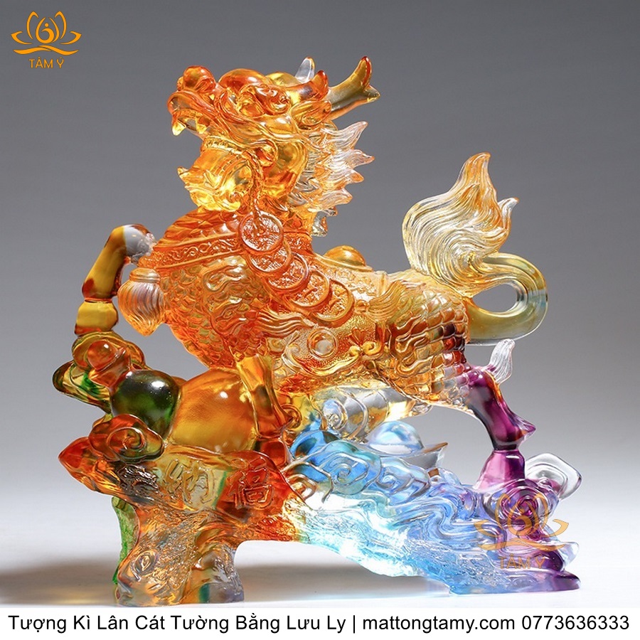 Tượng Trang Trí Nhà Cửa Hình Kỳ Lân Bằng Lưu Ly Cao Cấp
