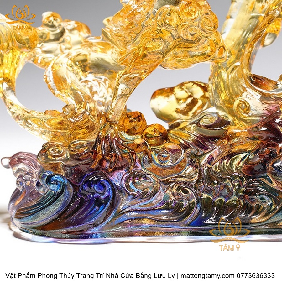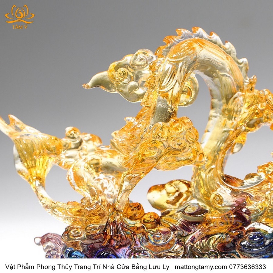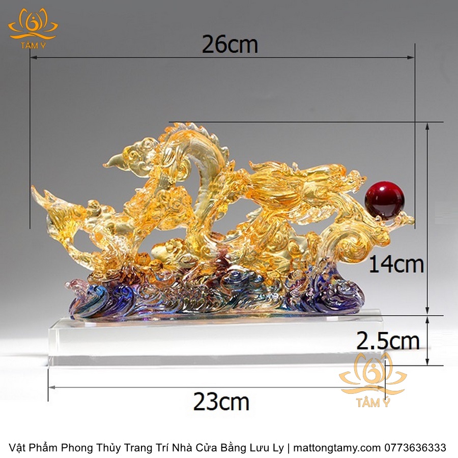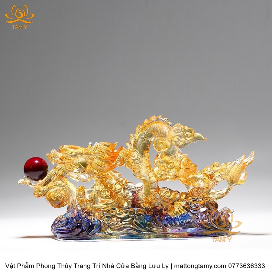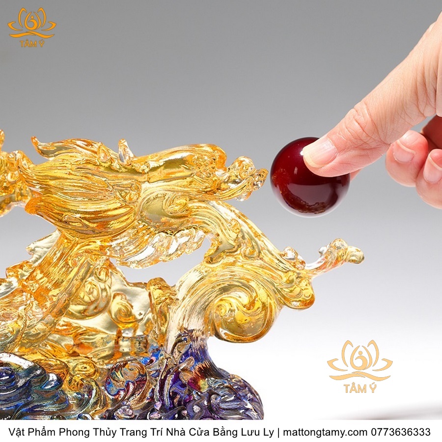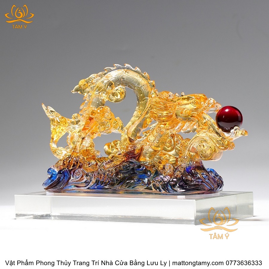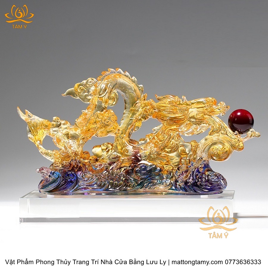 Tượng Trang Trí Nhà Cửa Hình Rồng Phương Đông Nhả Ngọc Bằng Lưu Ly Cao Cấp DTT43
