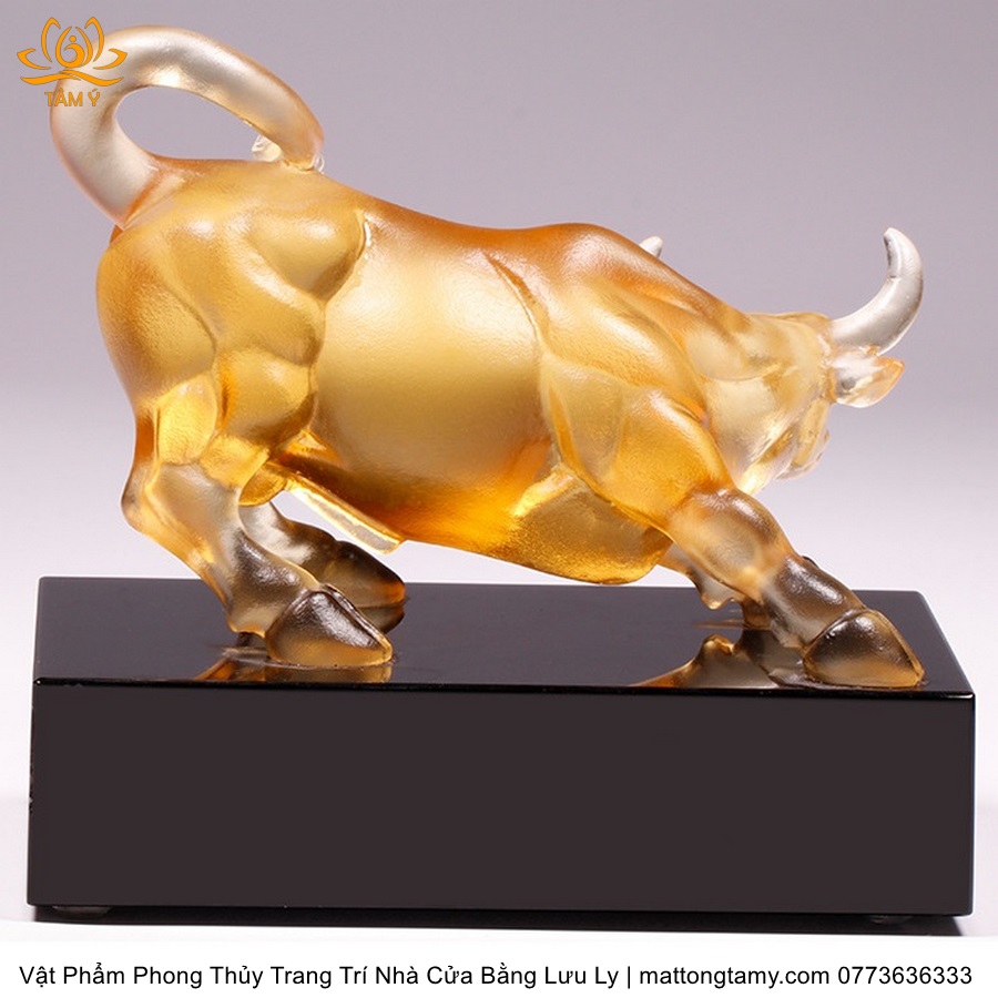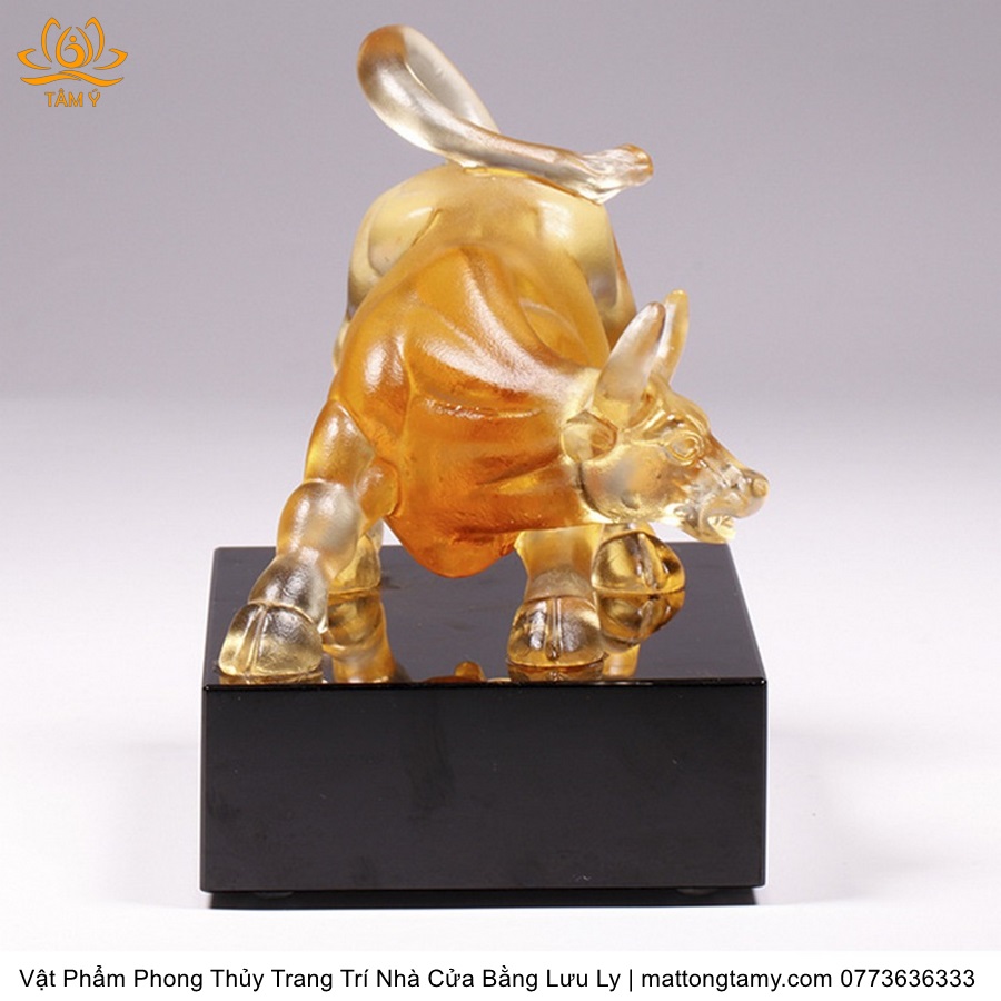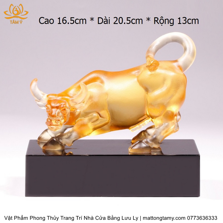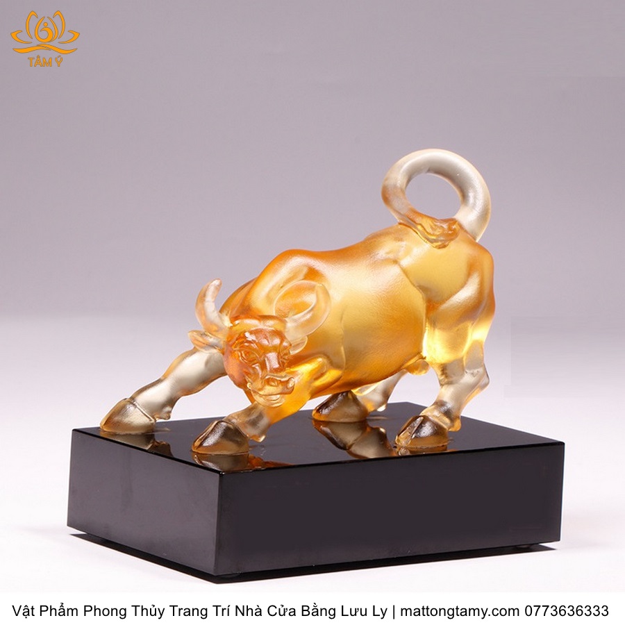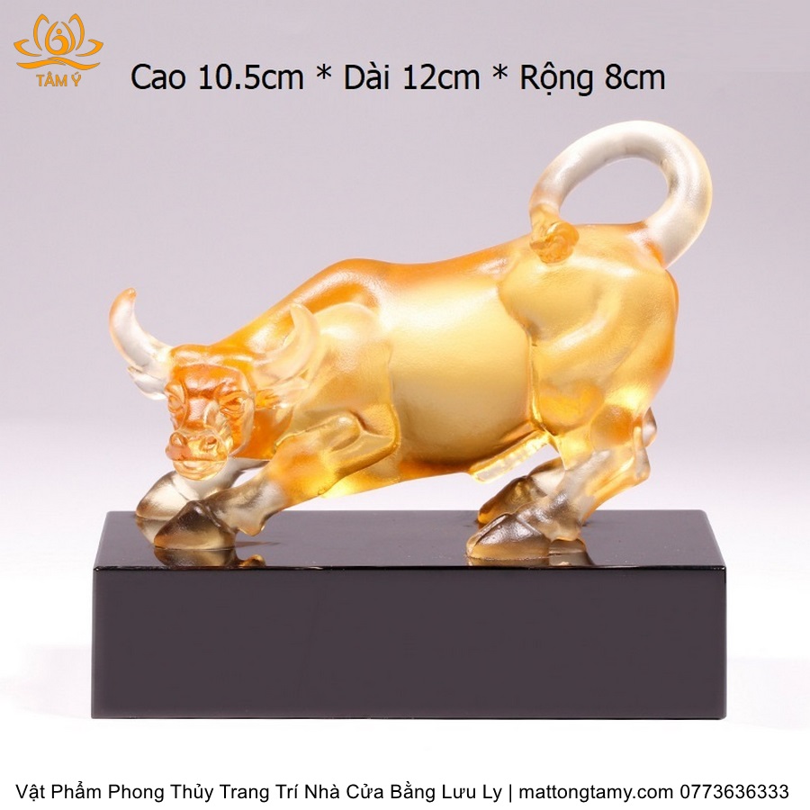Tượng Trâu(Sửu) To Khỏe Khắc Trên Mình Tiền Vàng Bằng Lưu Ly Cao Cấp Vật Phẩm Phong Thủy Trang Trí Nhà Cửa DTT232