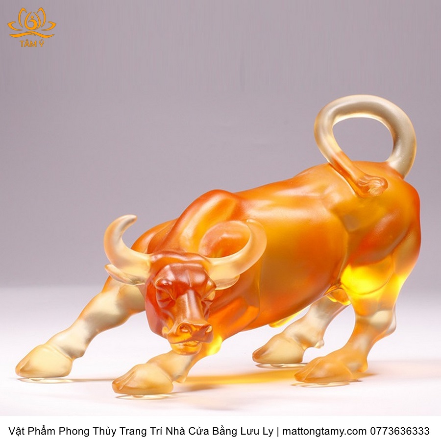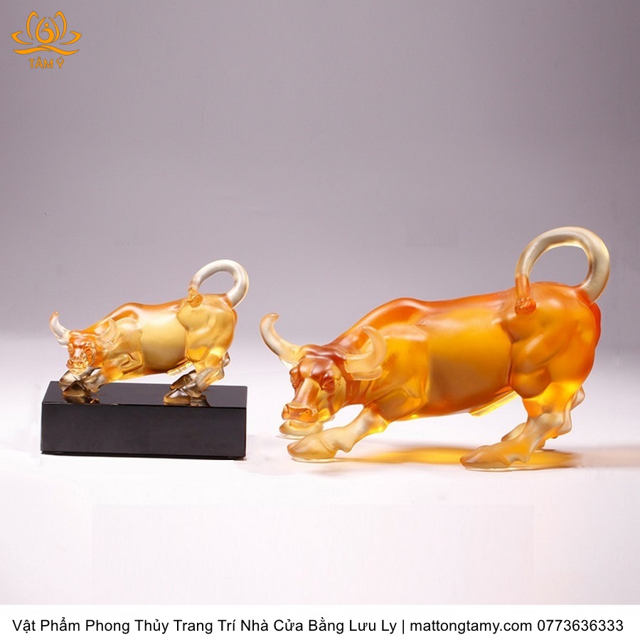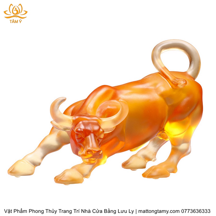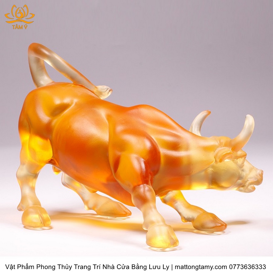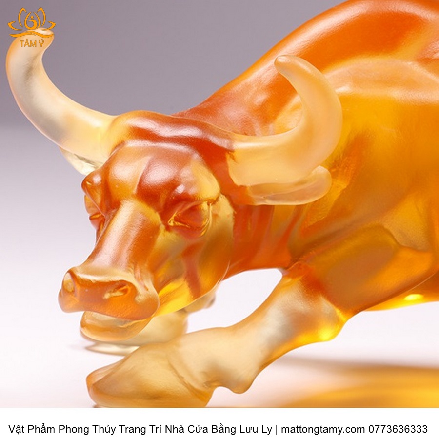 Tượng Trâu(Sửu) To Khỏe Khắc Trên Mình Tiền Vàng Bằng Lưu Ly Cao Cấp Vật Phẩm Phong Thủy Trang Trí Nhà Cửa DTT232
