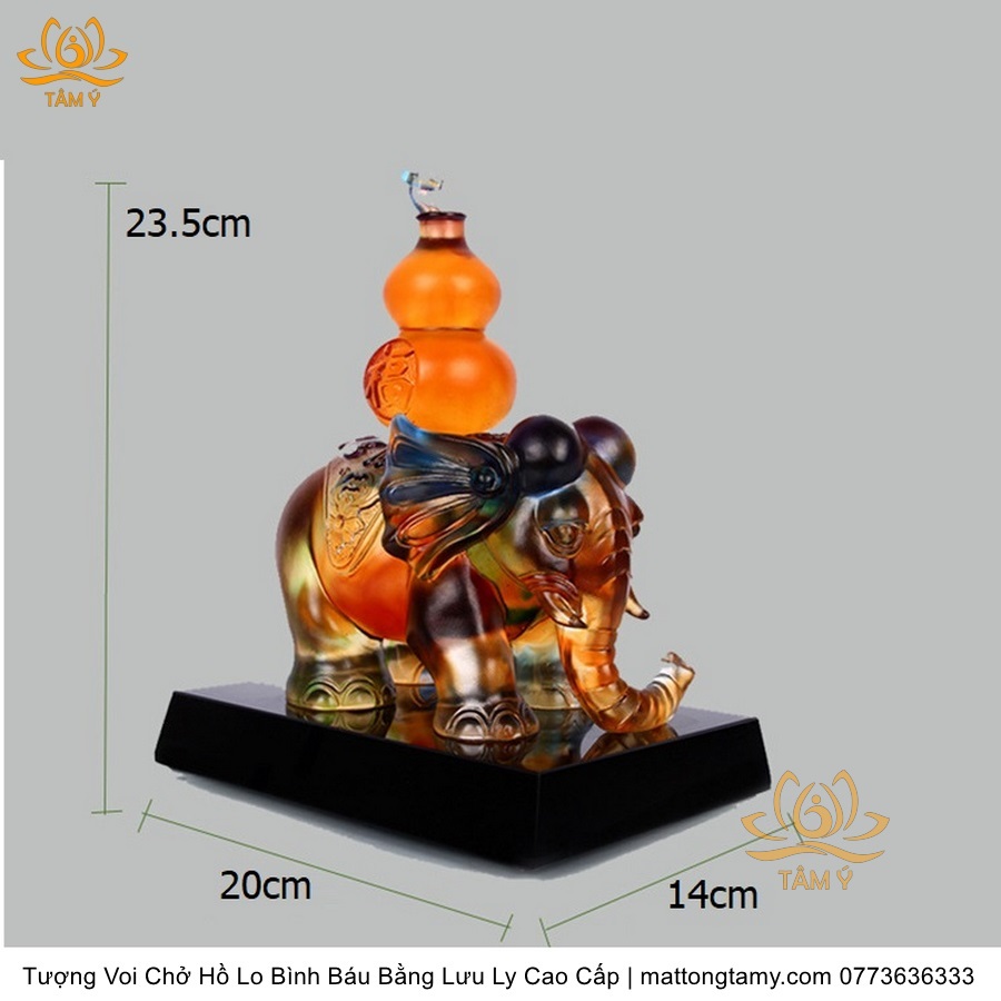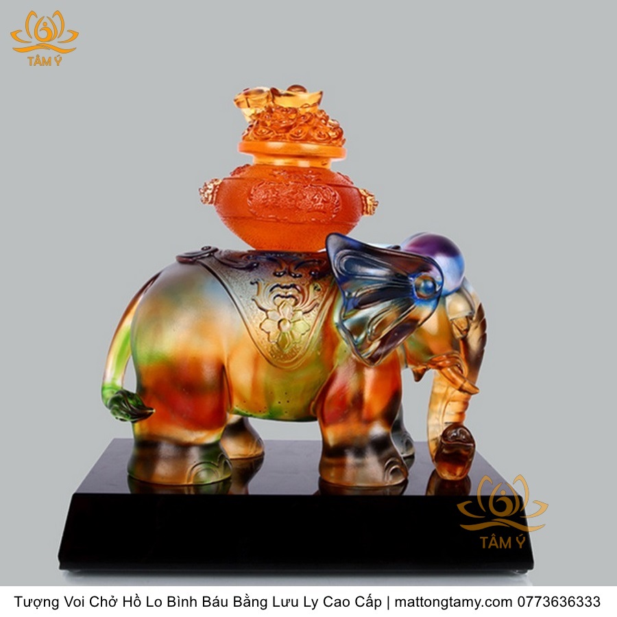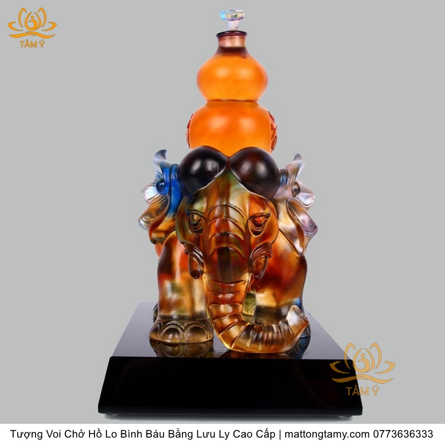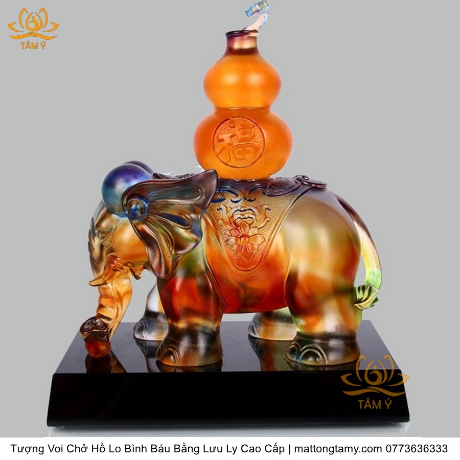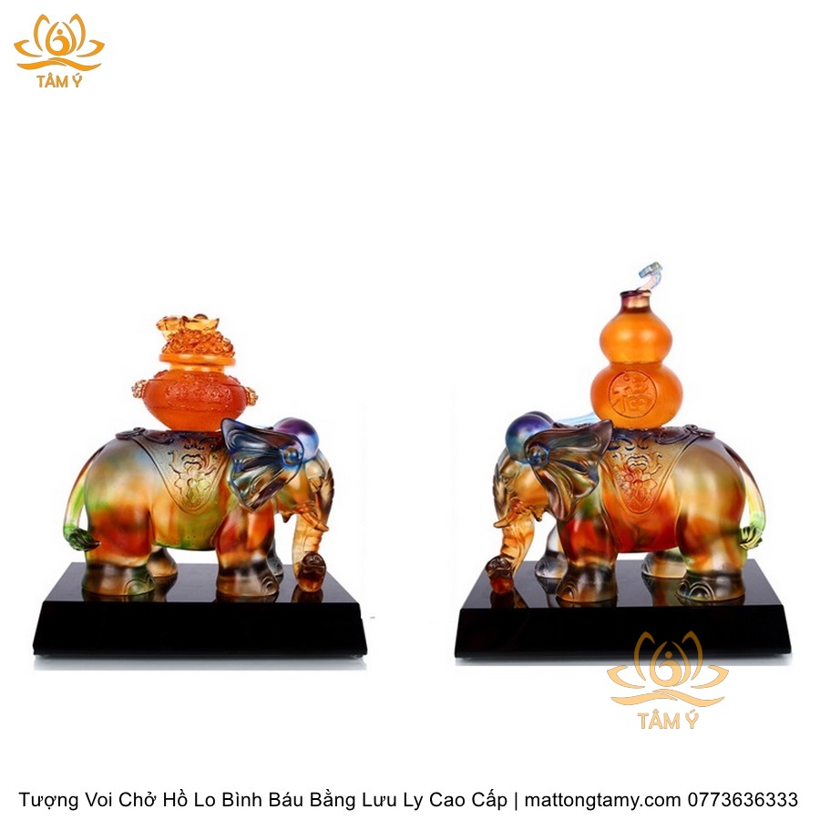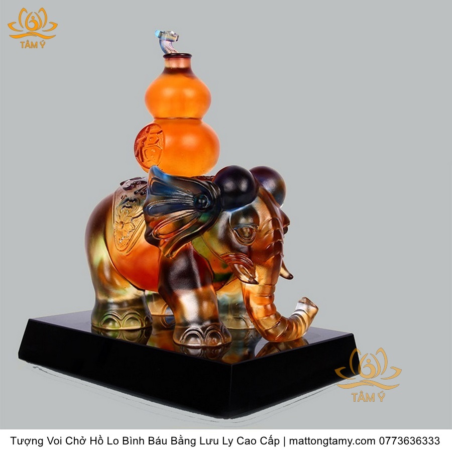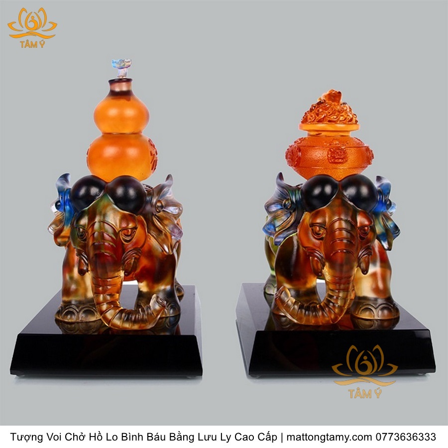Tượng Voi Chở Hồ Lô và Bình Báu Cát Tường Vật Phẩm Phong Thủy Trang Trí Nhà Cửa Bằng Lưu Ly Cao Cấp DTT20