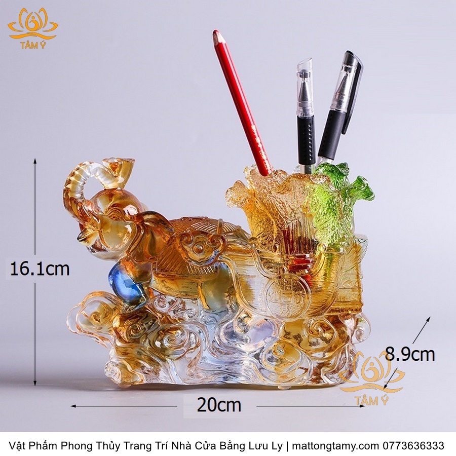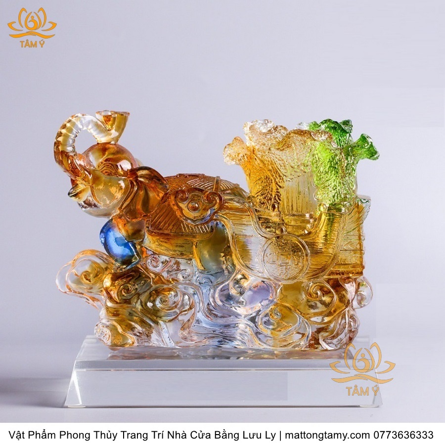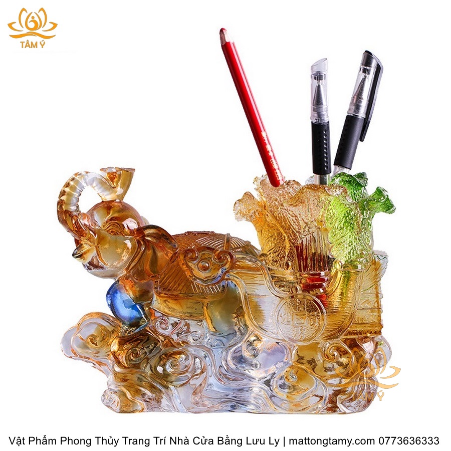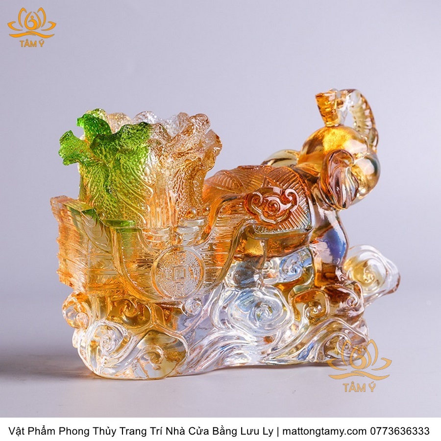 Voi Kéo Xe Dạng Hộp Đựng Bút Trang Trí Nhà Cửa Vật Phẩm Phong Thủy Bằng Lưu Ly Cao Cấp DTT60